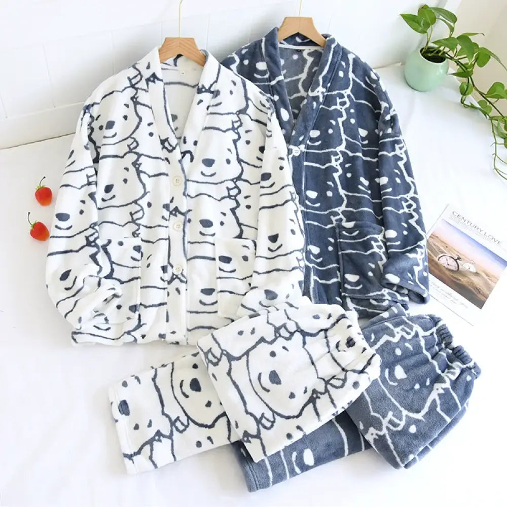 暖かい!秋冬 もこもこ 冬 冬用 長袖 上下 セット 寝巻き 大きいサイズ クマ パジャマ セット メンズ 加フリース 厚手 外出可能 カップル 部屋着 メンズ ID2529