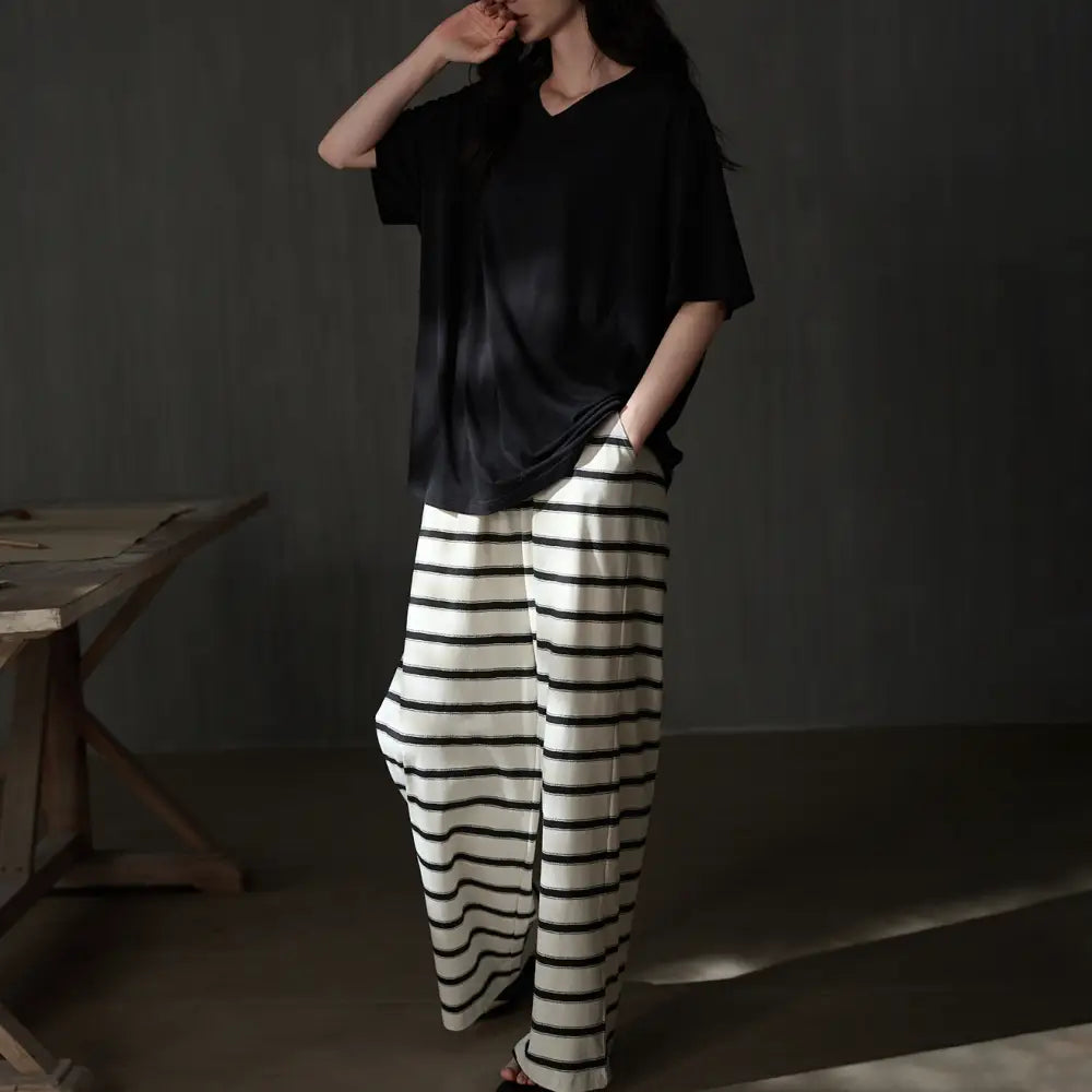 パジャマとホームウェア専門店へようこそ!日本のお客様に快適さとスタイリッシュさを兼ね備えたホームウェア体験をお届けすることを目指しています。ゆったりとした週末の朝、忙しい夜、どちらのシーンにもぴったりなパジャマシリーズは、洗練されたデザインで、最高の着心地を提供します。肌に優しく通気性のある素材を使用し、ファッション性のあるカットと温かみのある色合いを組み合わせることで、家でも優雅で快適な時間をお楽しみいただけます。
