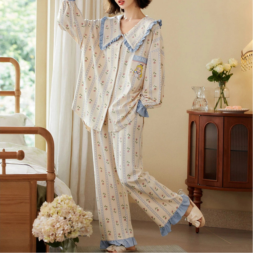 ルームウェア セット 女の子 春 韓国風 カートゥーン 快適 ピーターパンカラー パジャマ 2点セット 親子 レディース かわいい ID477