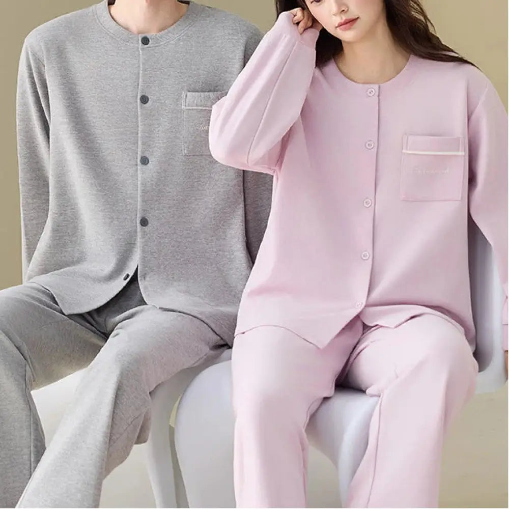 カップル パジャマ レディース コットン 長袖 長パンツ セット カジュアル メンズ レディース ルームウェア ID3808