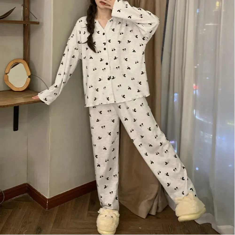 レディース 長袖 長パンツ おしゃれ 寝巻き カートゥーン セットアップ ルームウェア 上下セット パジャマ 部屋着 春秋 プレゼント ID4483