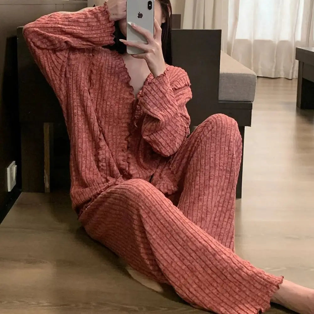 厚手 あったかフリース エレガント 小さな襟 ルームウェア パジャマ セット レディース ソフトで快適 軽暖 居家用 外出可能 パジャマ ID2625