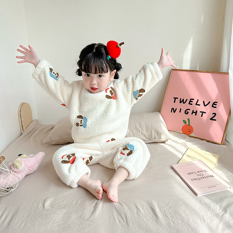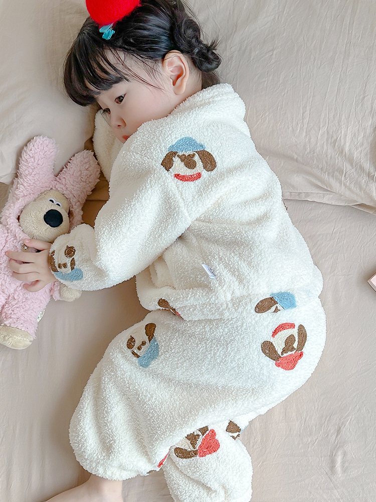 ふわふわ 子供 冬 バタフライ 犬 セットアップ 親子 ベビー フリース パジャマ セット 暖かい 柔らかい 保温 快適 おしゃれ ルームウェア 自宅用 リラックス ID2720