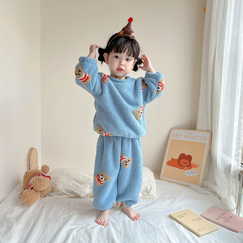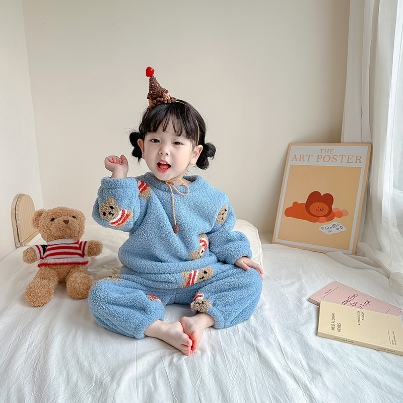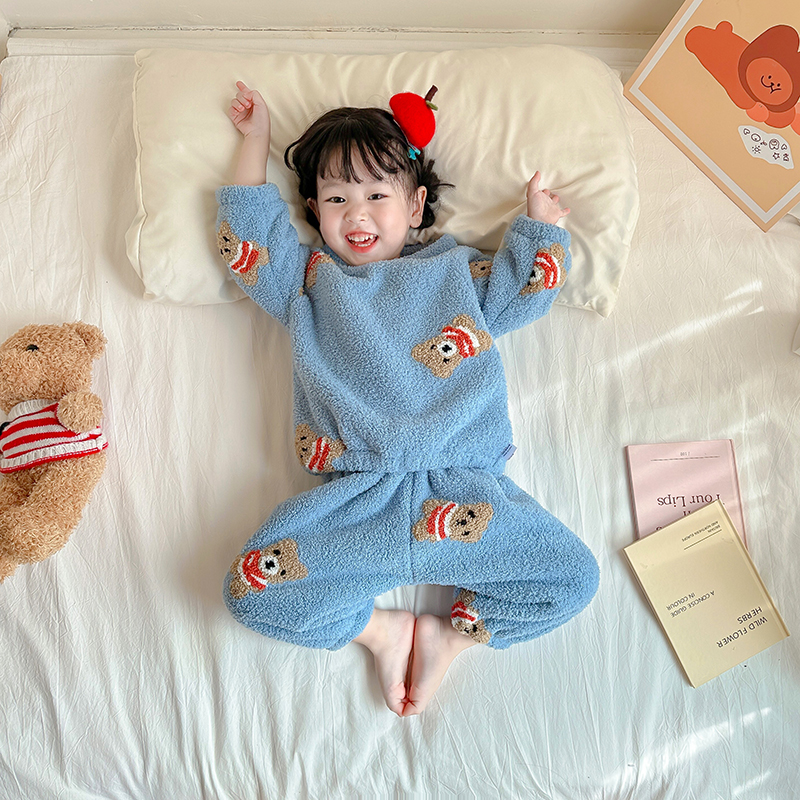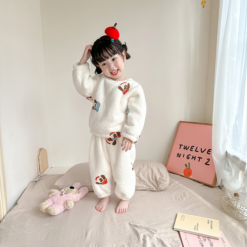 かわいい ふわふわ 親子 子供 クリスマス ハート くま レディース ホームウェア パジャマ セットアップ 卸売り 暖かい 柔らかい 快適 おしゃれ ルームウェア ID2719