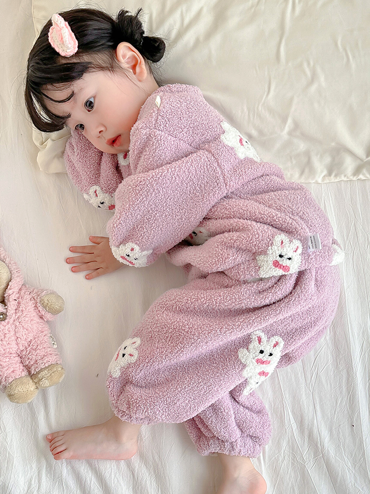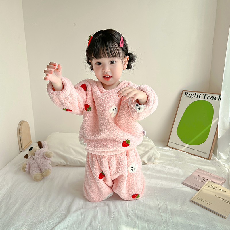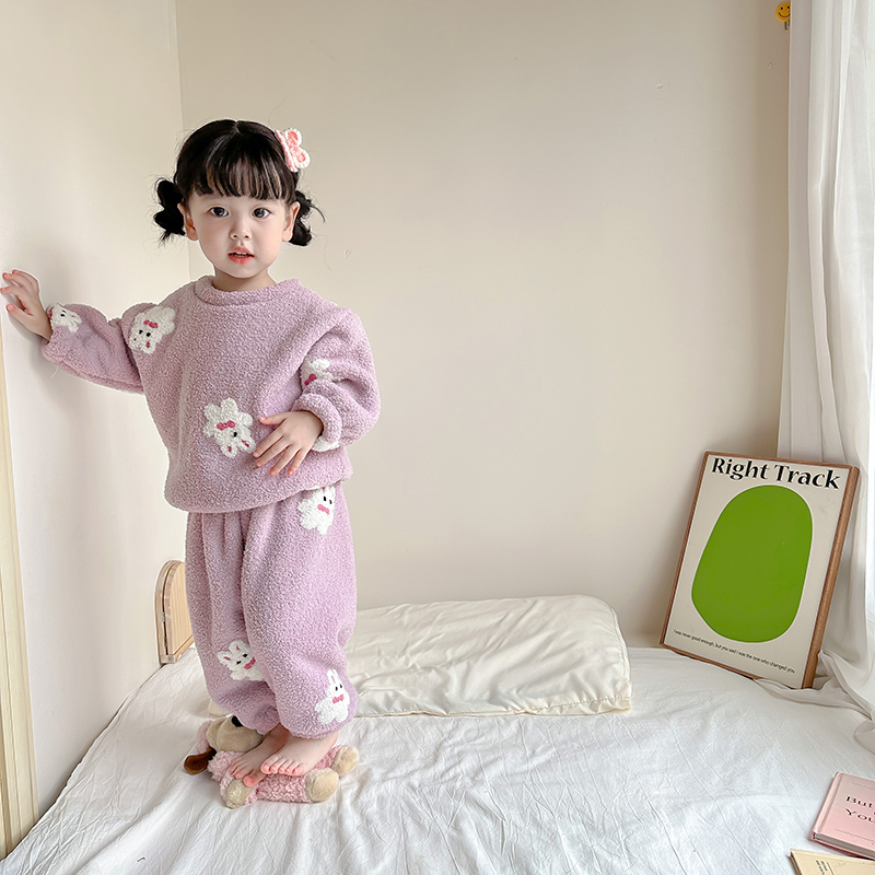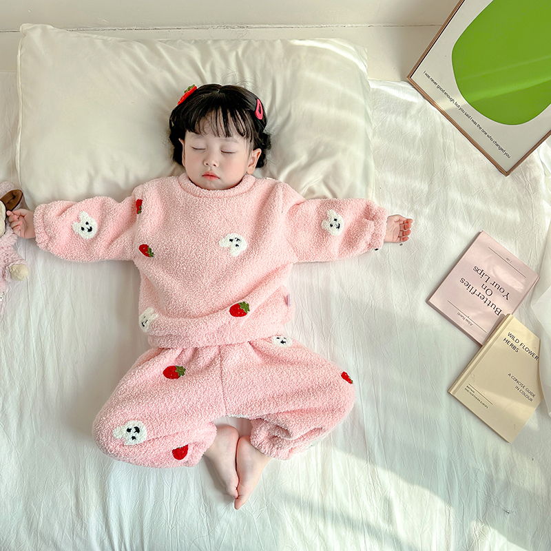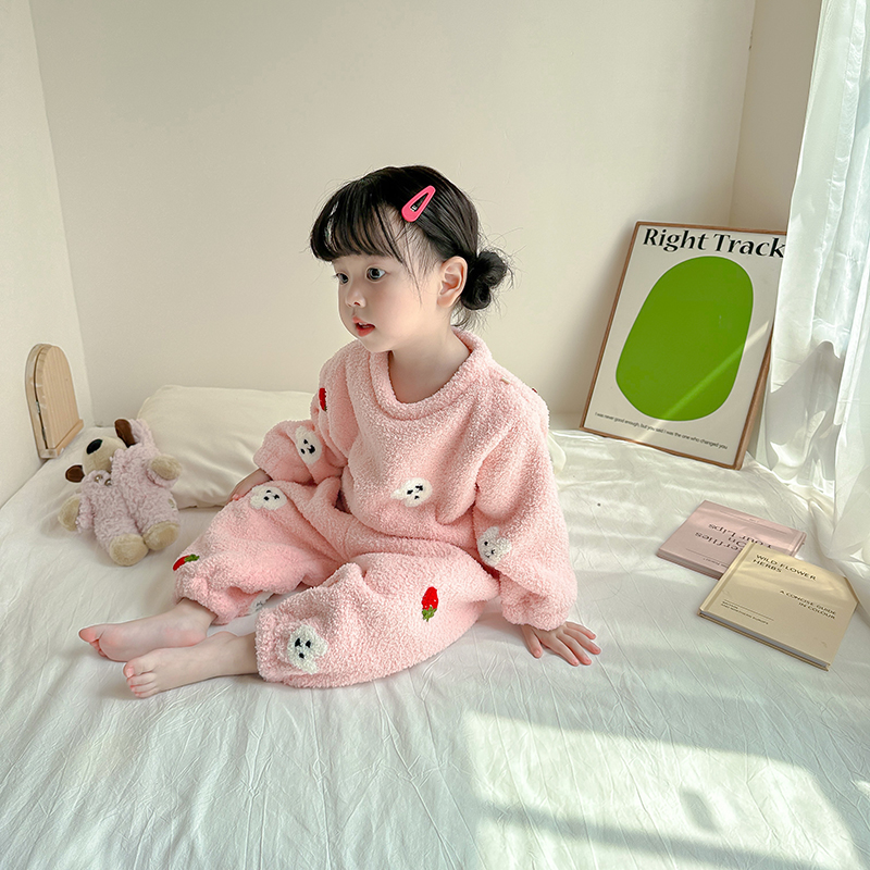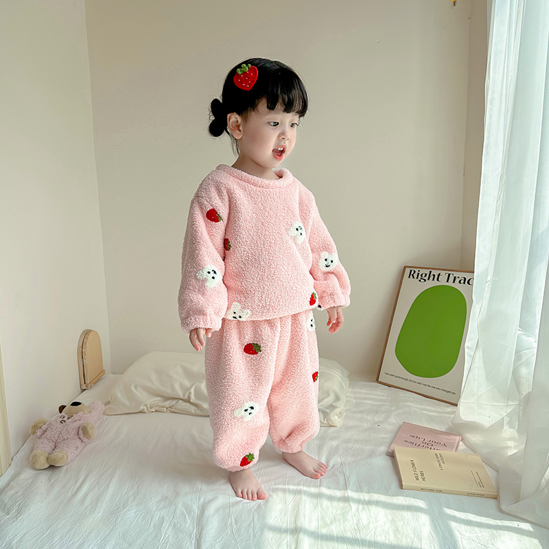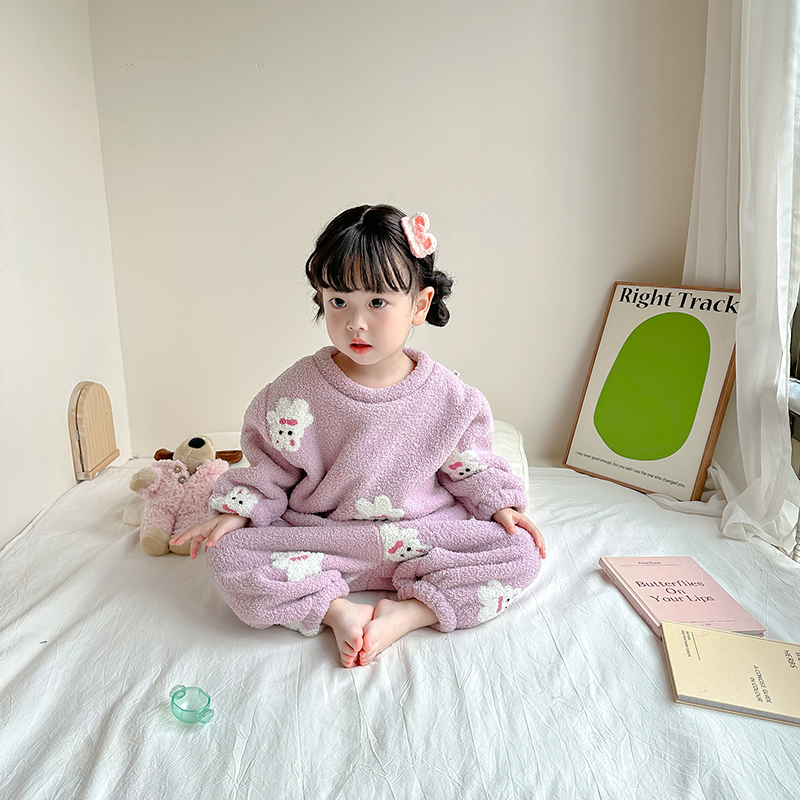 カップル パジャマ 秋冬 サンゴ フリース プルオーバー キャラクター かわいい ガールズ 加毛 厚手 冬用 フランネル ルームウェア ID2674