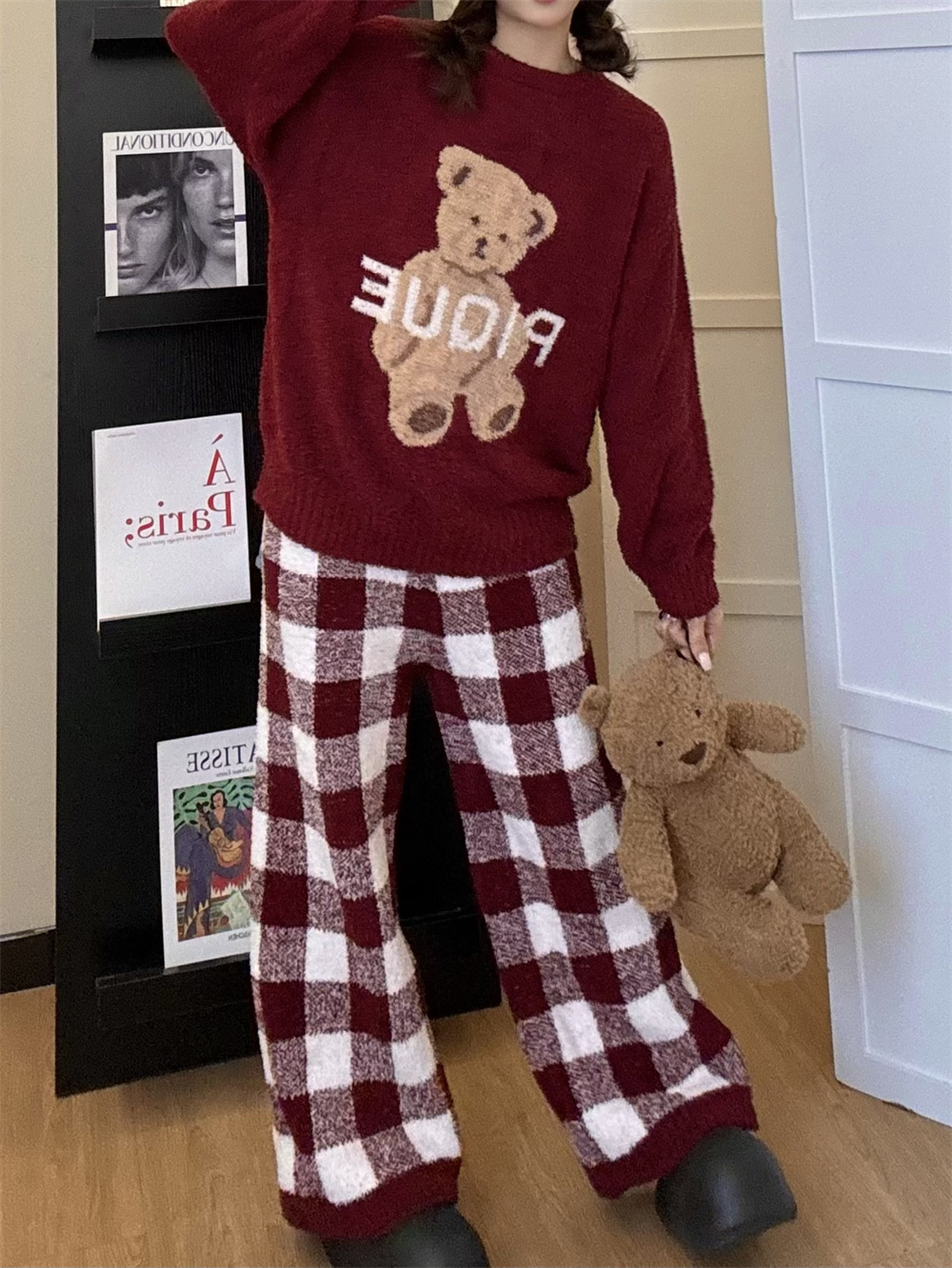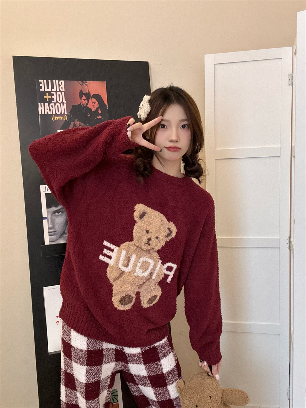 かわいい ふわふわ 親子 子供 クリスマス ハート くま レディース ホームウェア パジャマ セットアップ 卸売り 暖かい 柔らかい 快適 おしゃれ ルームウェア ID2719