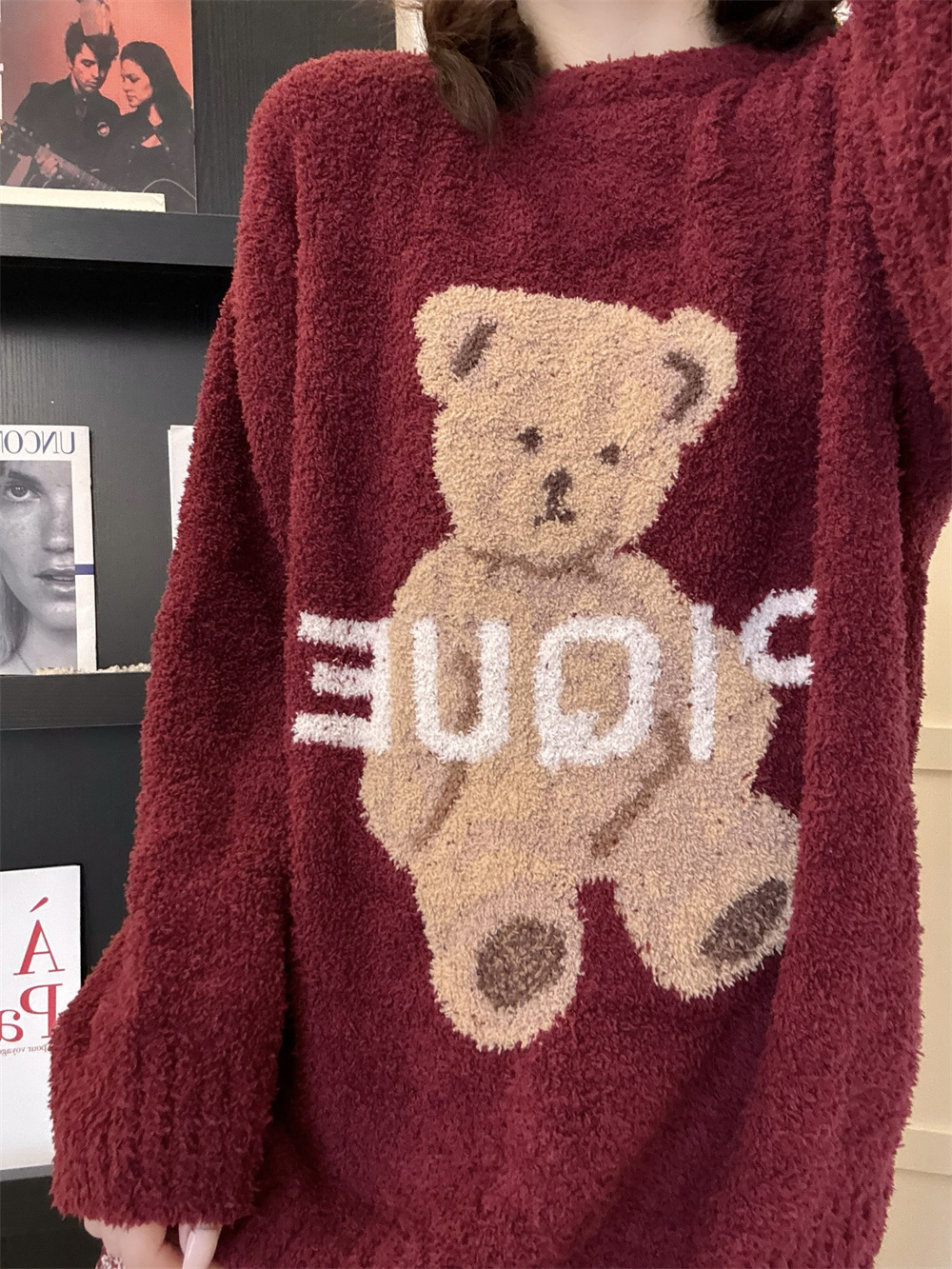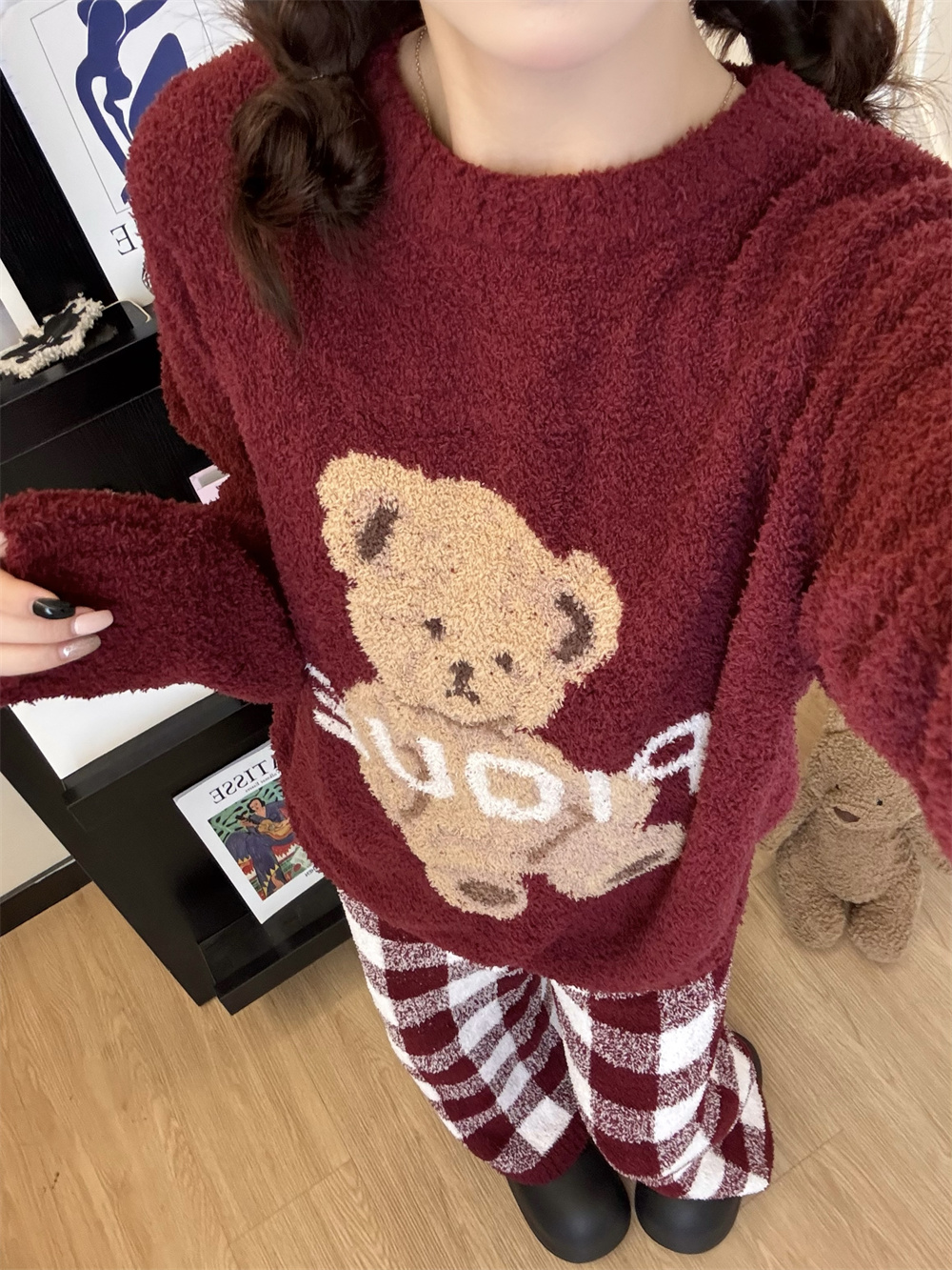 冬季暖かさを実感! くま柄 アルファベット パジャマ セットアップ レディース 秋 冬 暖かい 可愛い おしゃれ 新生活 ふわふわパジャマ プレゼント ID126