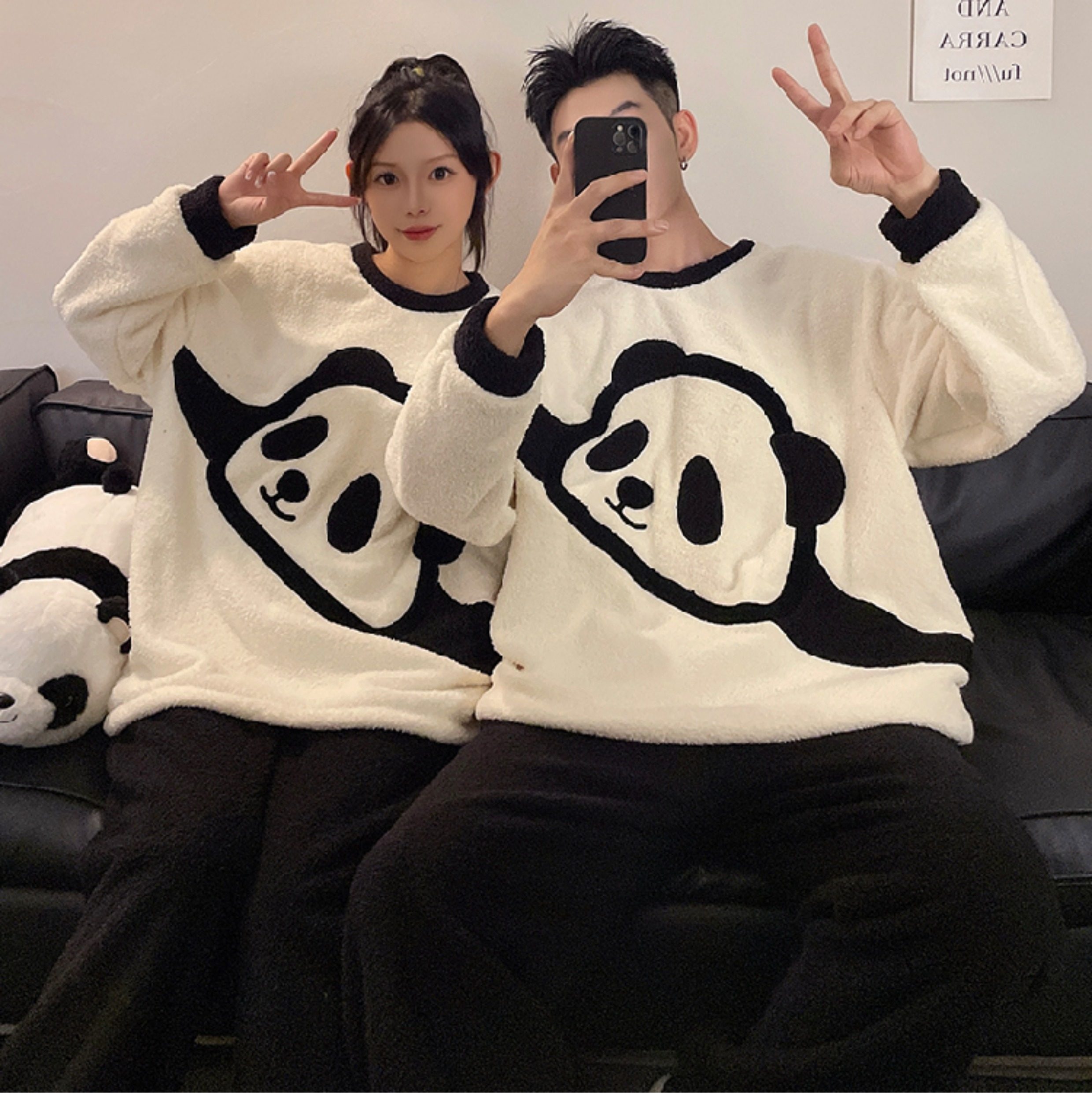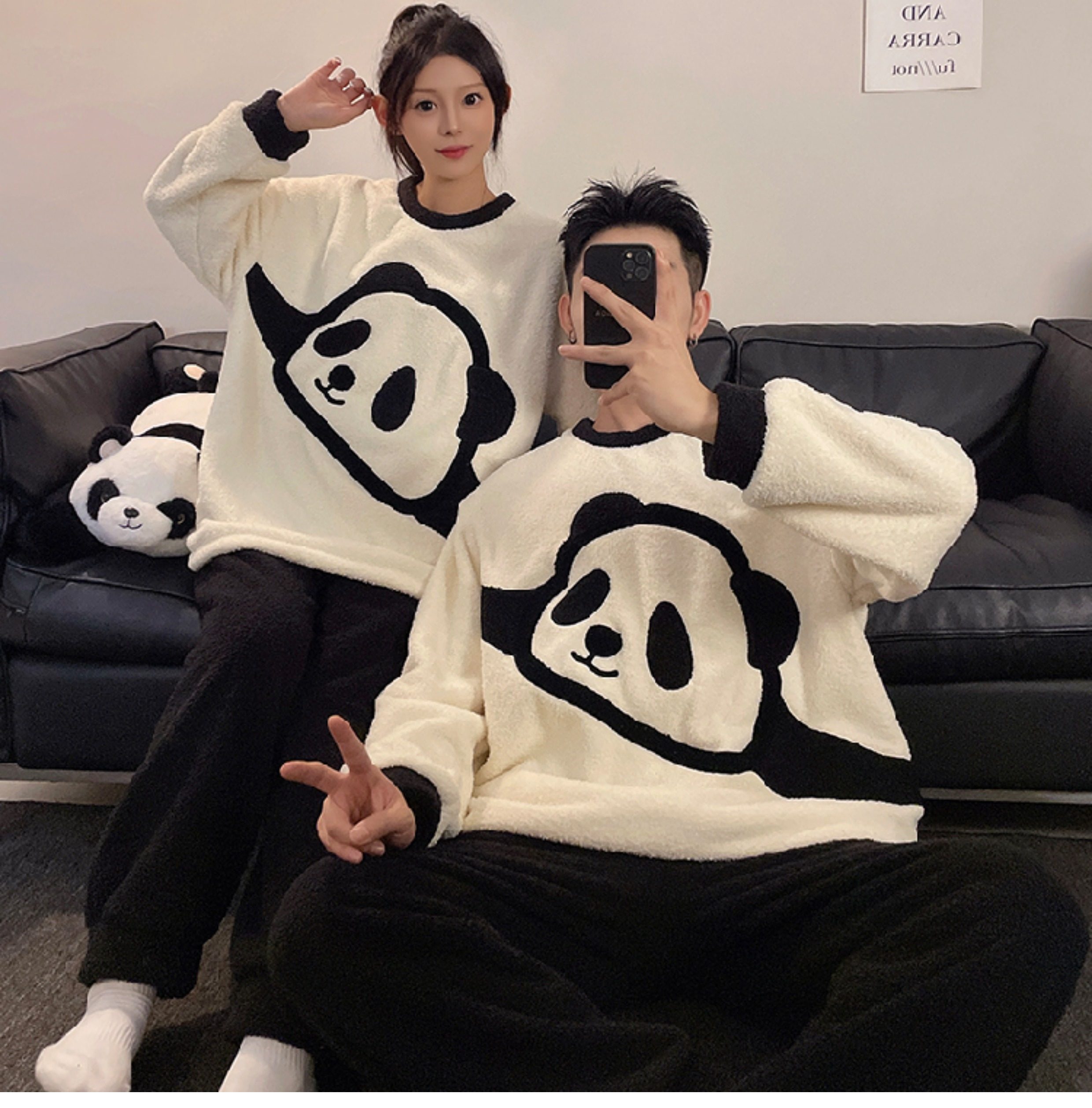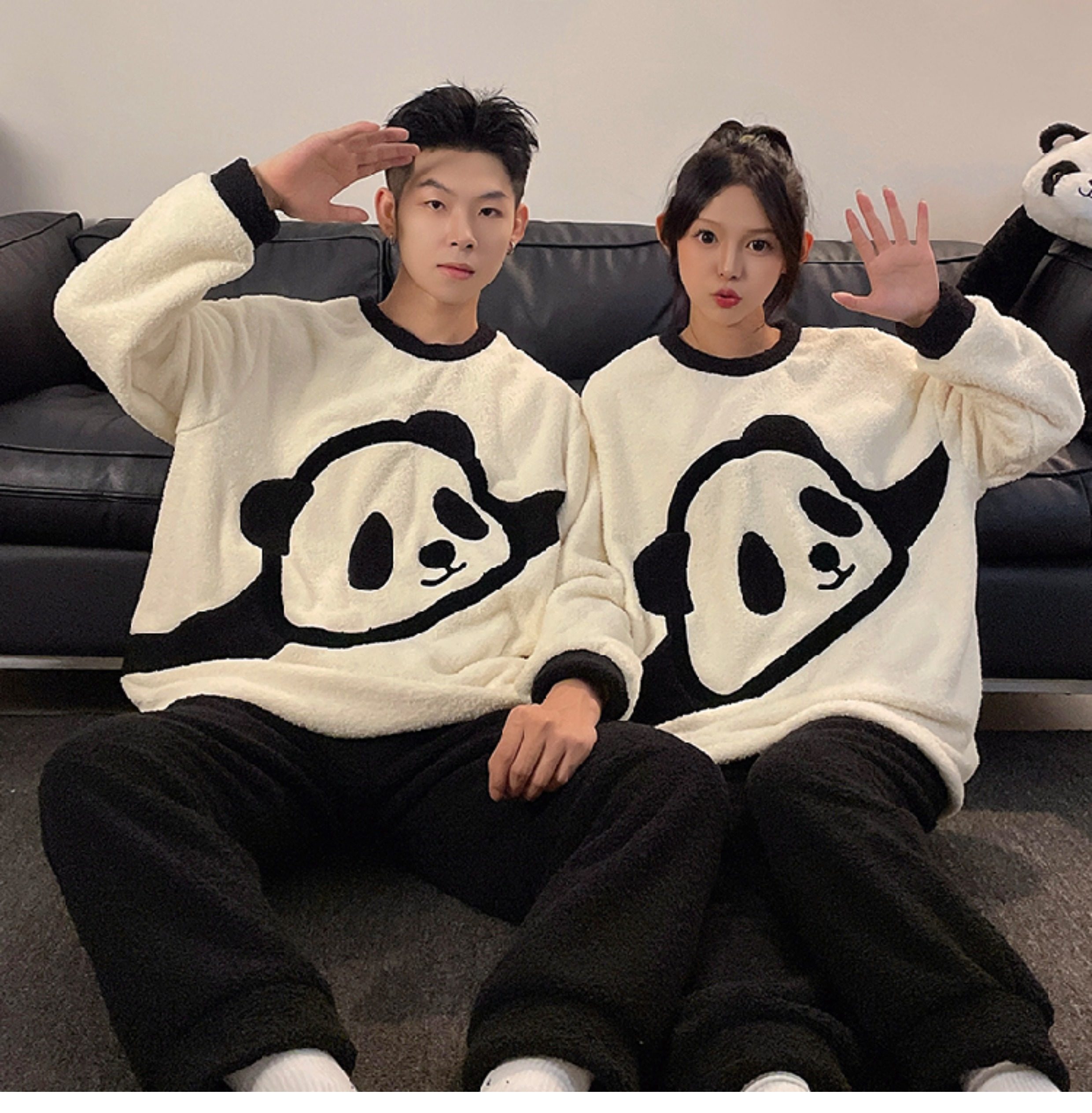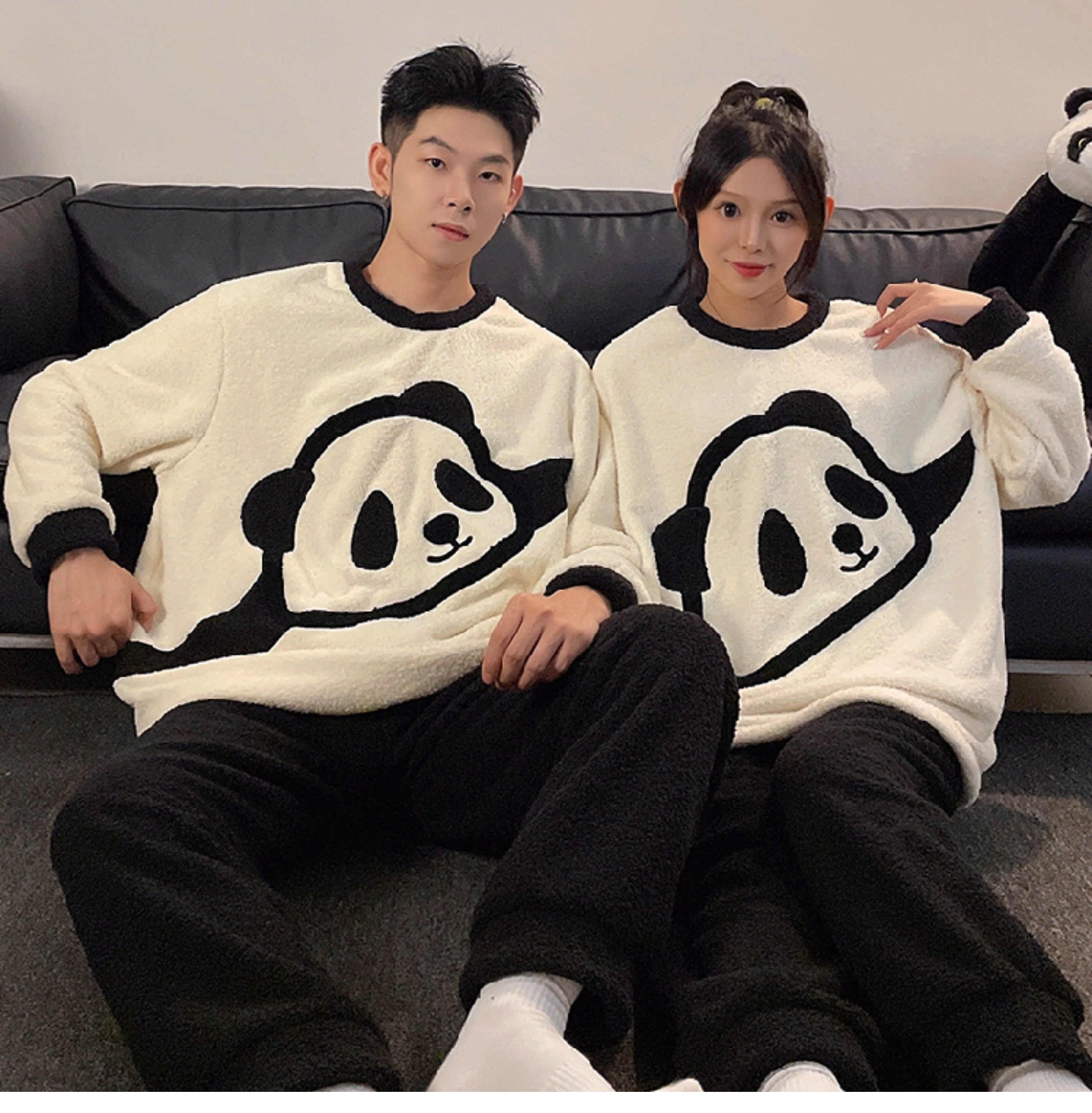 カップルパジャマ レディース 冬用 コーラルフリース 厚手 ルームウェア フェルト カートゥーン パンダ カップル パジャマ セット カップル クリスマス ギフト ID3574