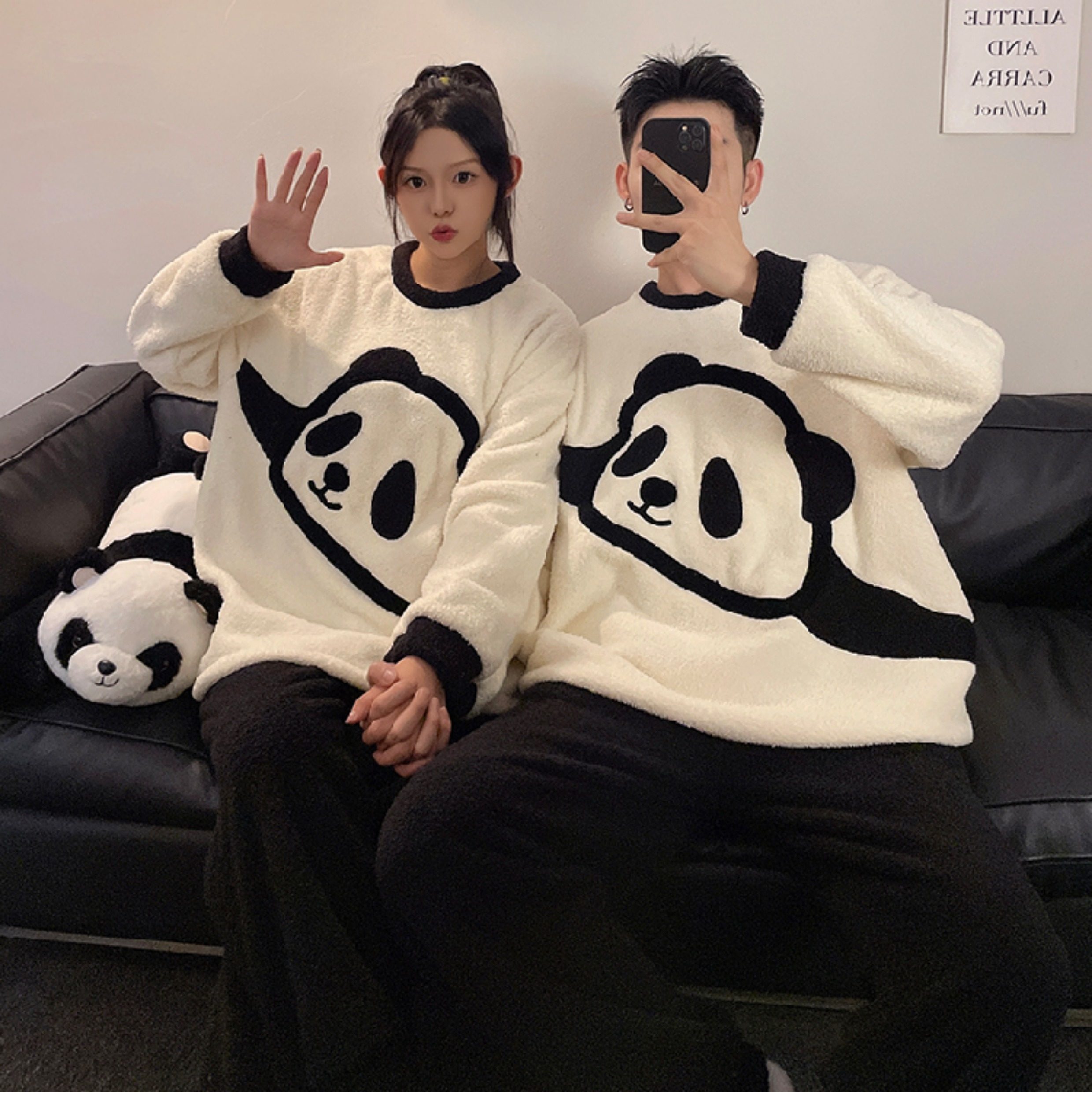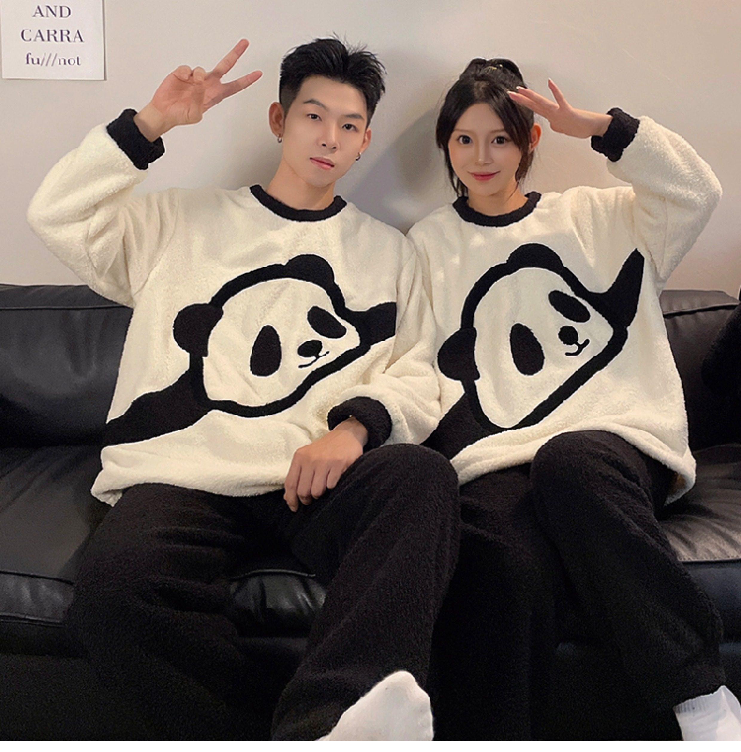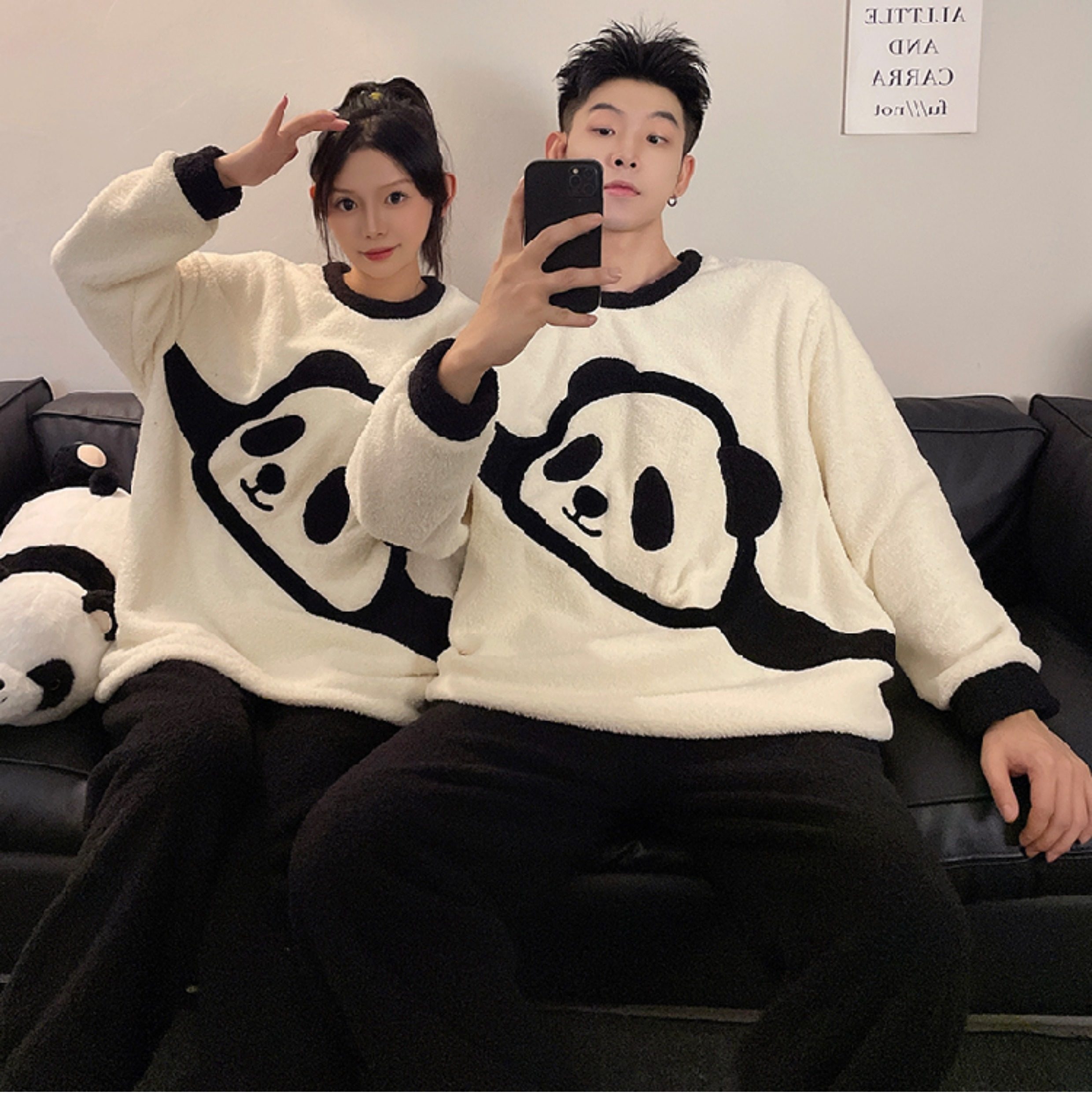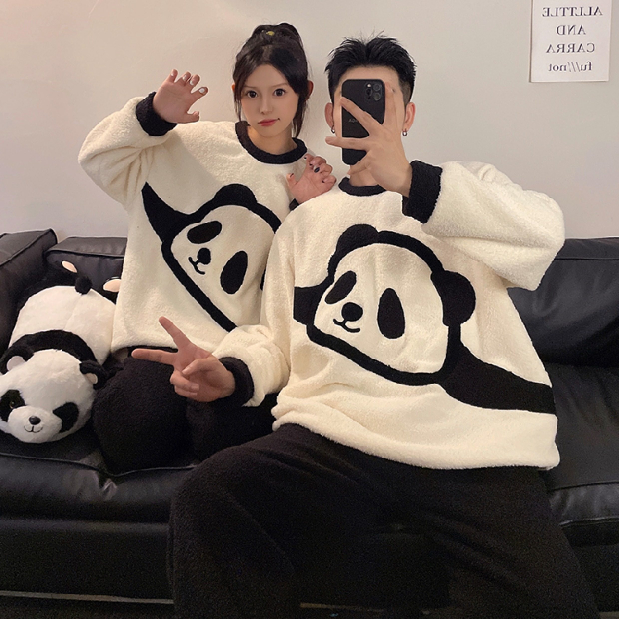 カップルパジャマ レディース 冬用 コーラルフリース 厚手 ルームウェア フェルト カートゥーン パンダ カップル パジャマ セット カップル クリスマス ギフト ID3574