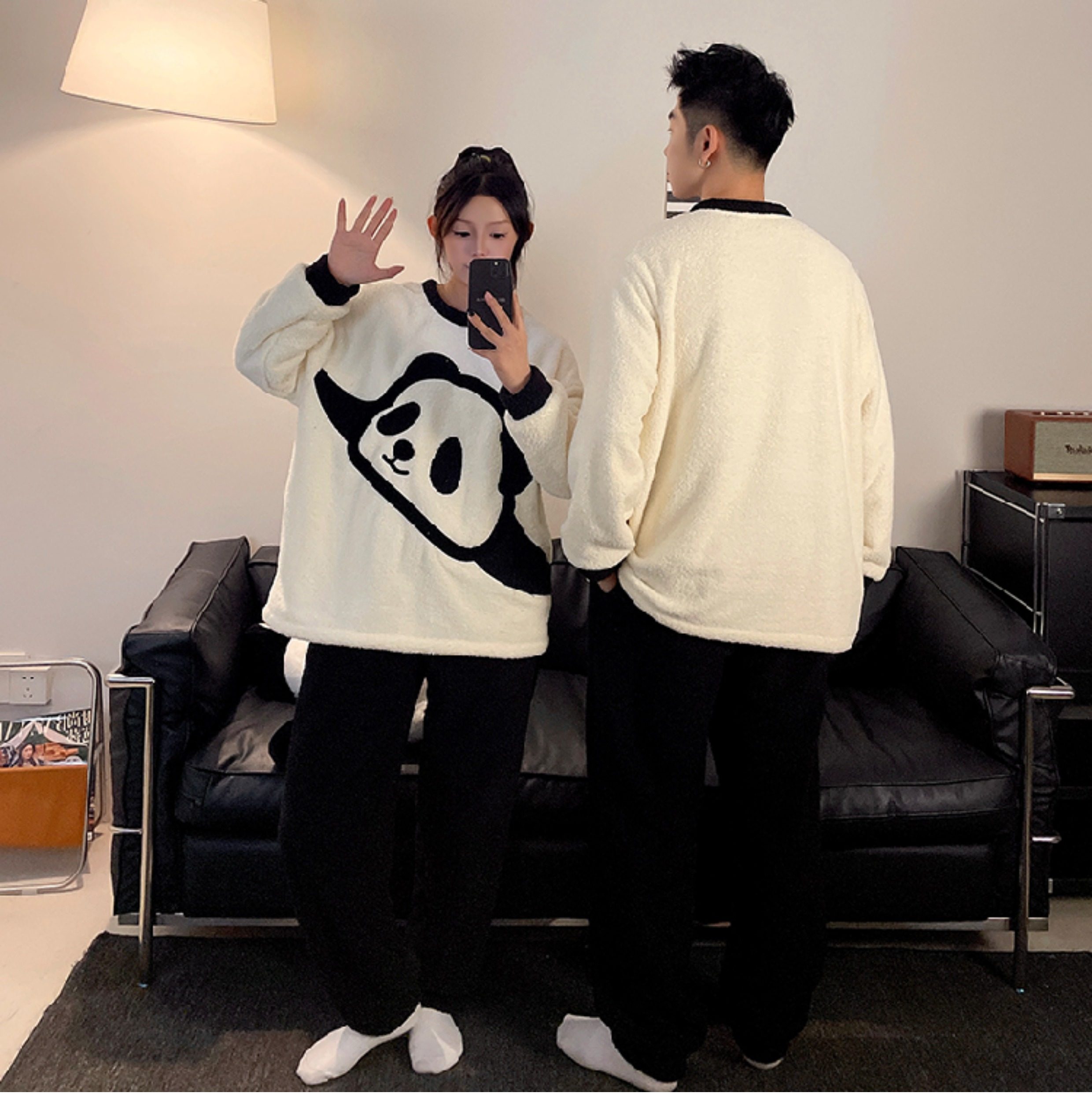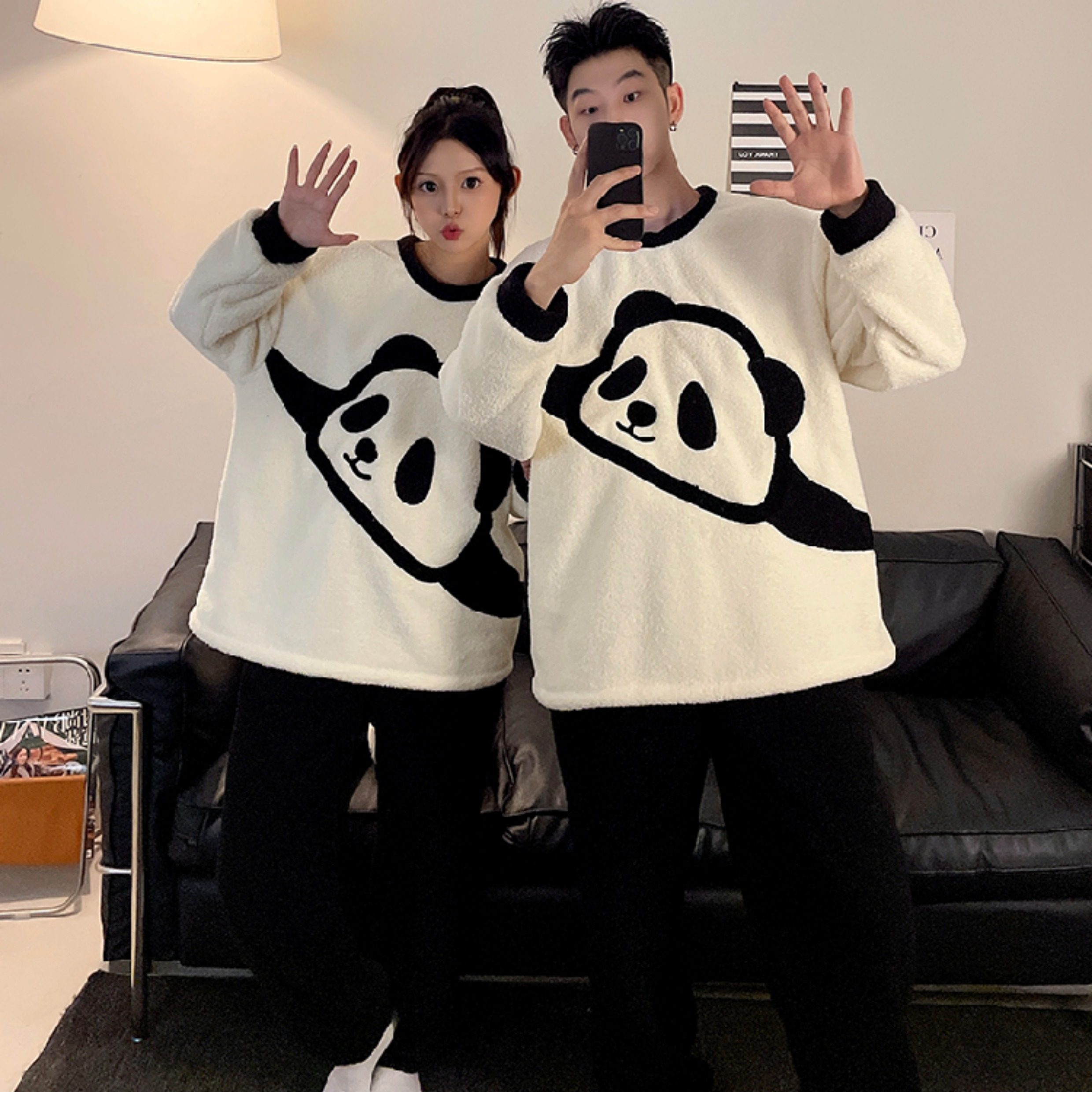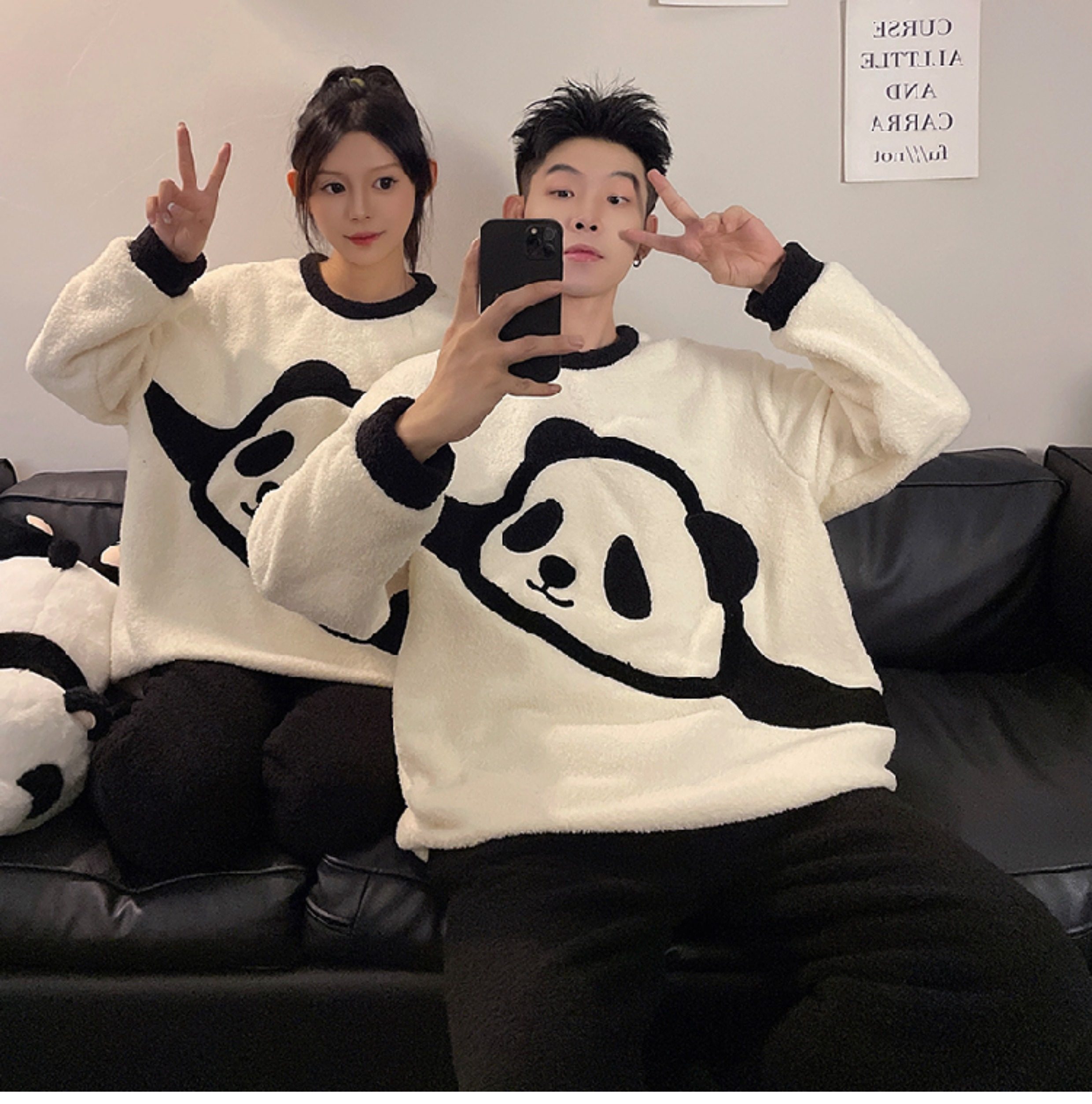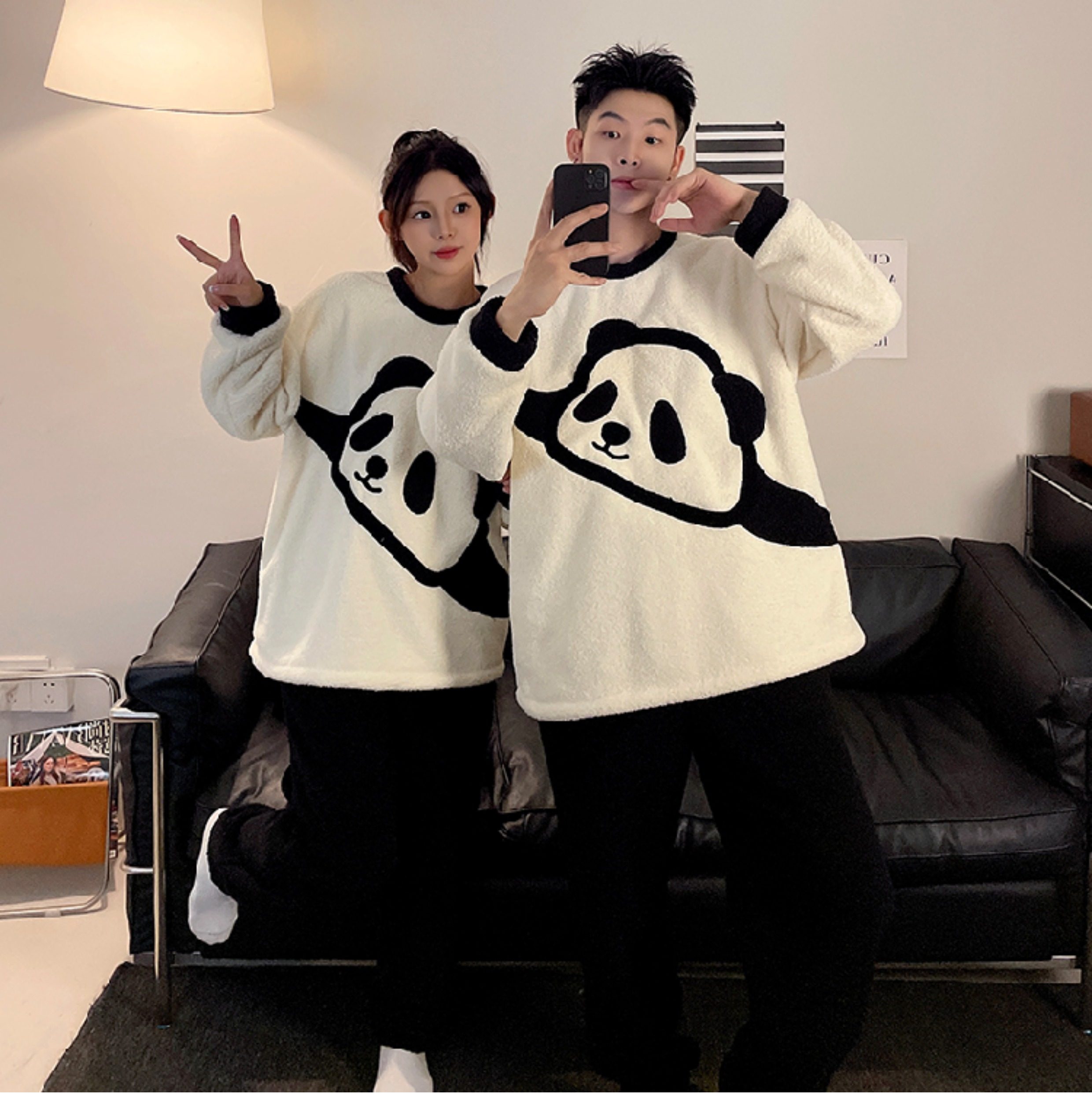 カップルパジャマ レディース 冬用 コーラルフリース 厚手 ルームウェア フェルト カートゥーン パンダ カップル パジャマ セット カップル クリスマス ギフト ID3574