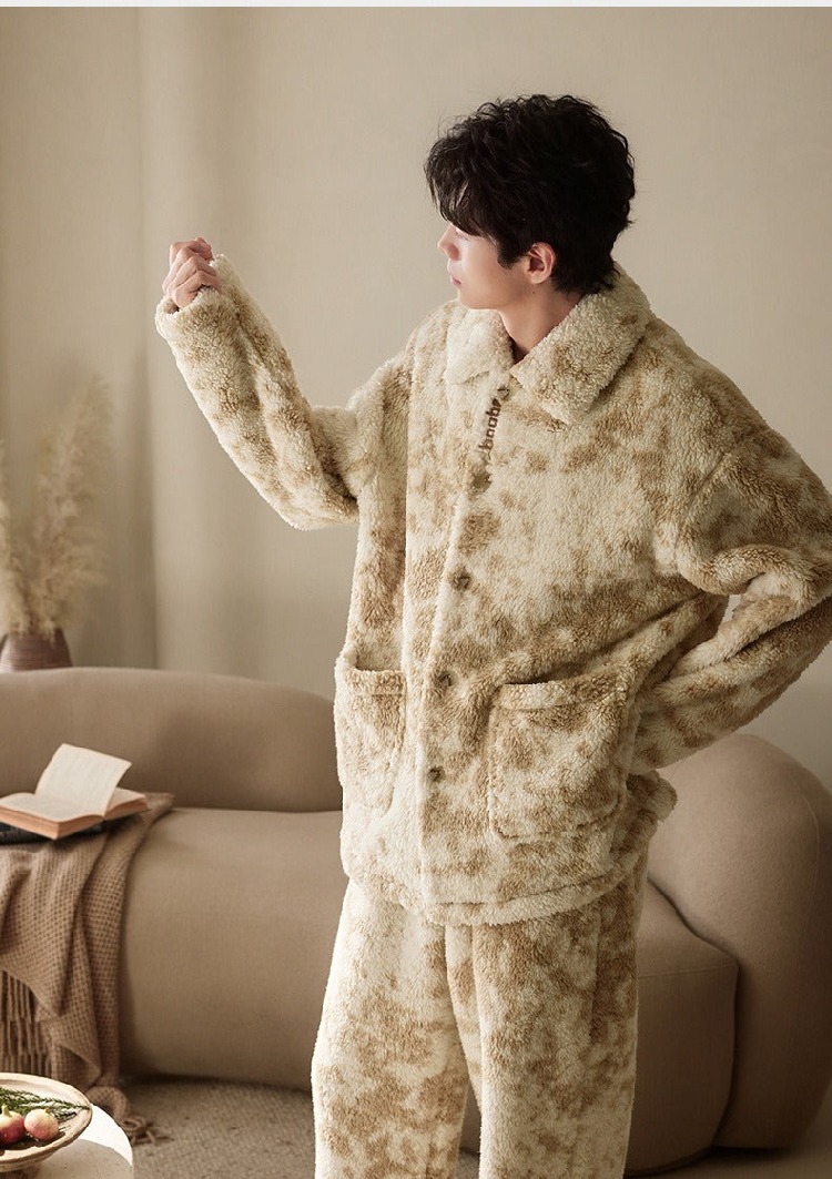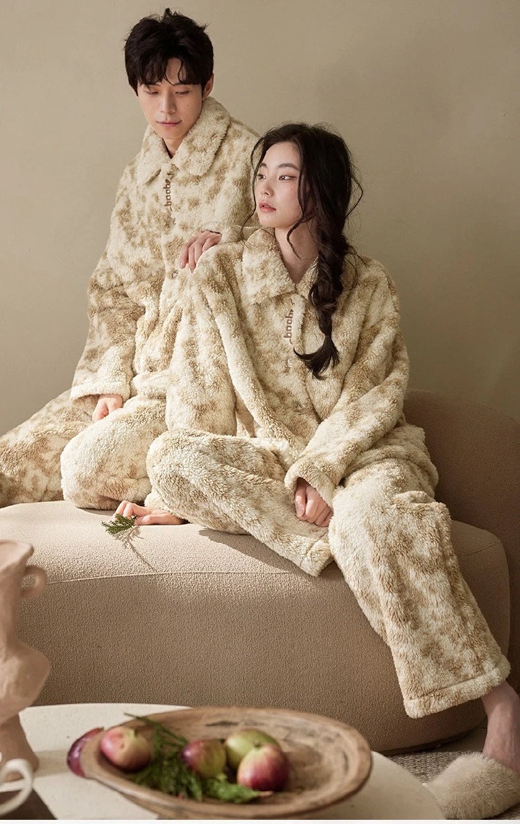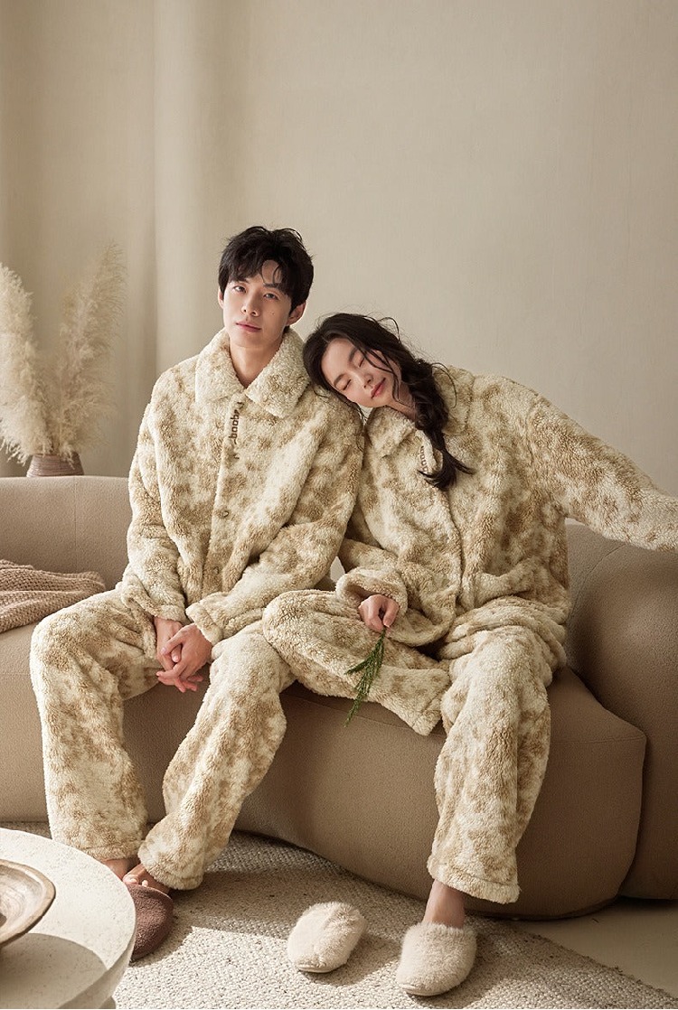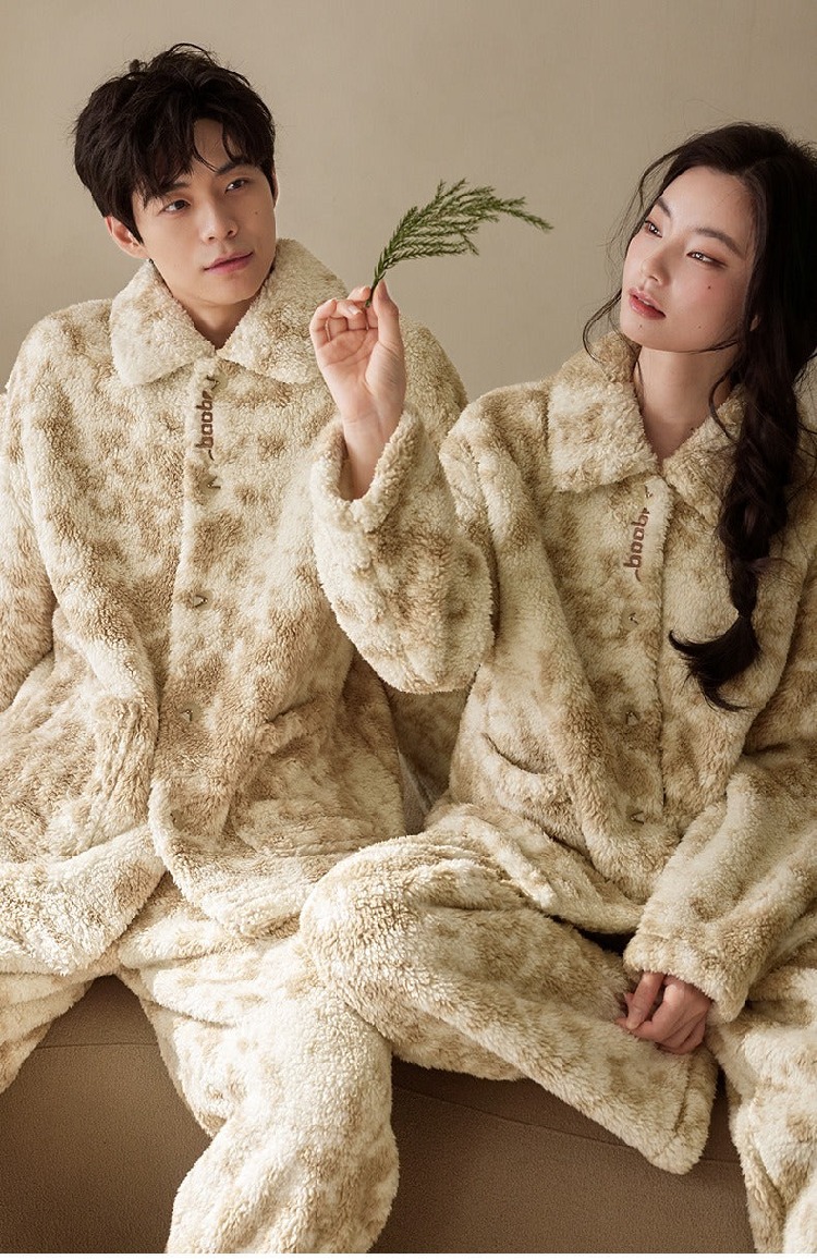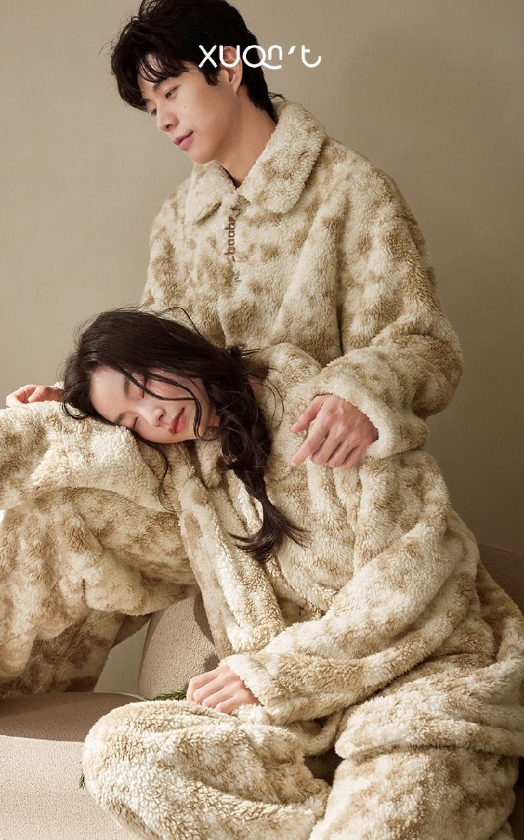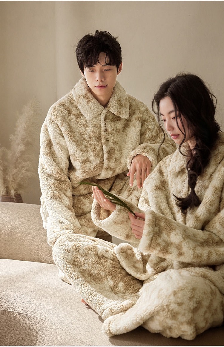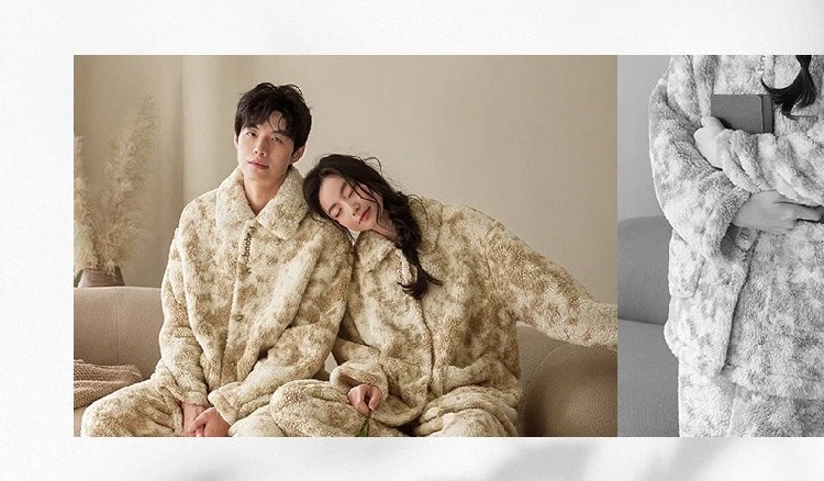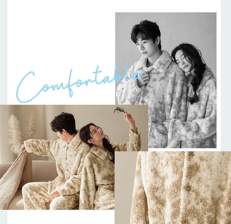 冬用 カップル パジャマ サンゴフリース 裏起毛 厚手 ゆったり 保温 フランネル メンズ ルームウェア レディース 秋冬用 ID3538