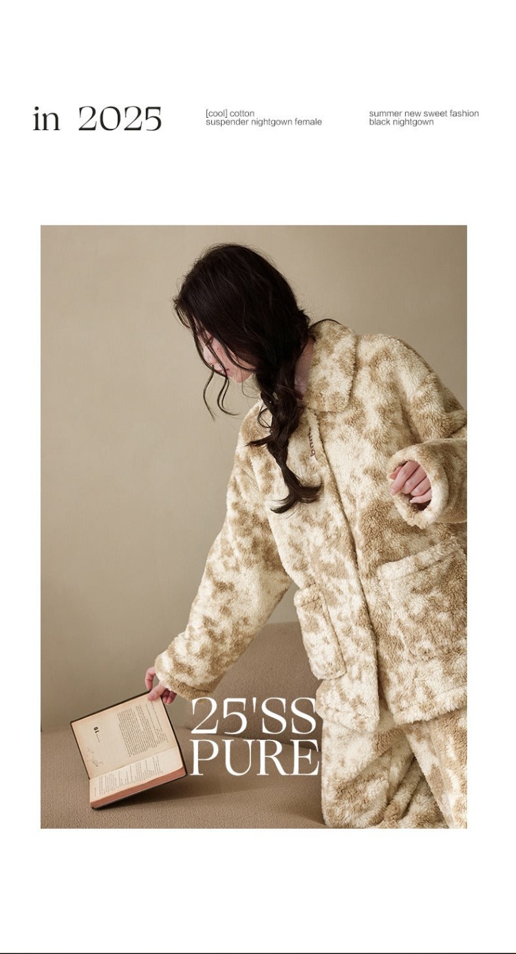 カップル パジャマ レディース コーラルフリース 秋冬用 厚手 裏起毛 メンズ フランネル ルームウェア セット ID3580