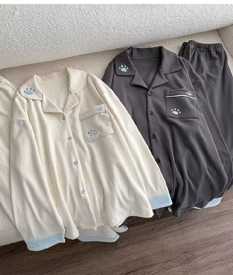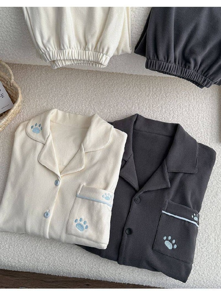 秋冬 シンプル カップル パジャマ スウィート セットアップ かわいい 可愛い おしゃれ 保温 ホームウェア セット ID4083
