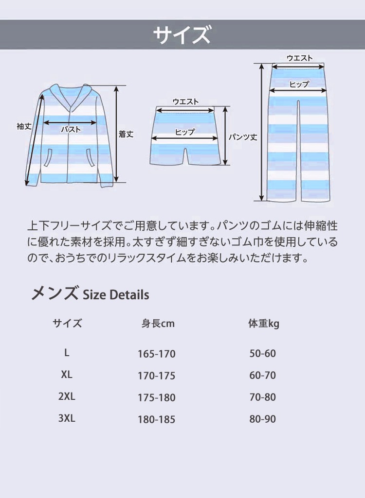 コットン ニット ストライプ 上下セット かわいい 可愛い おしゃれ パジャマ ホームウェア 長袖 長パンツ セット カップル用 ID4082