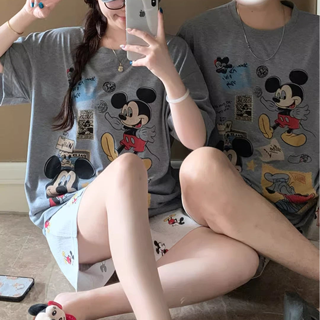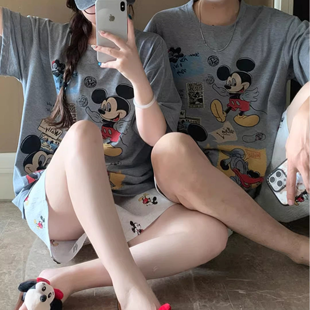 カップル パジャマ レディース 夏 半袖 ショートパンツ セット かわいい カートゥーン ミッキー メンズ プルオーバー ルームウェア 肌にやさしい 快適 ゆったり ID4718