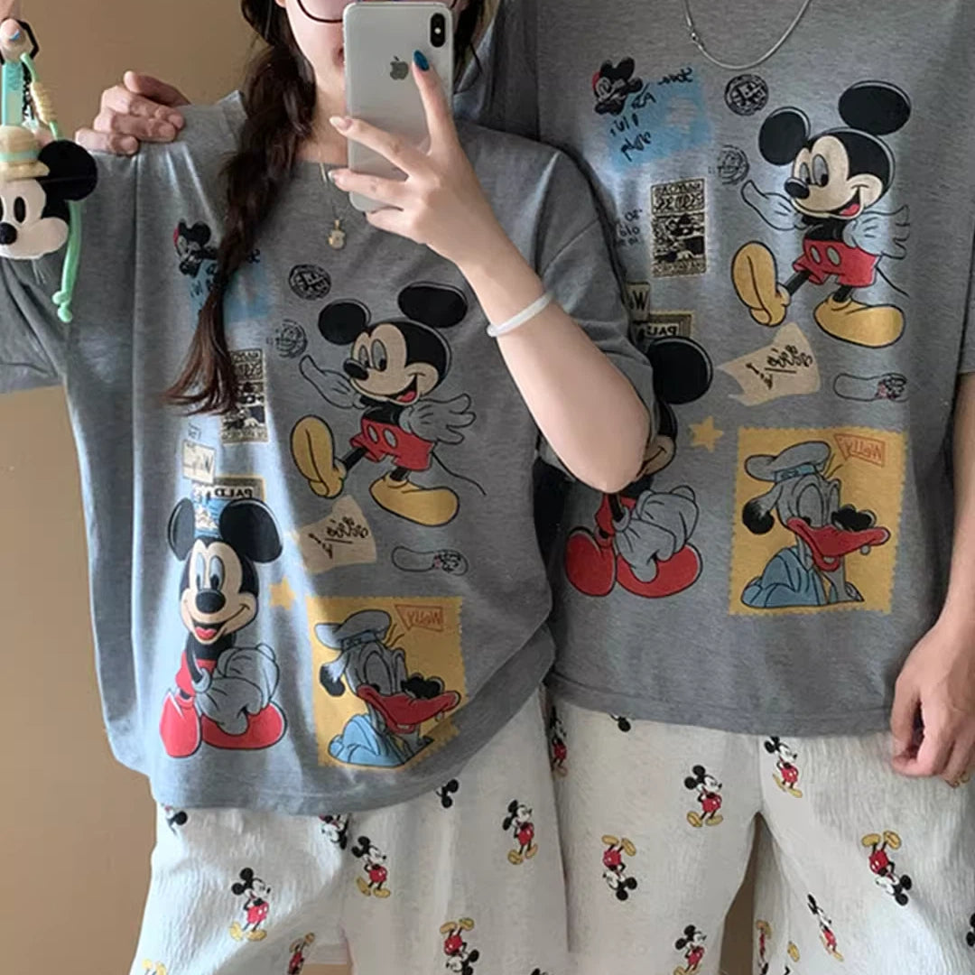 カップル パジャマ レディース 夏 半袖 綿 セット かわいい カートゥーン ミッキー メンズ プルオーバー ルームウェア 肌にやさしい 快適 ゆったり ID4717