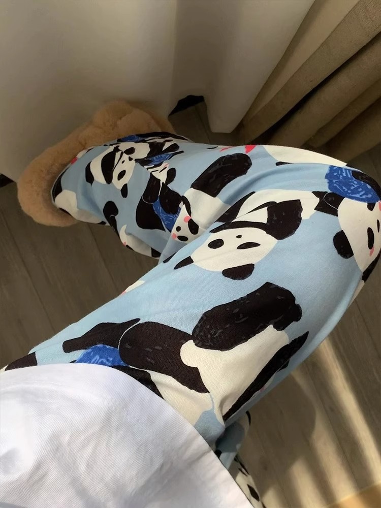 パジャマパンツ パンダ レディース 春夏 薄手パンツ 大きいサイズ 快適 通気性 軽い コットン ガーゼ ホームパンツ ハイエンド アウター ウォーキングパンツ ID606