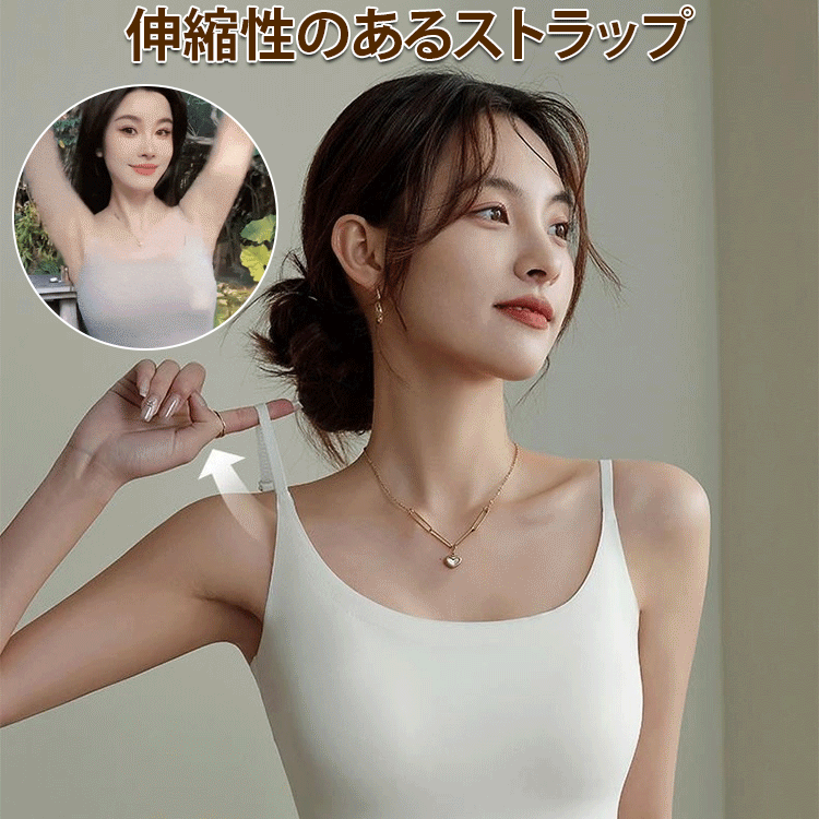 新作シリーズ 無地 4色入り スリム アイスシルク ストラップトップ レディース シームレス ブラ付き 体型カバー インナー兼用 ロング丈 薄手 美背デザイン 着痩せ効果 良い オールマッチ キャミソール ID1025