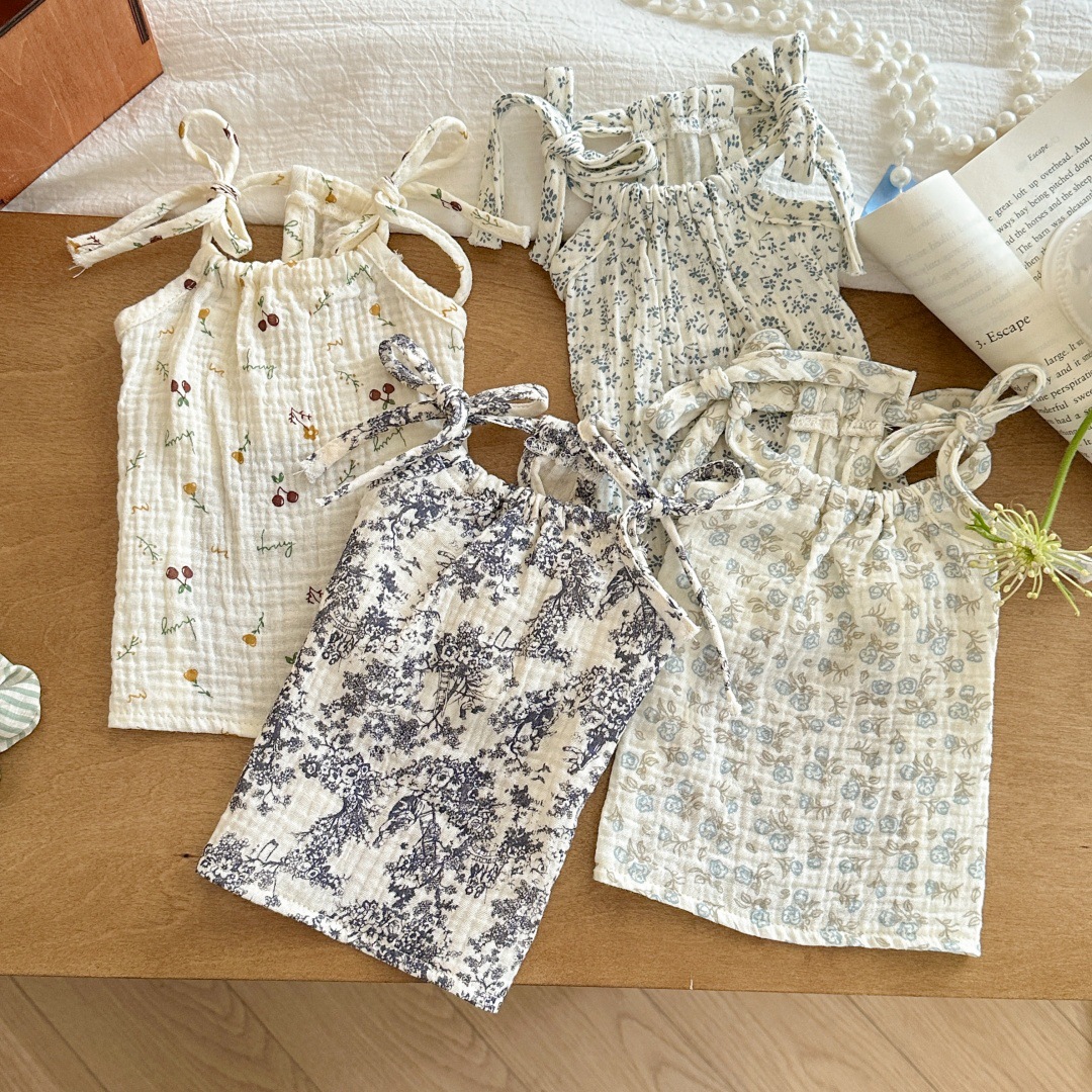 ペット用 ガーゼ素材 ノースリーブベスト 小型犬・猫対応 綿100% ふんわり通気 薄手軽量 抗菌 洗える サイズ調節可能 おしゃれ ID1362