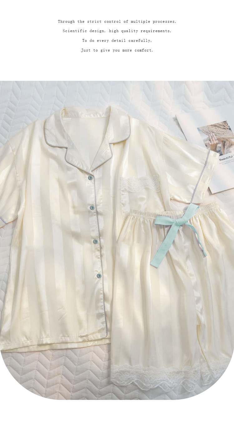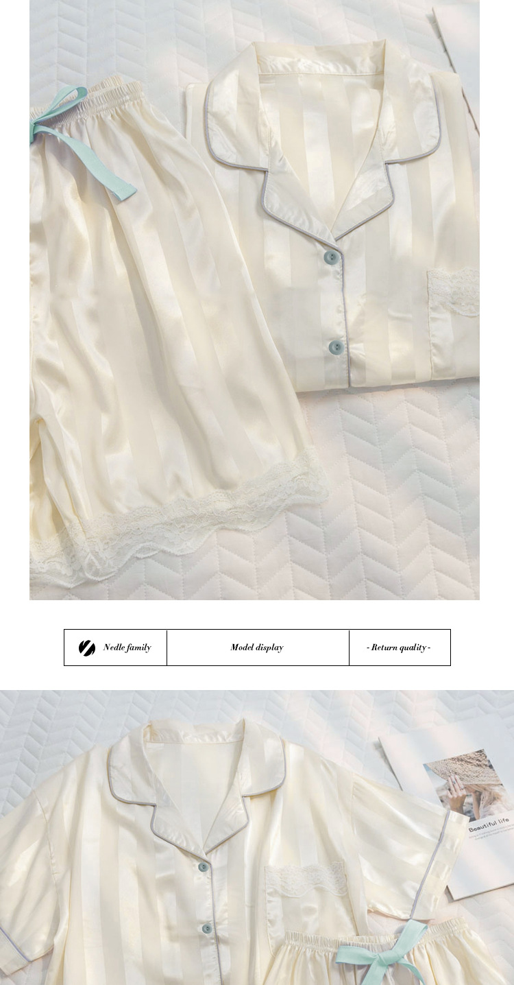 ストライプ アイスシルク パジャマセット 半袖+半パン ゆったり おしゃれ 部屋着・外出兼用 ID1367