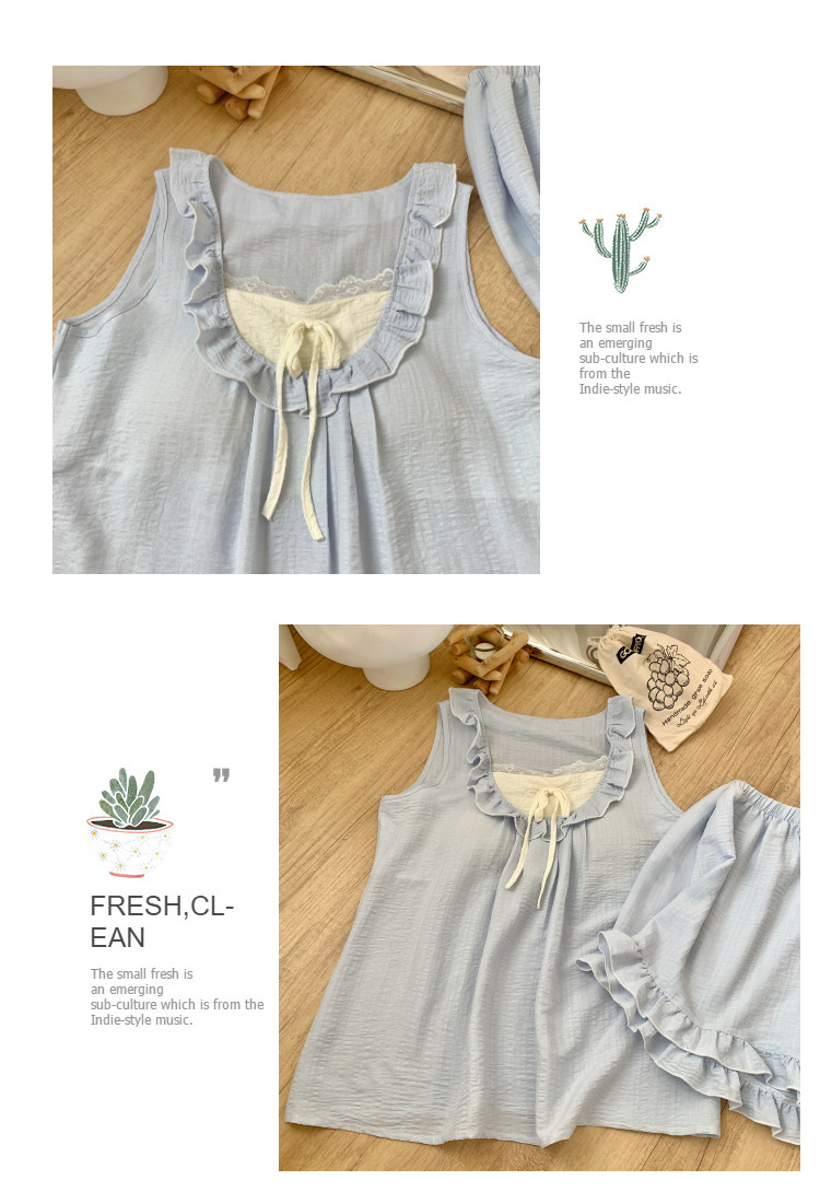 レディース 夏 新作 付けパッド キャミソール 見せかけツーピース パジャマ セット アクアブルー フリルレース 清楚系 薄手 サラサラ素材 ノーブラでOK 透け感なし おうちデート ID1414
