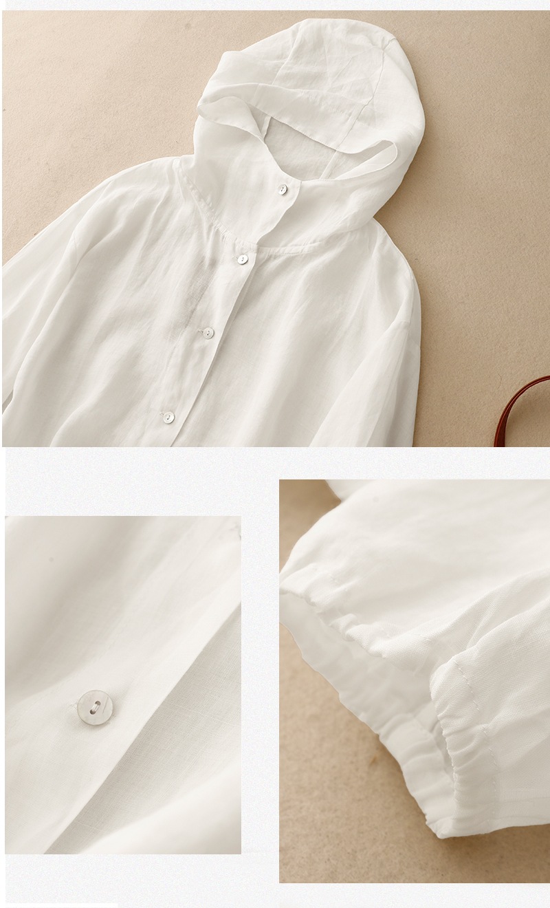 レディース 夏 プラスサイズ リネンコットン 日焼け止めジャケット フード付き 長袖 薄手 UVカット 冷房対策 ゆったり設計 おしゃれ羽織り お出かけ 上品 かわいい ID1415