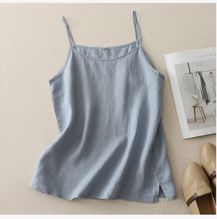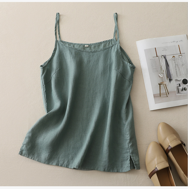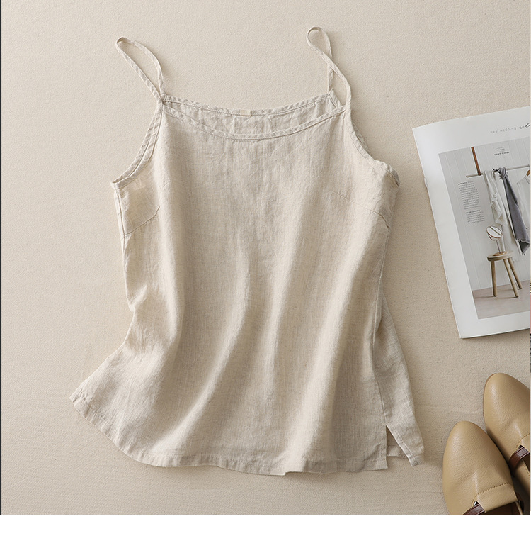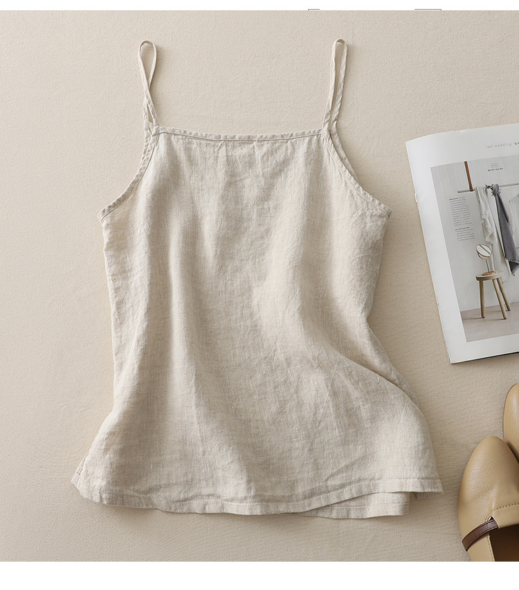 レディース 夏 リネンコットン タンクトップ Vネック深め 肌触り最高 薄手 透け感なし ナチュラルテイスト インナー すっきりシルエット おしゃれ 夏の定番 ID1425