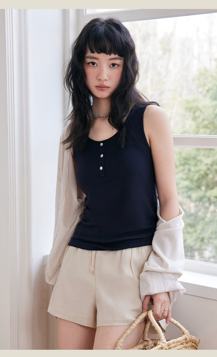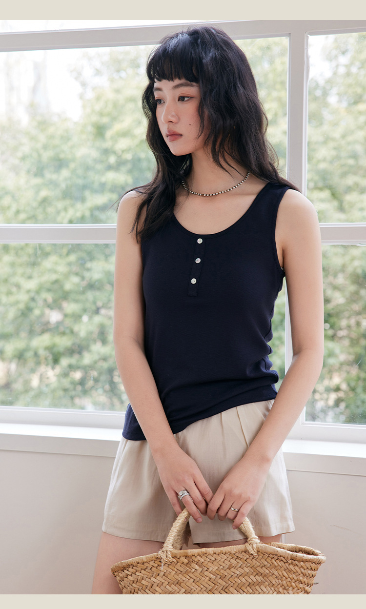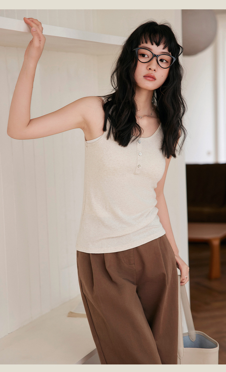 レディース 春 夏 リヨセル麻 キャミソール ワンカラー 新作 ボタン留め 肌ざわり最高 薄手 透け感なし 重ね着 シンプルモダン 通勤対応 おしゃれインナー ID1437