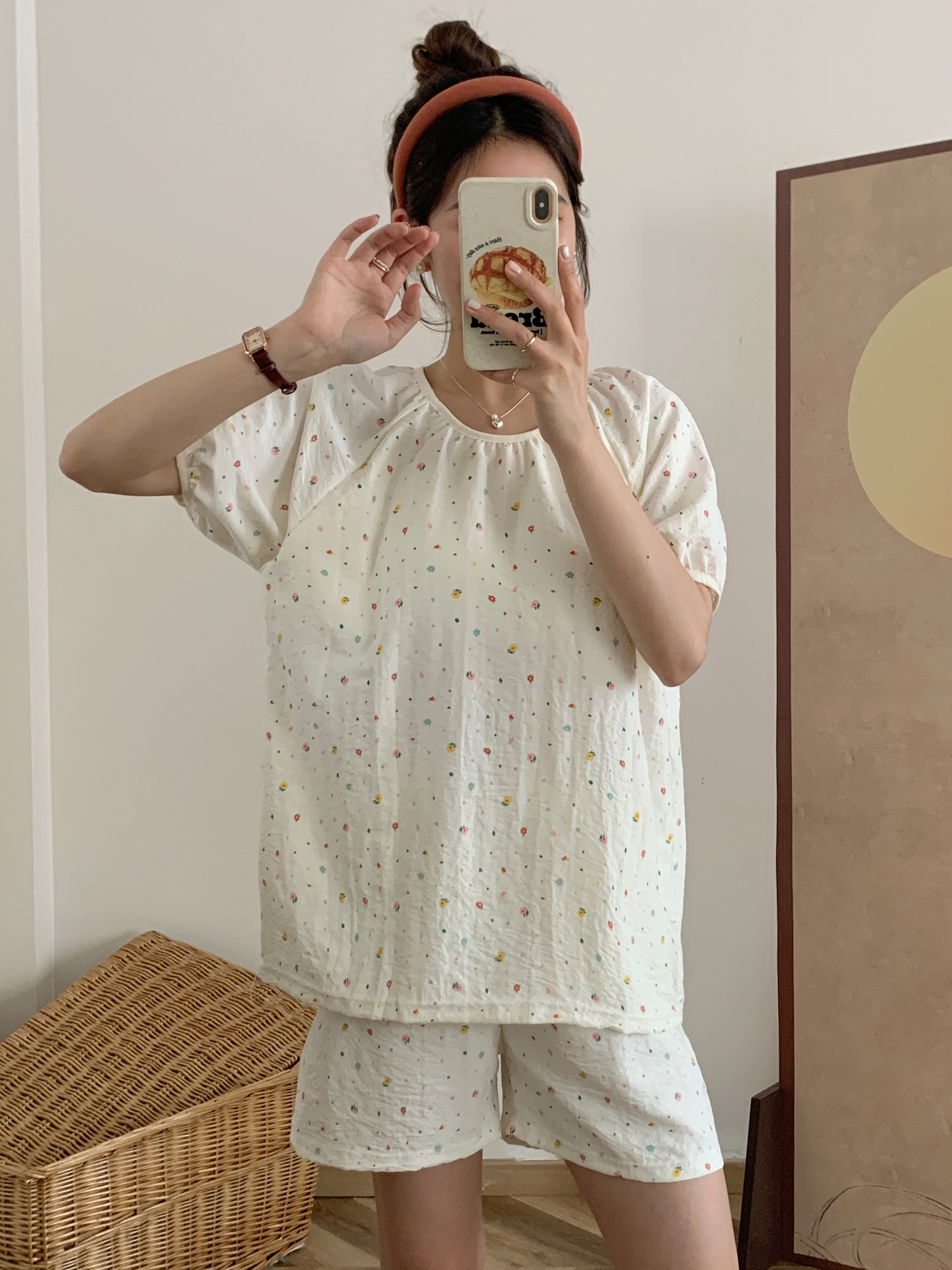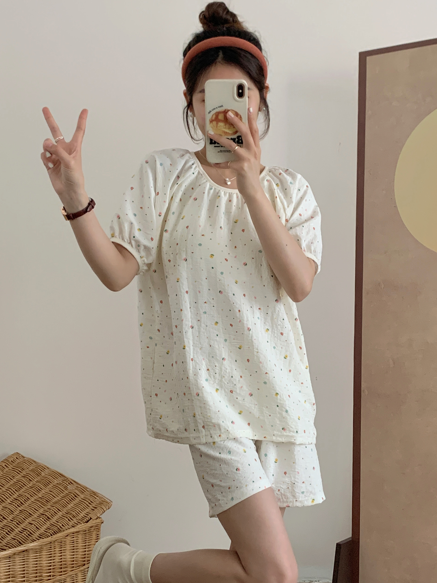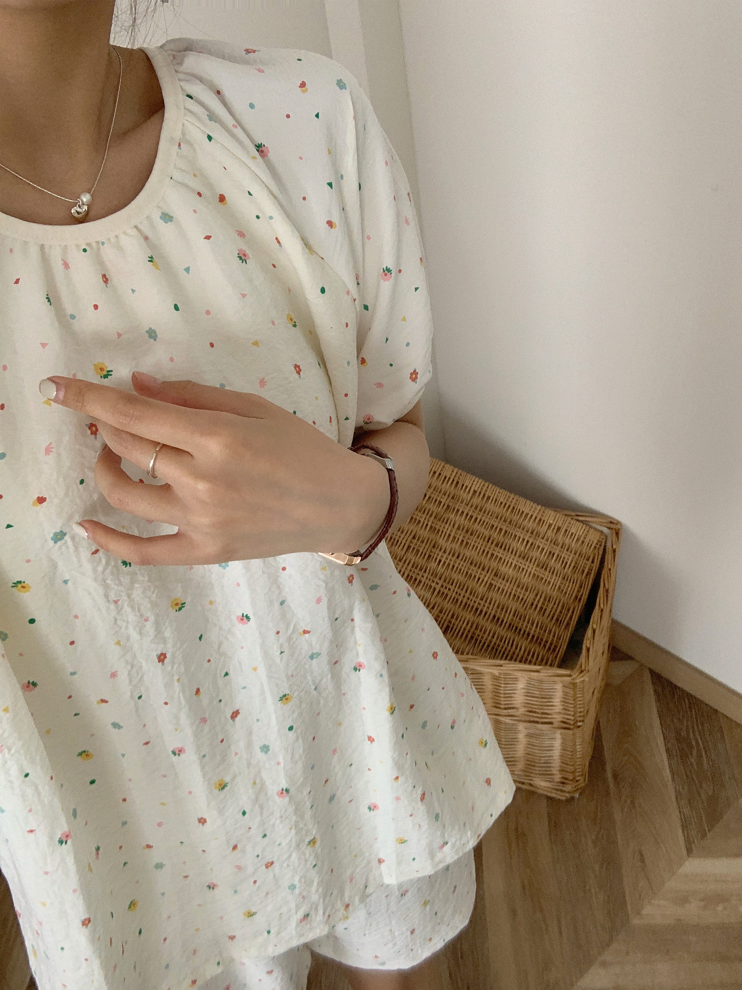 小花柄 チュニック付き パッド入り ナイトウェア レディース 夏用 綿 半袖セットアップ 薄手 可愛い 学生用 クラウドコットン ルームウェア ID1440