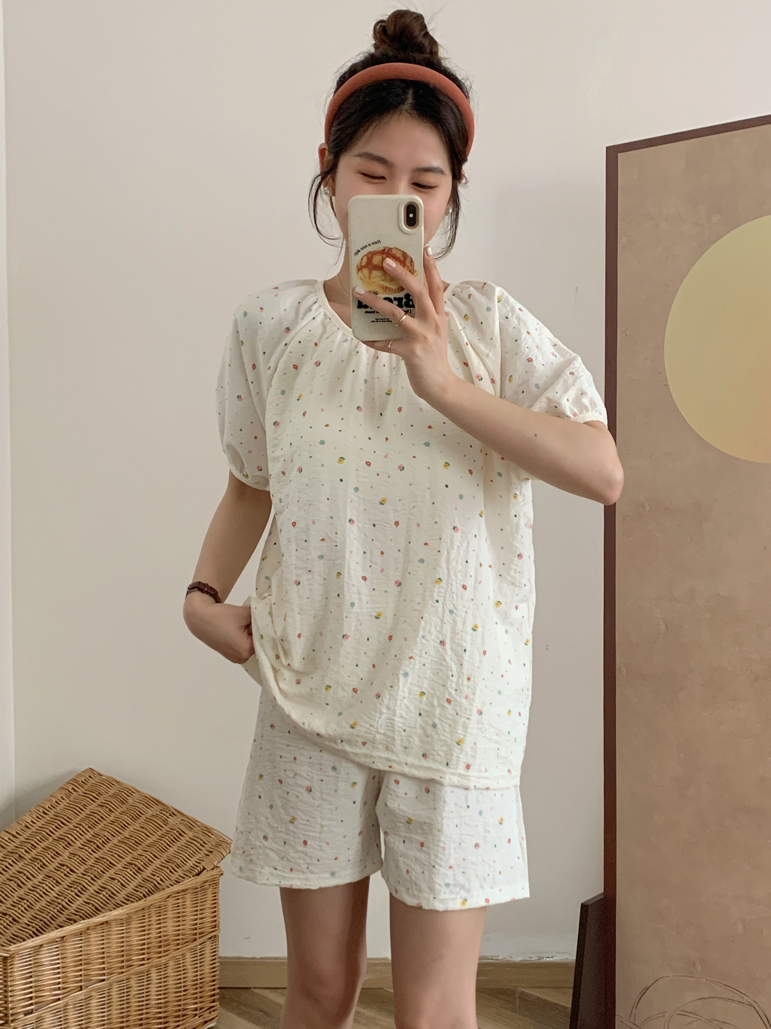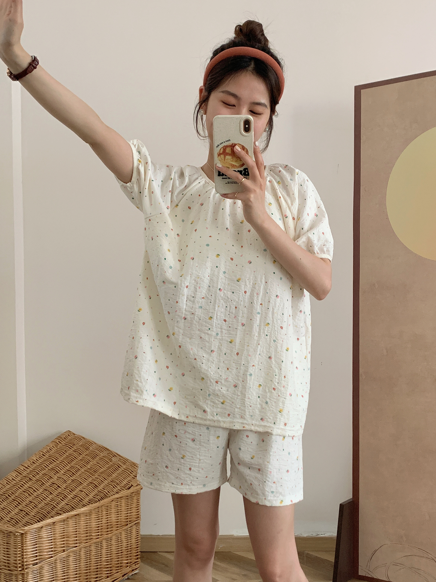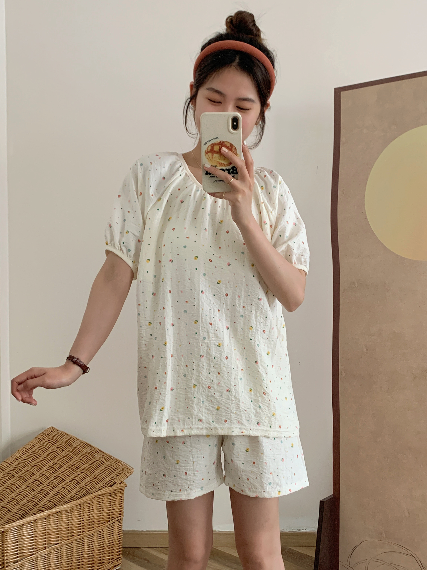 小花柄 チュニック付き パッド入り ナイトウェア レディース 夏用 綿 半袖セットアップ 薄手 可愛い 学生用 クラウドコットン ルームウェア ID1440