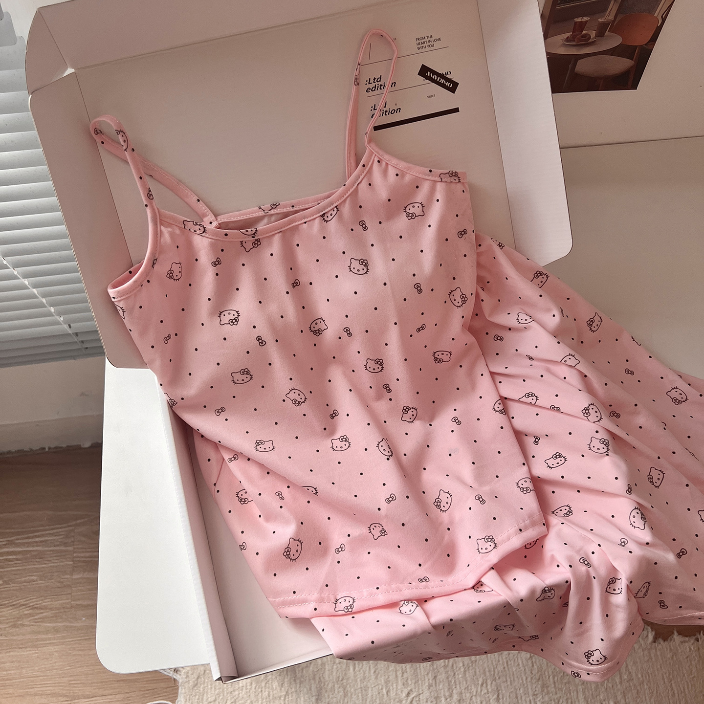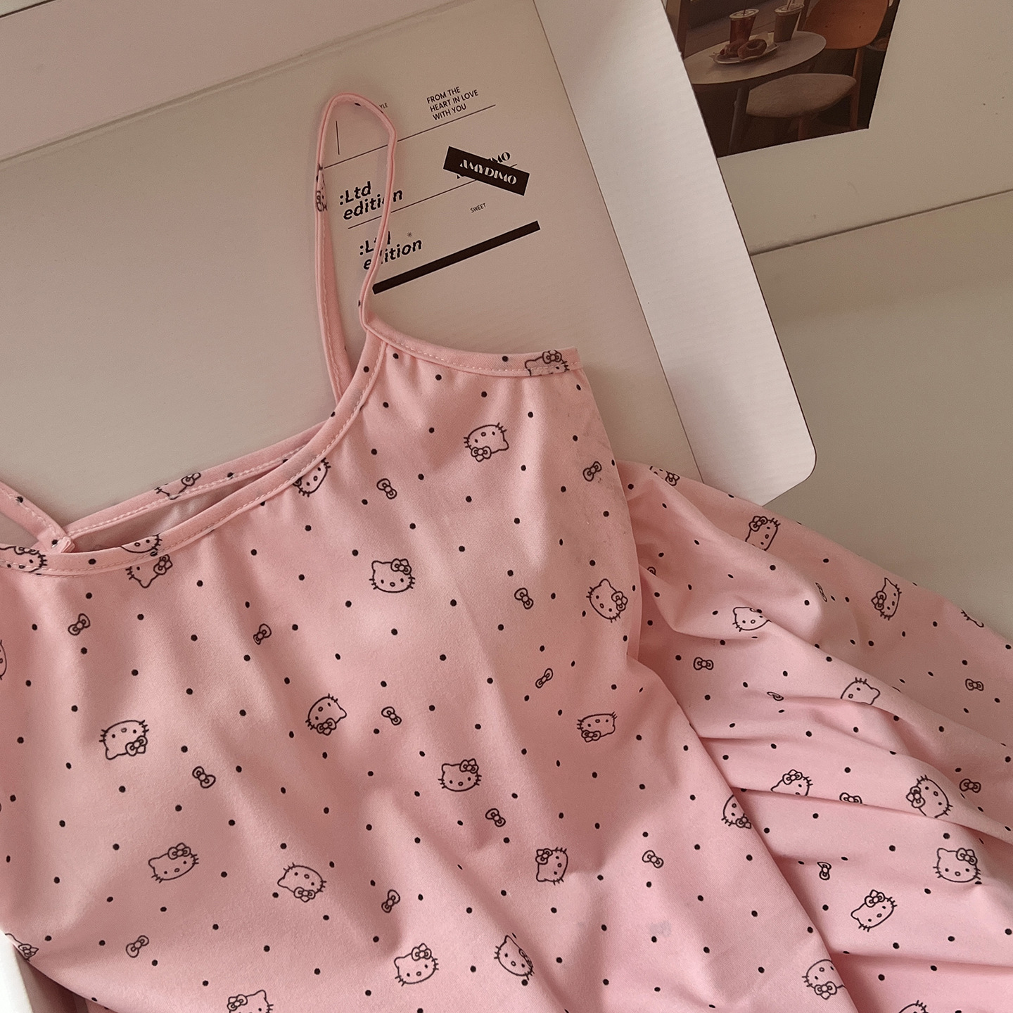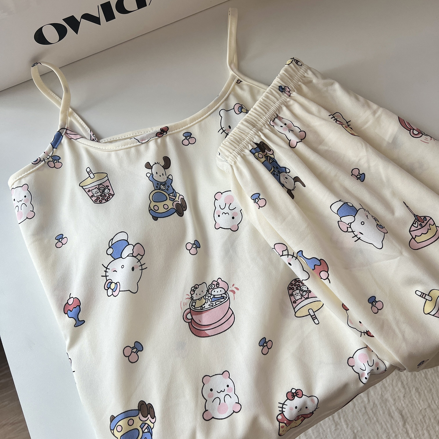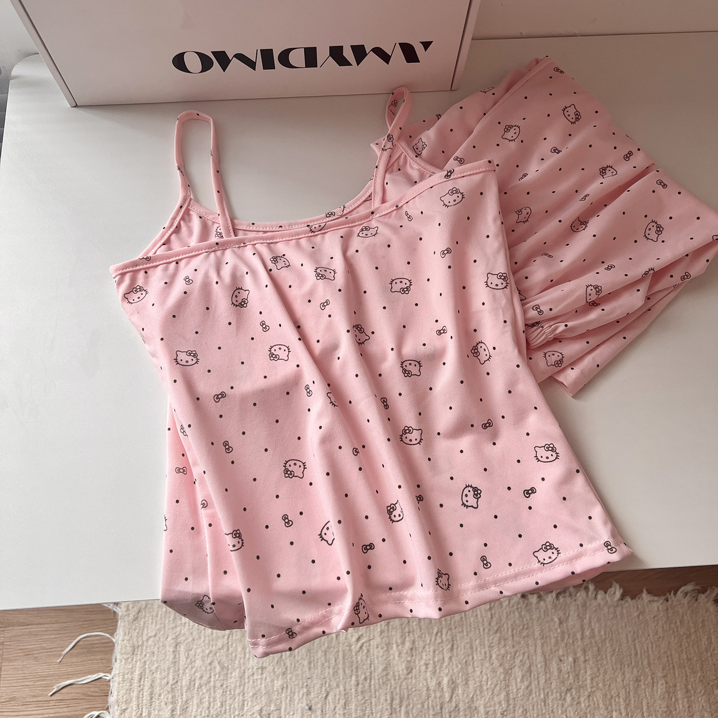 早割特典 パッド付き ハローキティ ブルー ストラップパジャマ ショートパンツセット おうちカフェ 外出対応 薄手涼感 サマーコーデ 女子ごころ ID1467