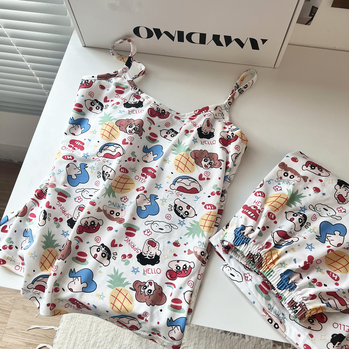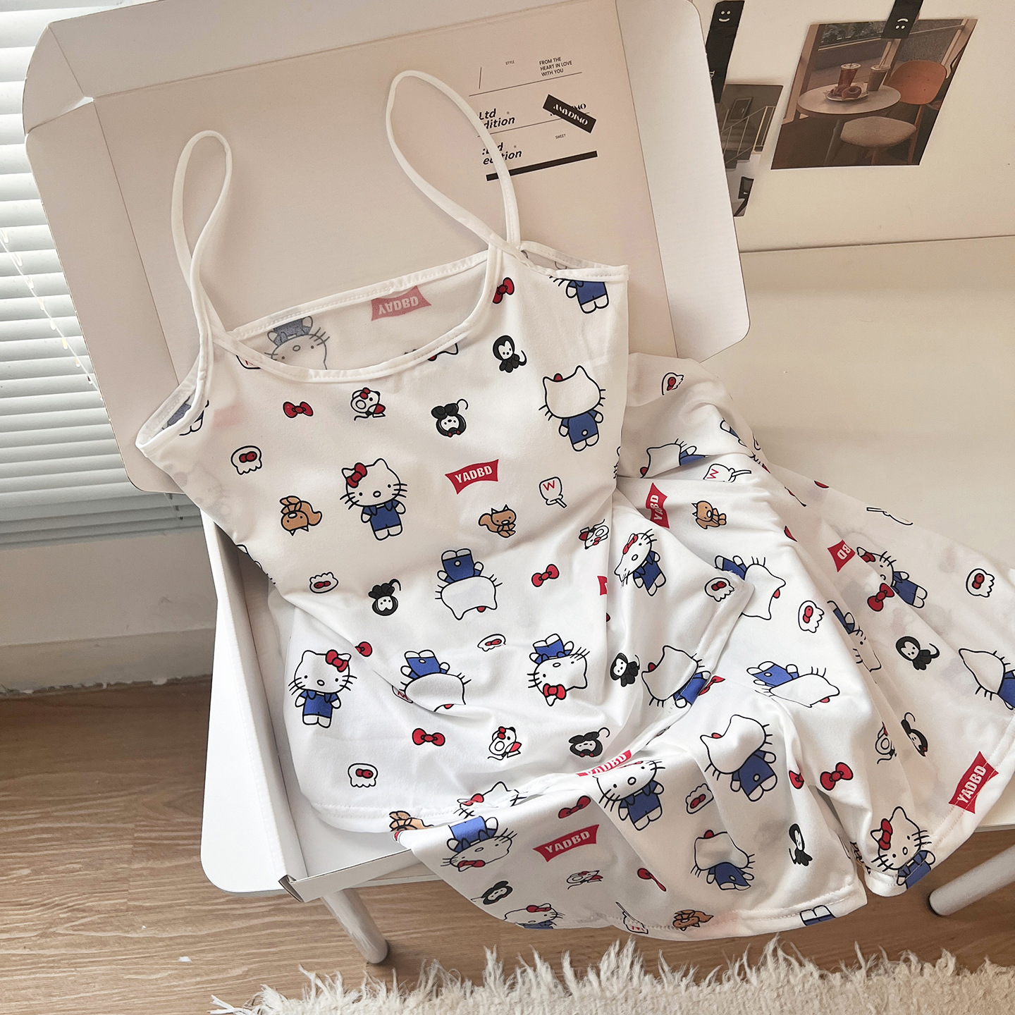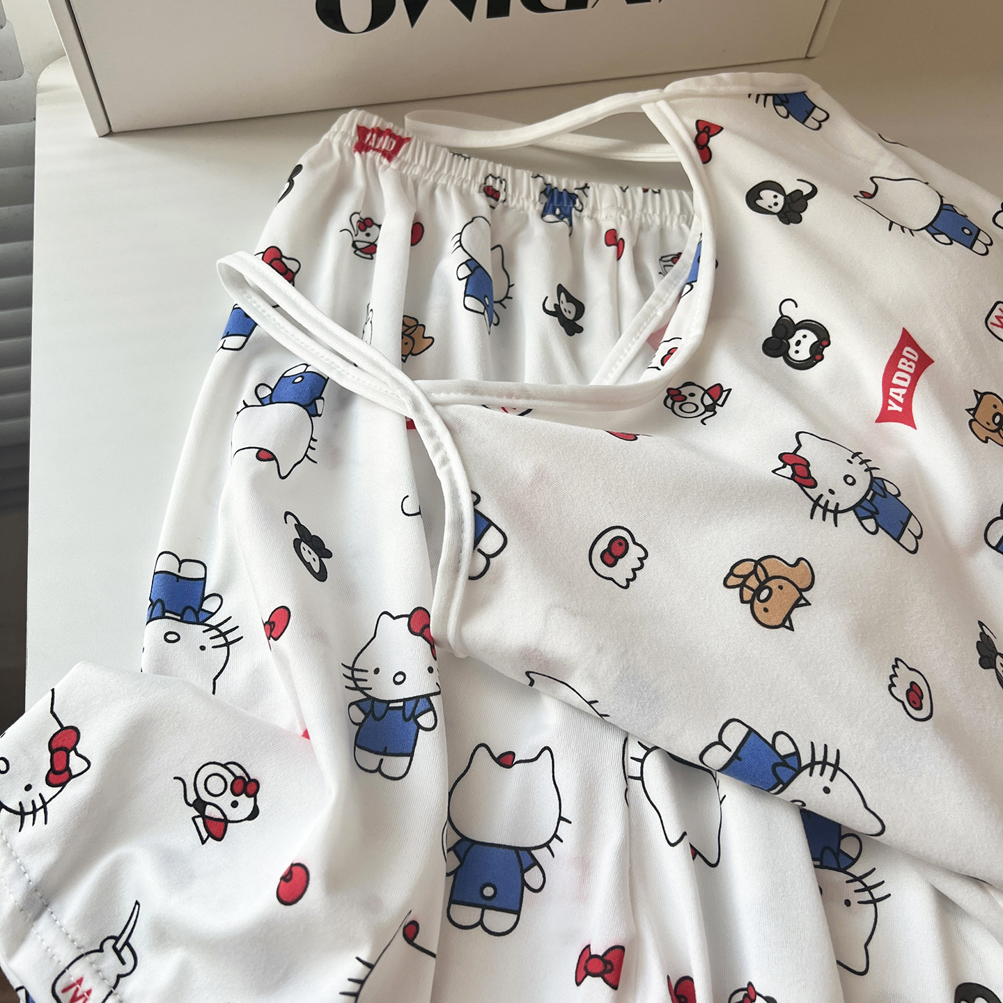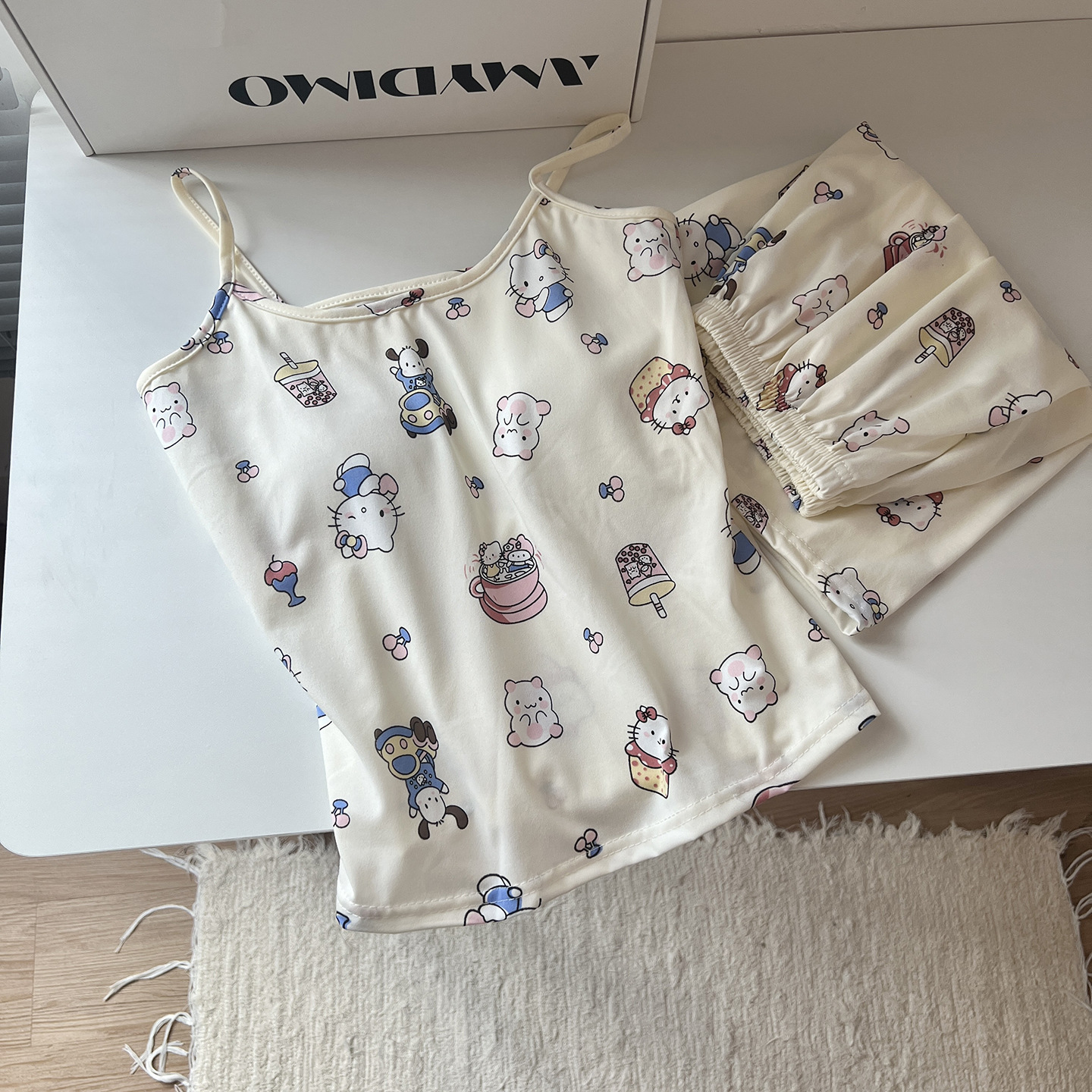 早割特典 パッド付き ハローキティ ブルー ストラップパジャマ ショートパンツセット おうちカフェ 外出対応 薄手涼感 サマーコーデ 女子ごころ ID1467