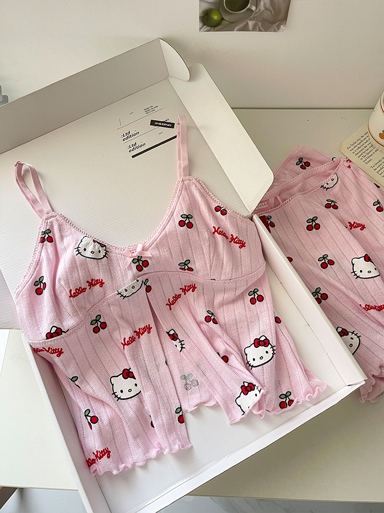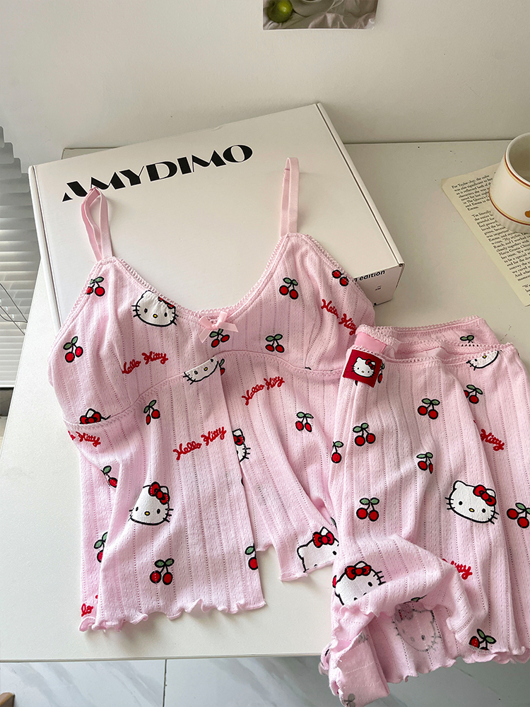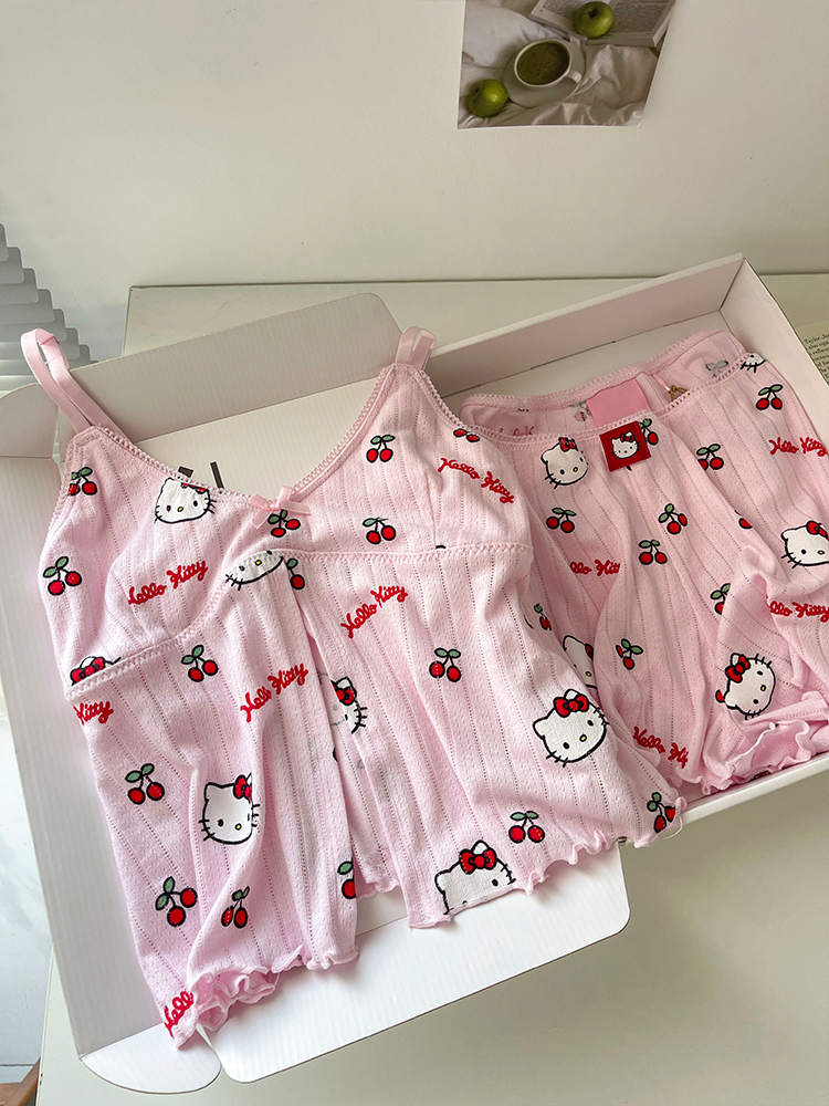 かわいい 少女系 スイート ハローキティ ノースリーブ パジャマ レディース 夏 ピュア&セクシー ショートパンツ ルームウェア インスタ人気 爆売れ 涼感 通気性 着心地良い ID1530