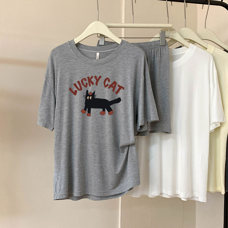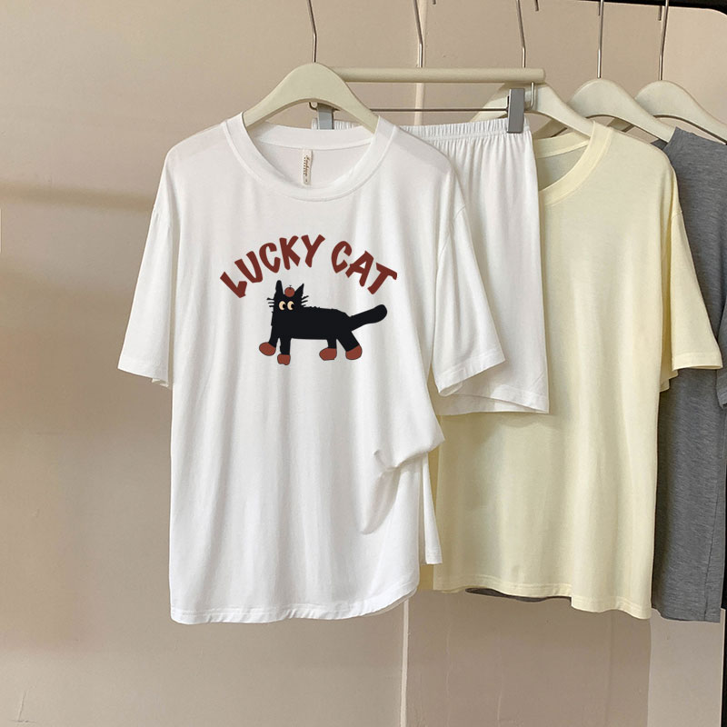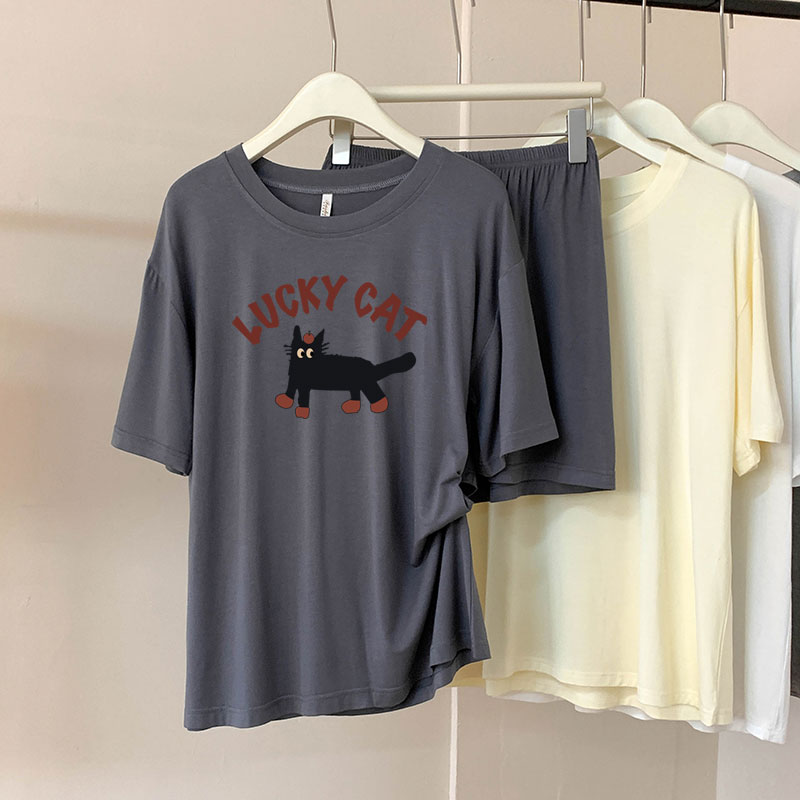 【2025新作】猫柄 モダールパジャマセット 夏用 半袖+半パン 薄手 通気性◎ おしゃれ 部屋着・コンビニ兼用 ID1591