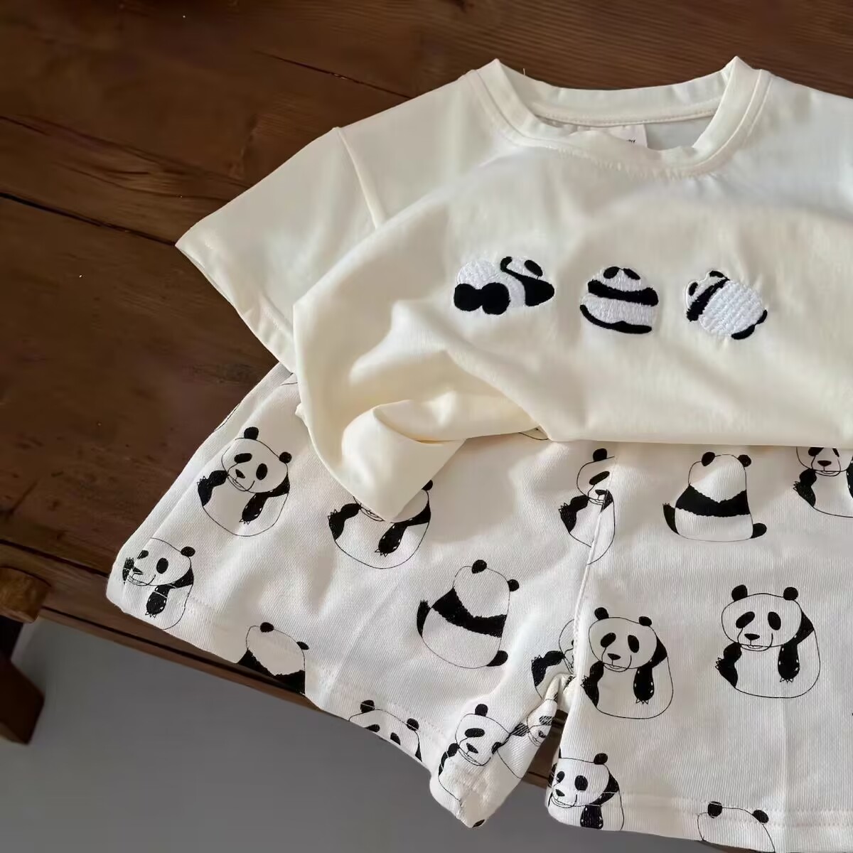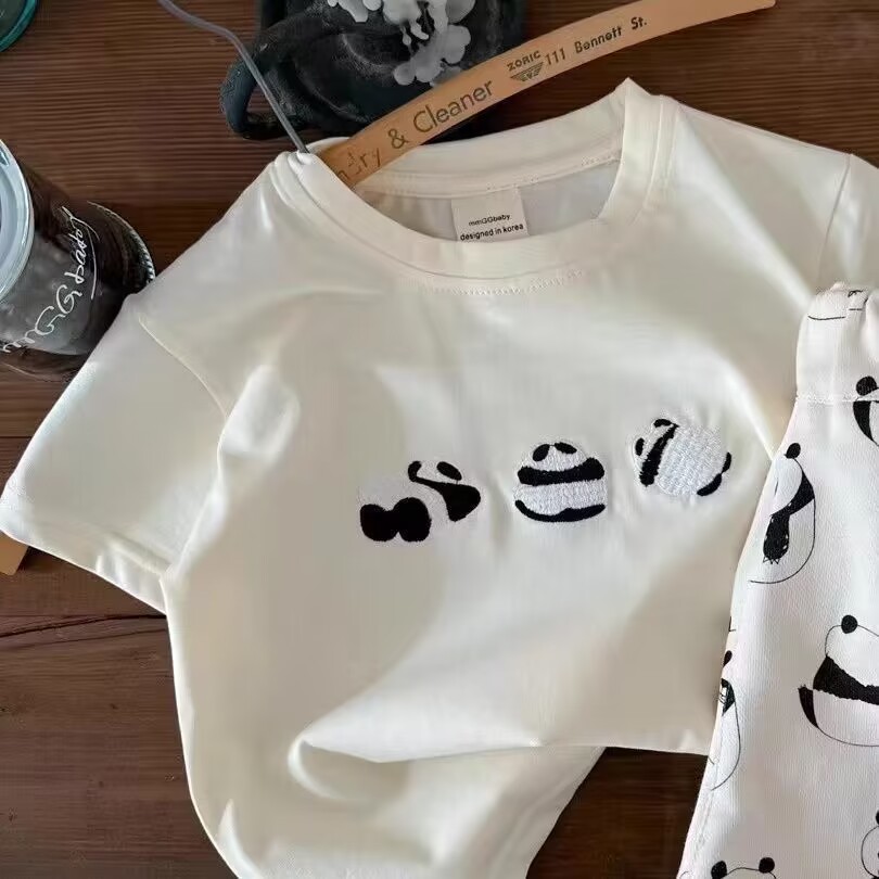 子供用セット 夏 新作 男女兼用 パンダ柄 半袖Tシャツ ベビー 夏服 カジュアル フルプリント ショートパンツ ID1596