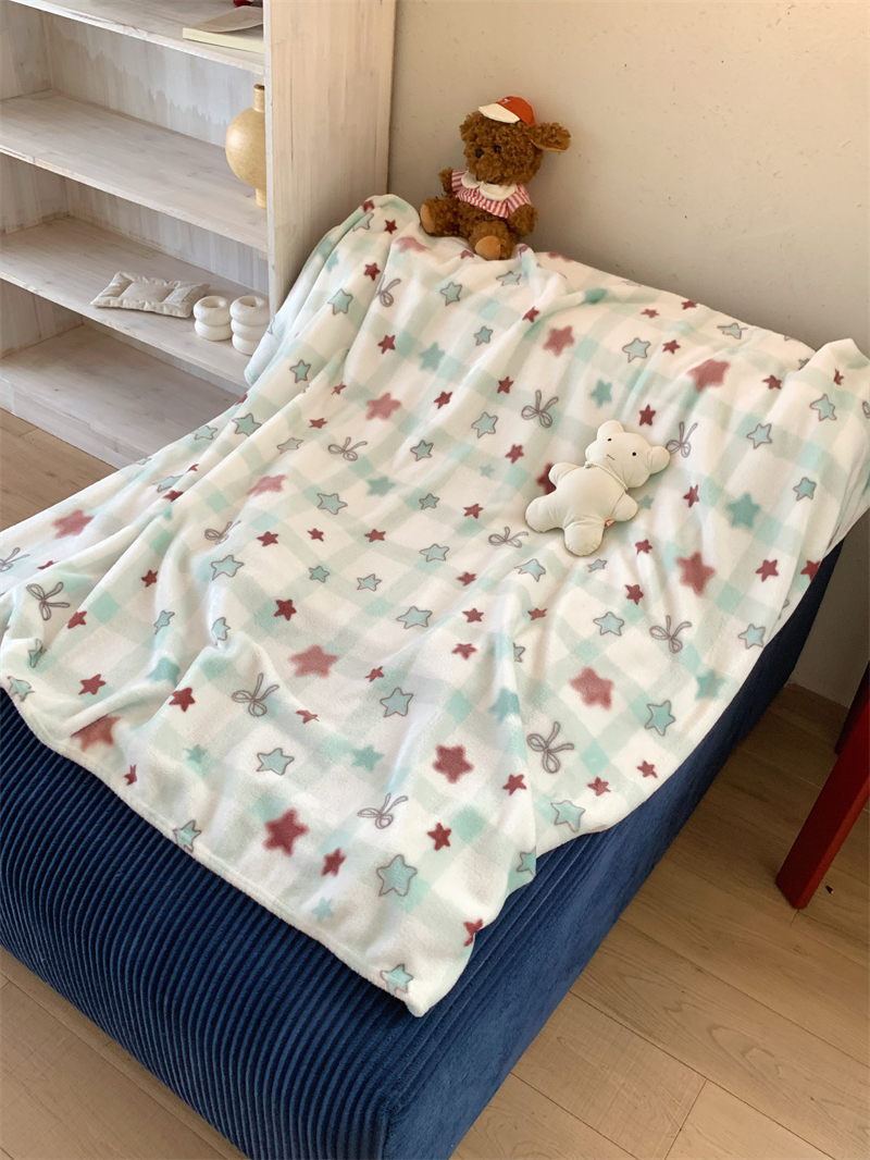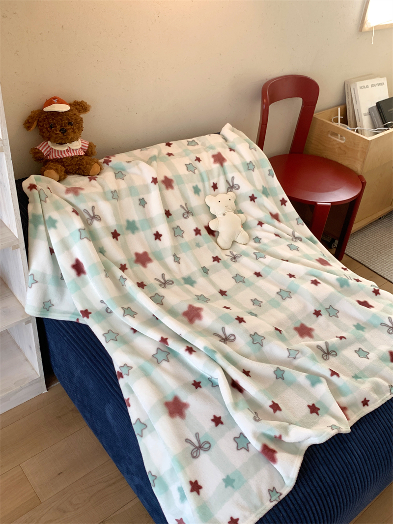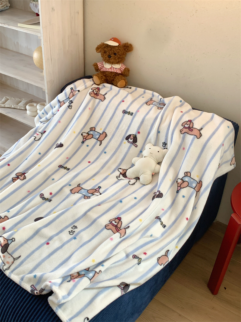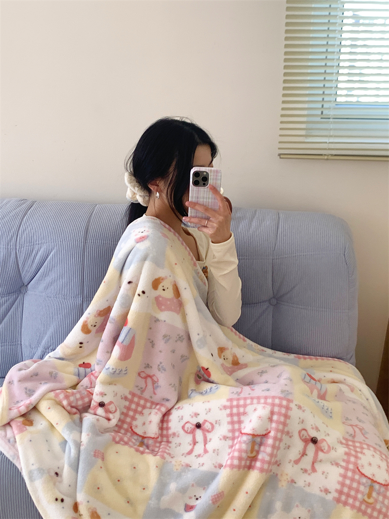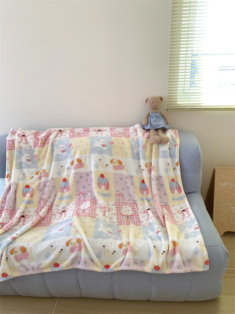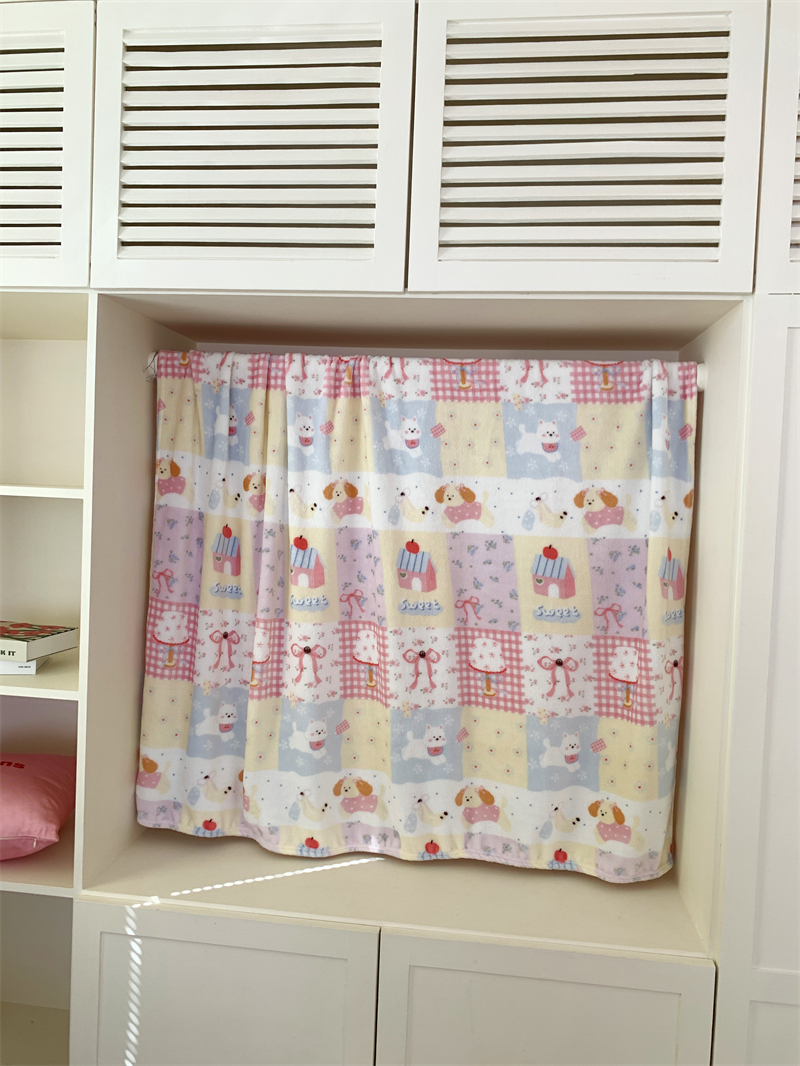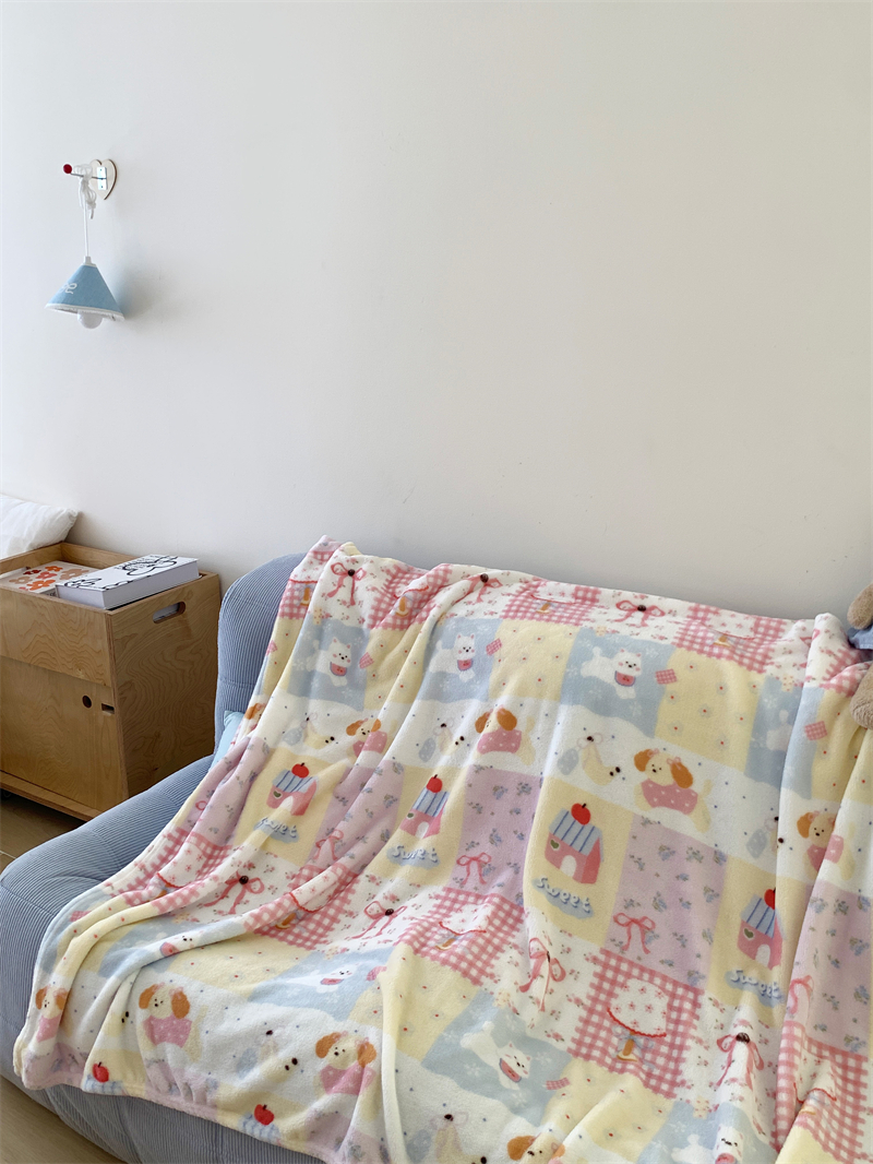 ハウスと小犬 インスタ風 パッチワーク柄 かわいい 薄手 ブランケット 夏用 エアコン対応 ミルクベルベット カバーソファブランケット ID1617