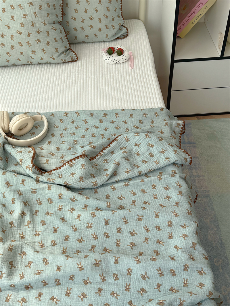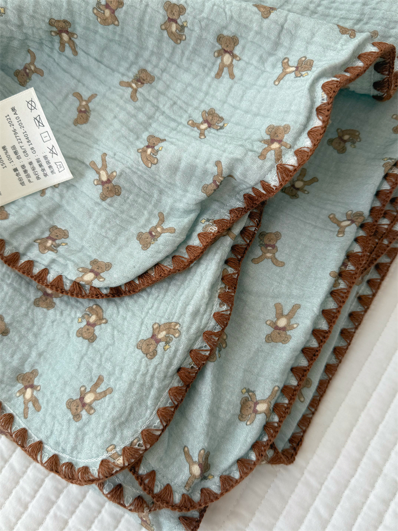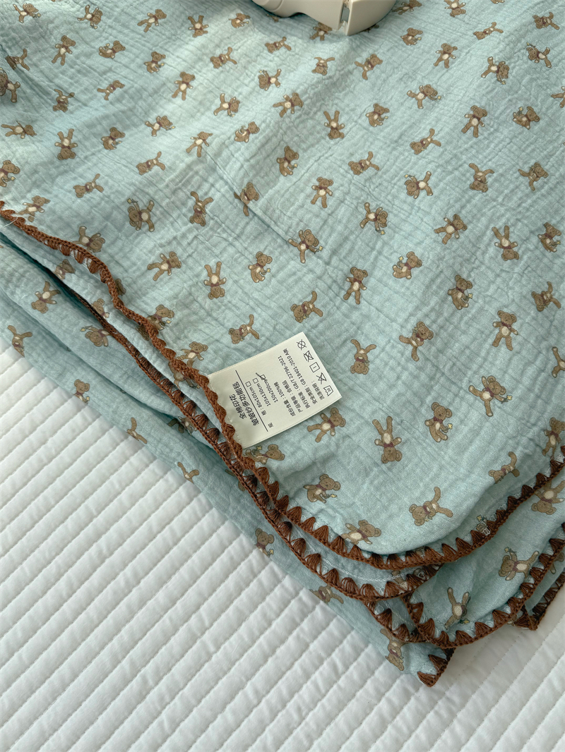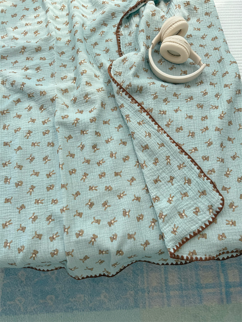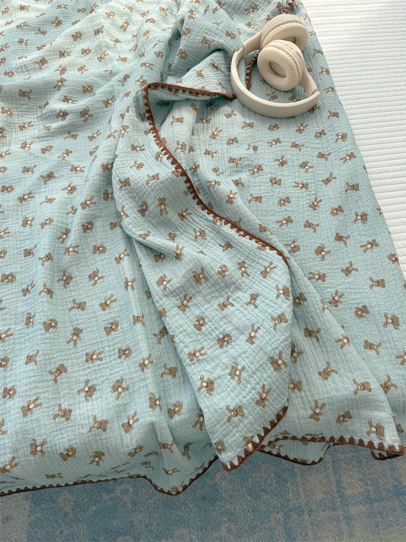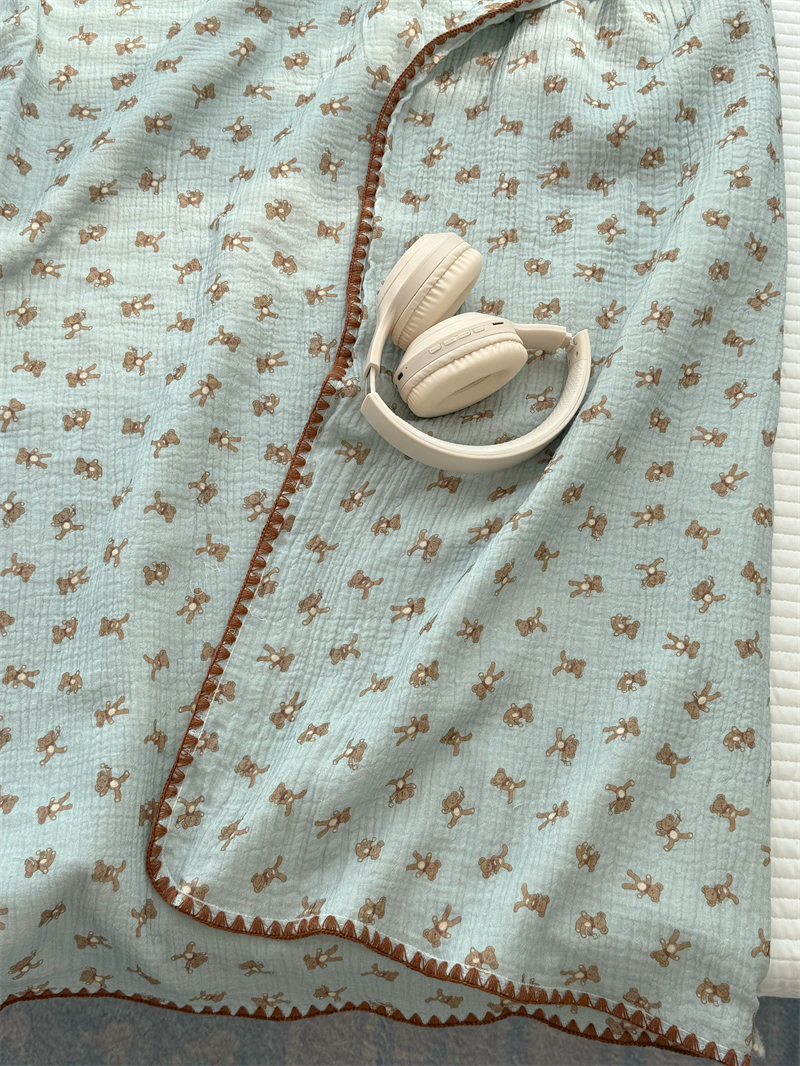 クマ インスタ風 かわいい 綿 ダブルレイヤー シワ加工 ガーゼ ソファカバー ブランケット オフィス 昼寝用 ID1618