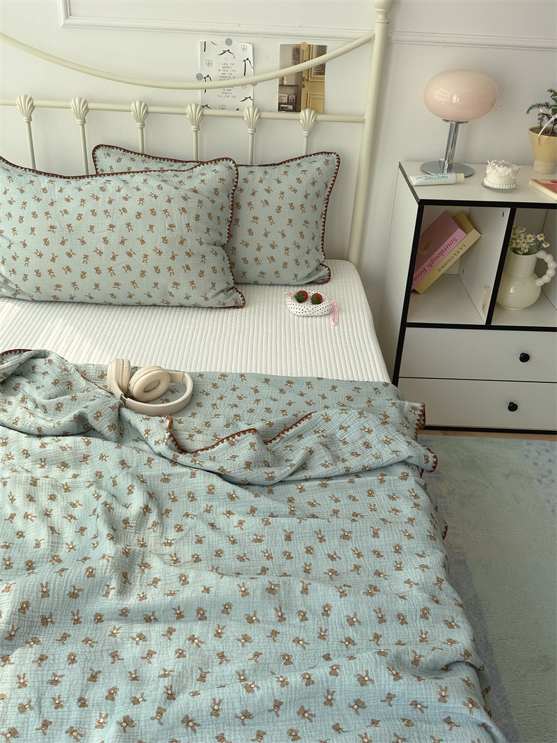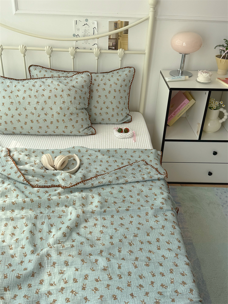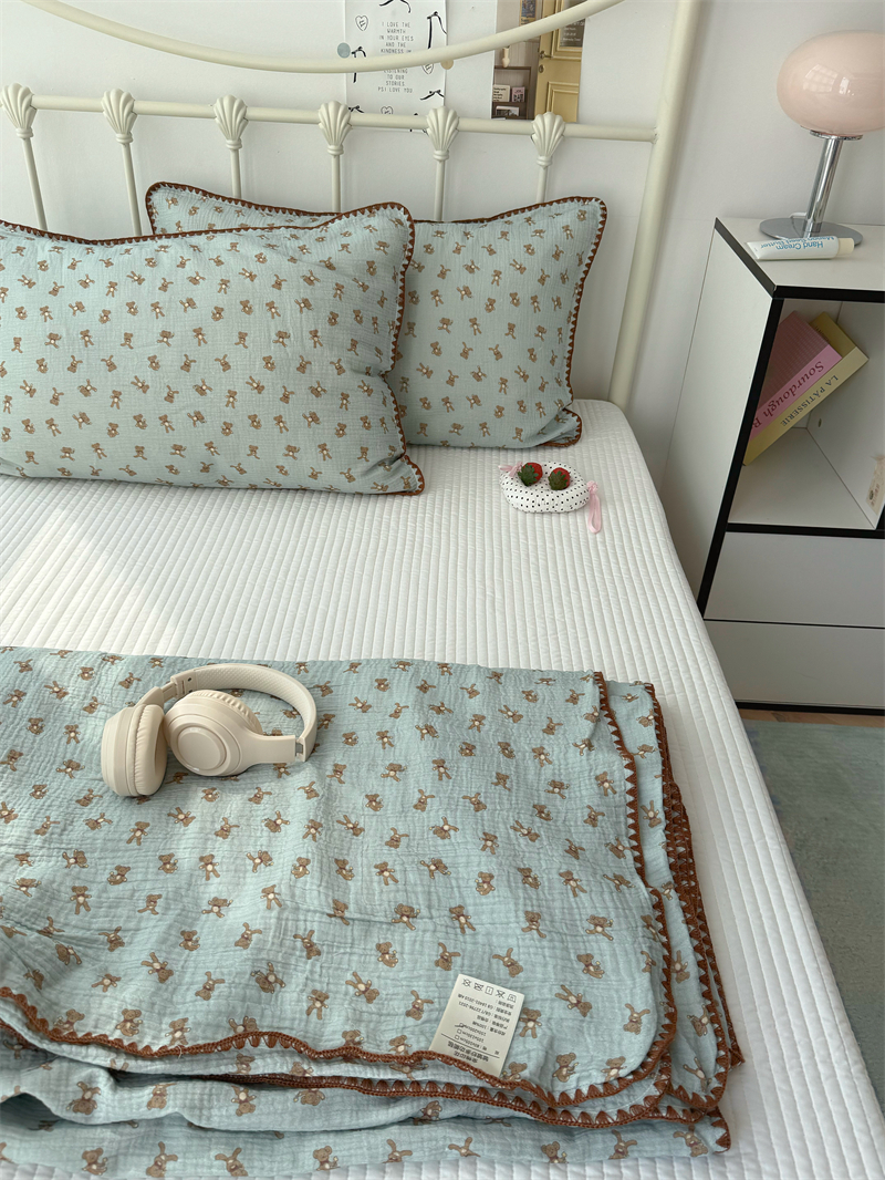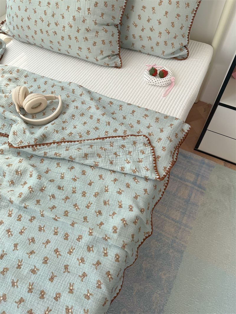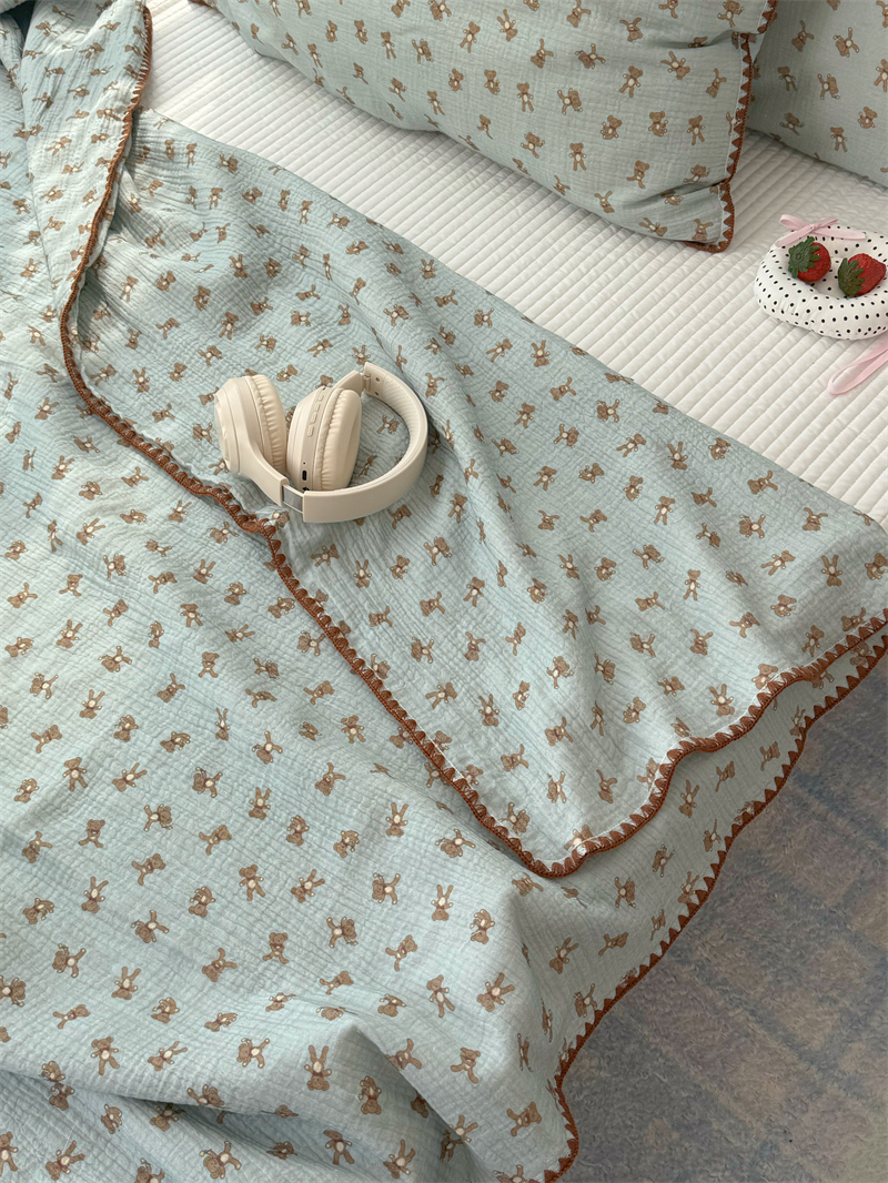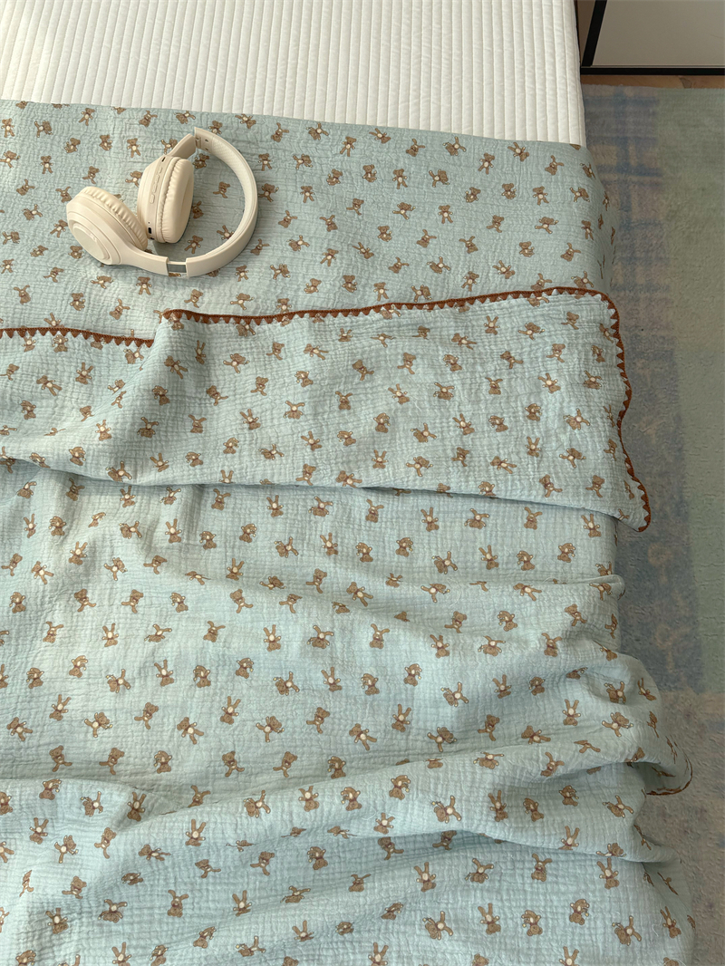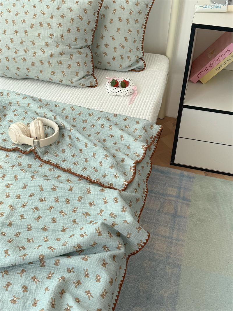 クマ インスタ風 かわいい 綿 ダブルレイヤー シワ加工 ガーゼ ソファカバー ブランケット オフィス 昼寝用 ID1618