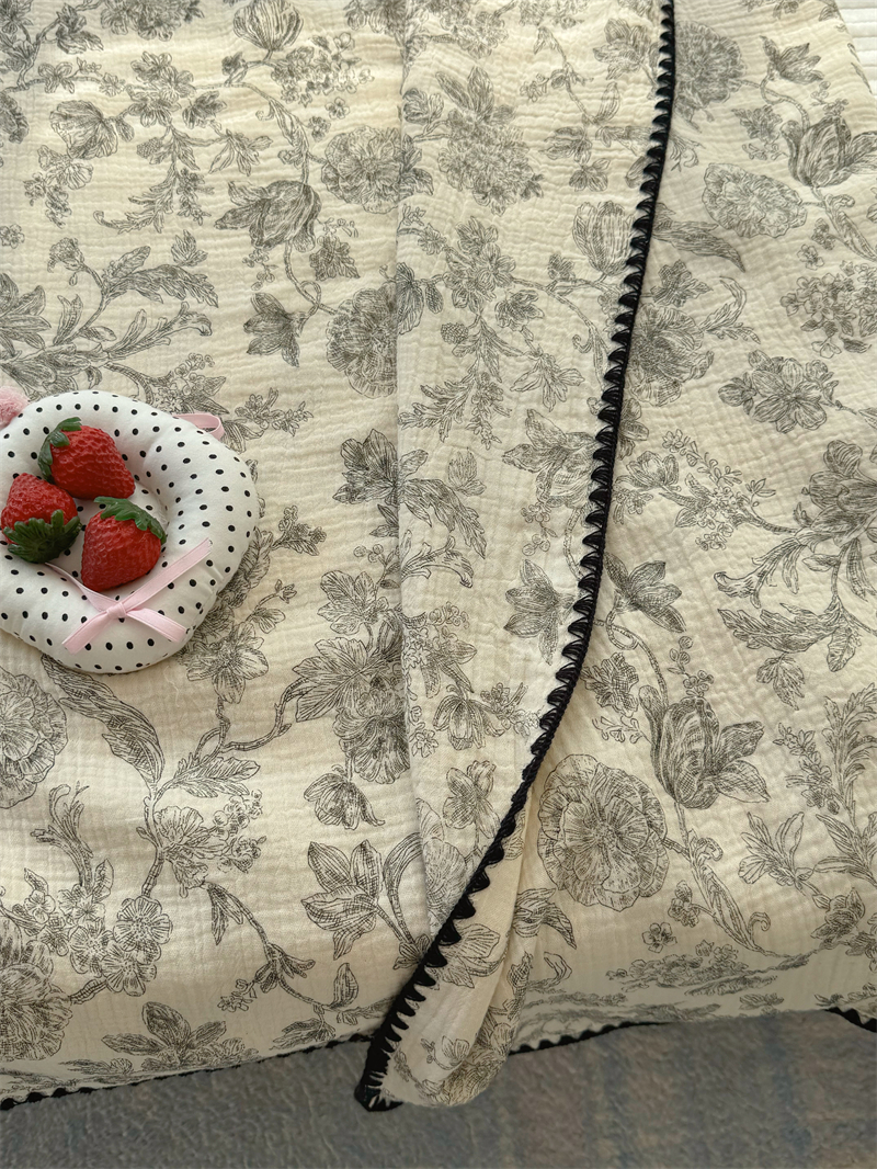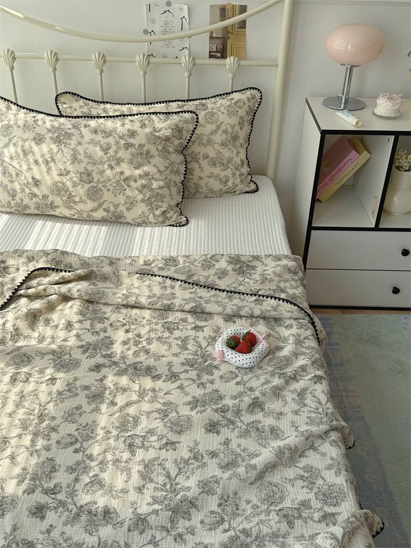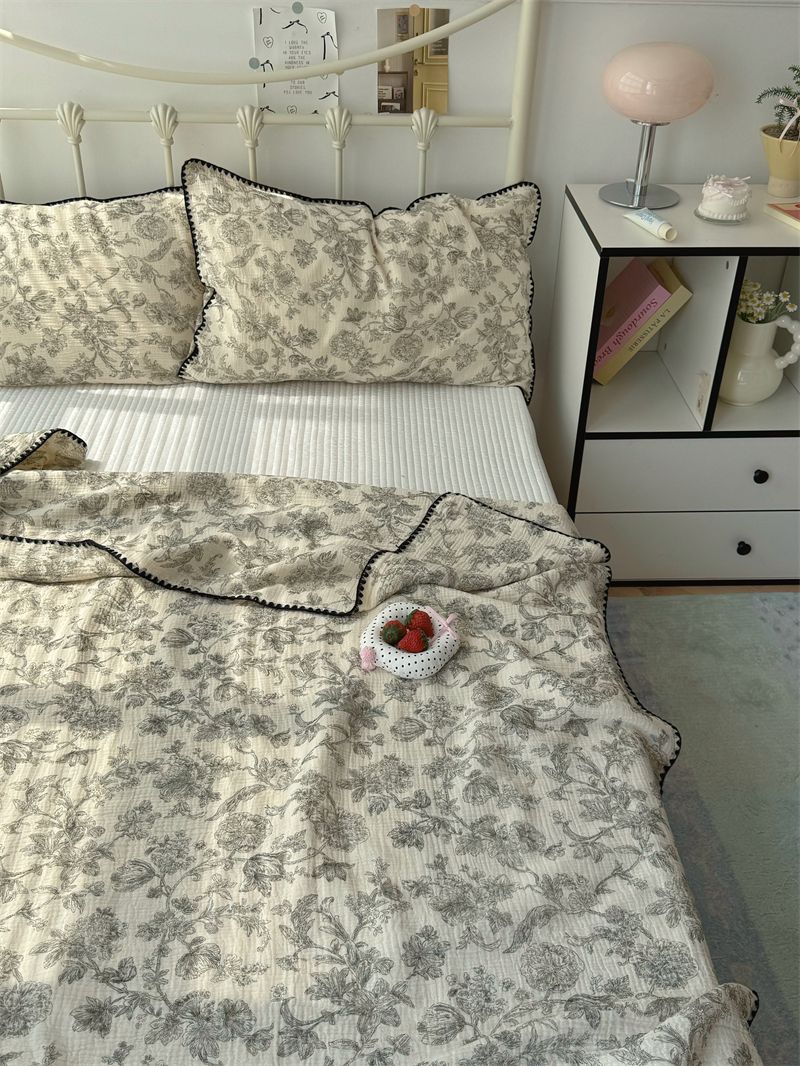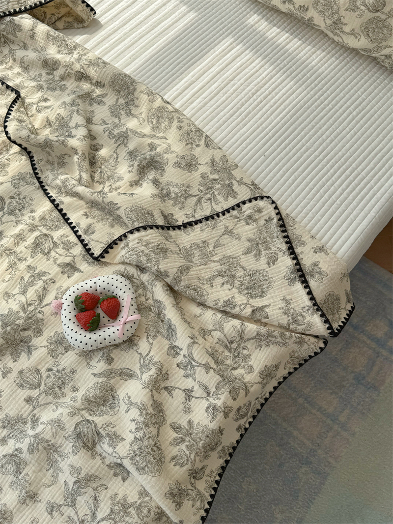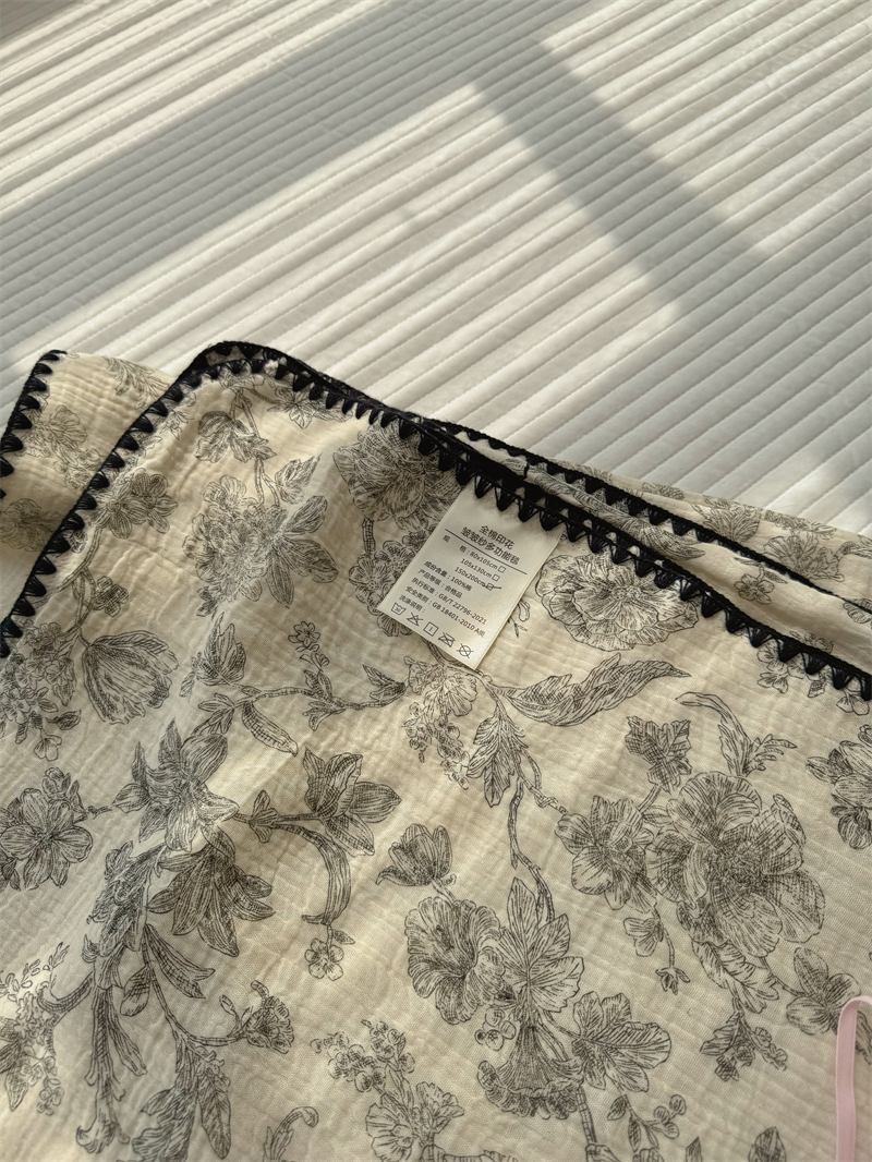 ヴィンテージ フローラル Aクラス 純綿 ダブルレイヤー シワ加工 ガーゼ ソファカバー ブランケット 夏用 エアコンブランケット ID1619