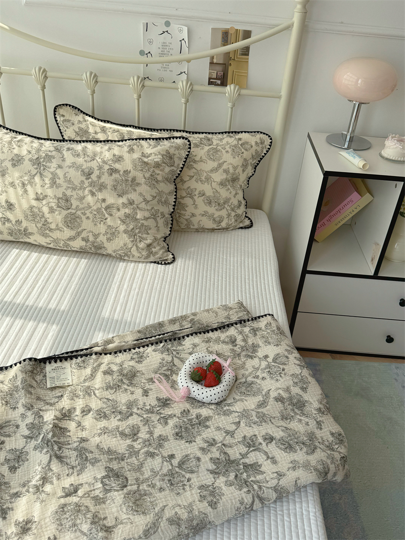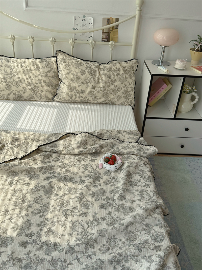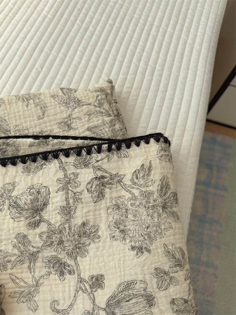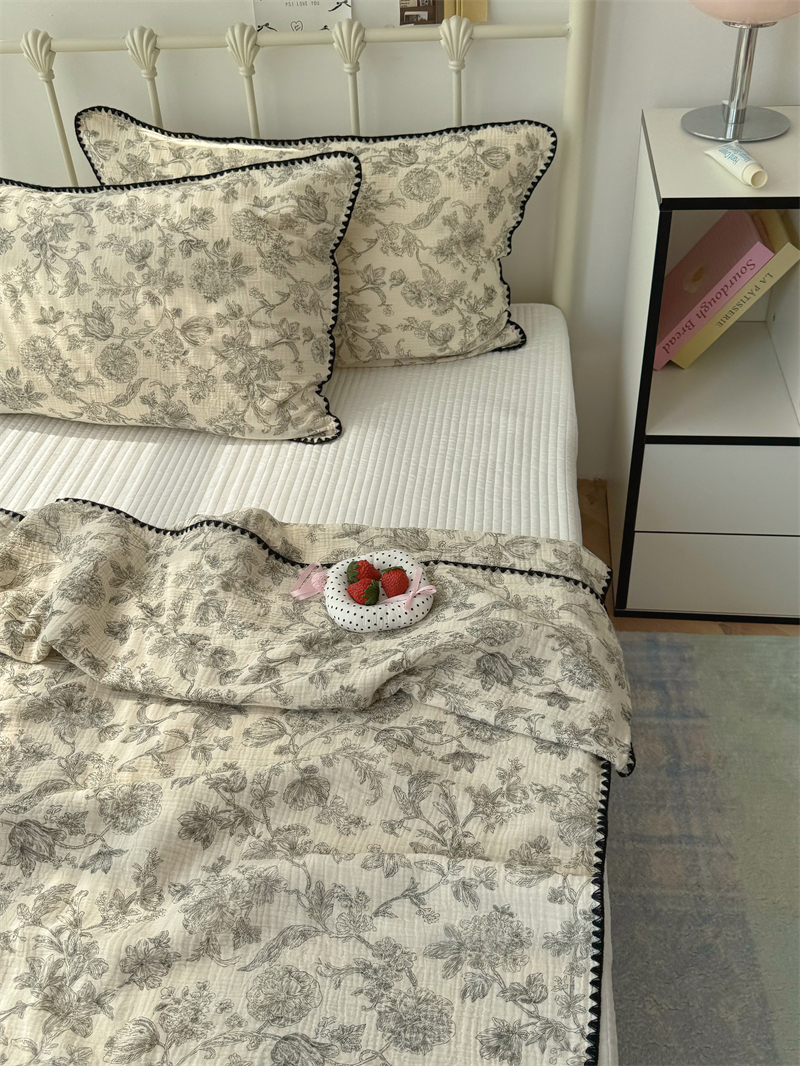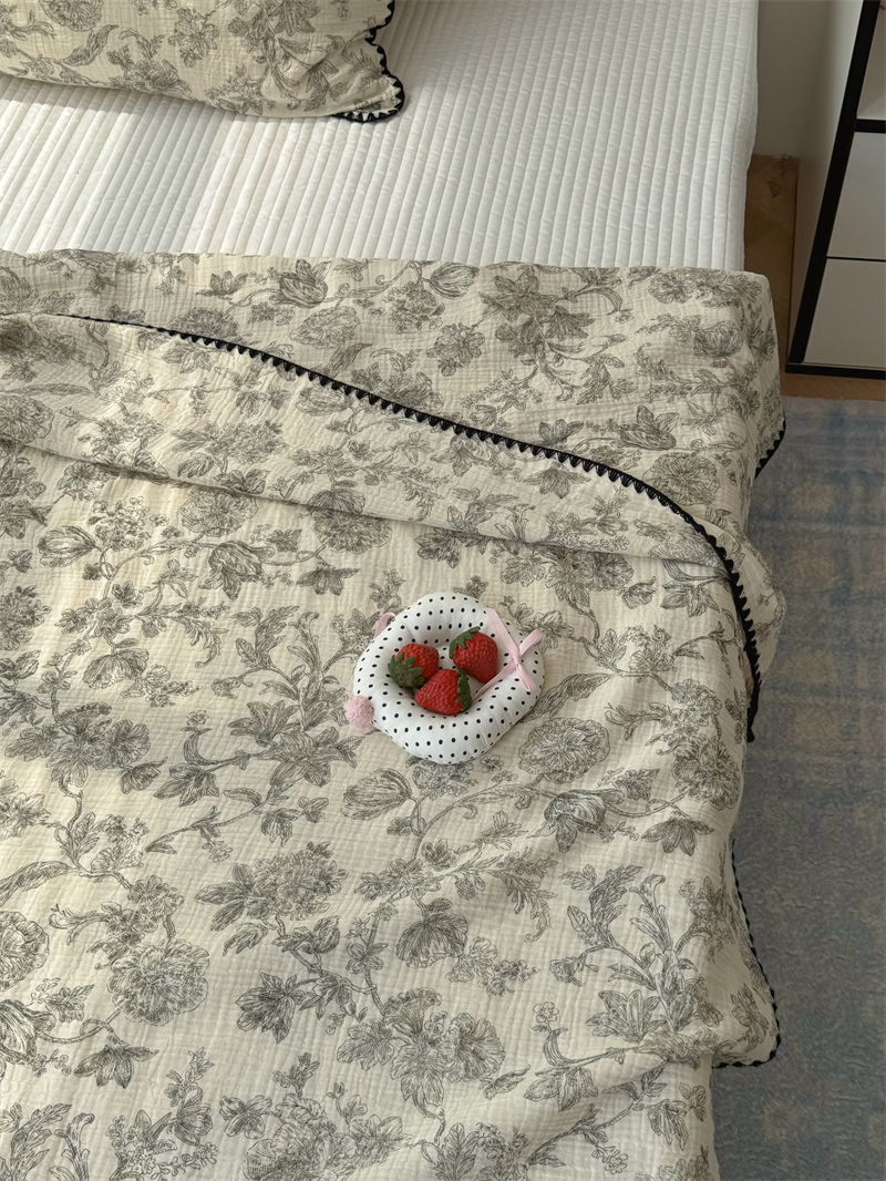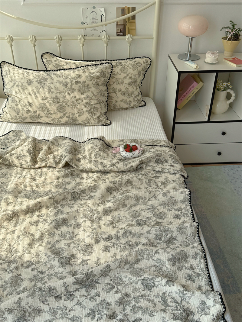 ヴィンテージ フローラル Aクラス 純綿 ダブルレイヤー シワ加工 ガーゼ ソファカバー ブランケット 夏用 エアコンブランケット ID1619