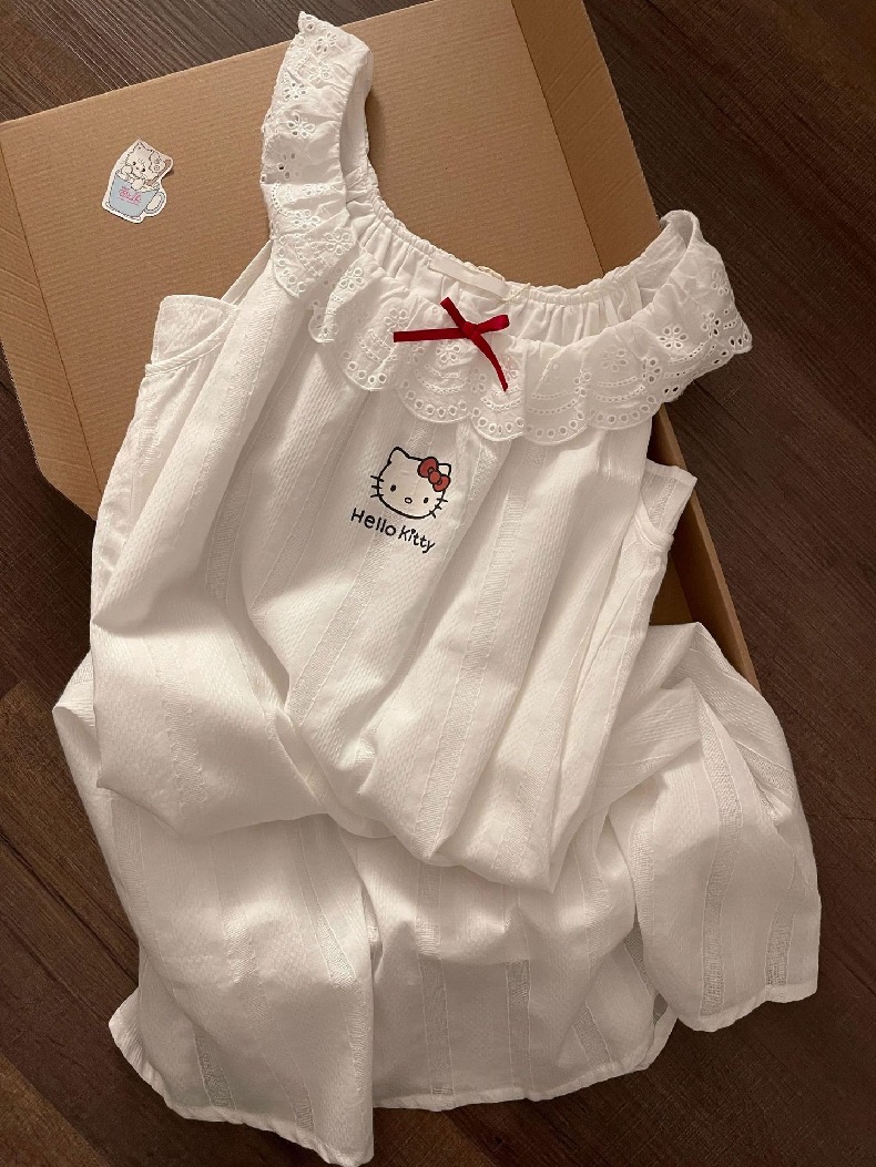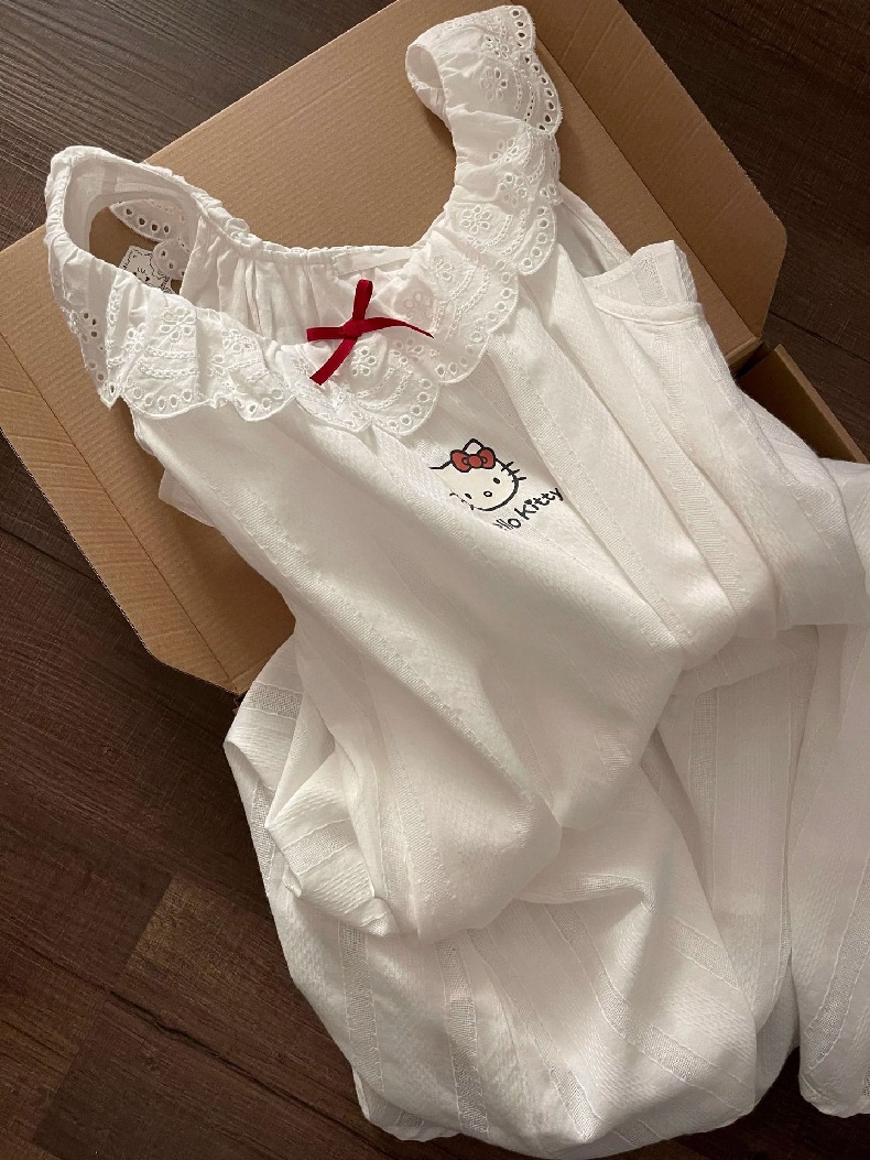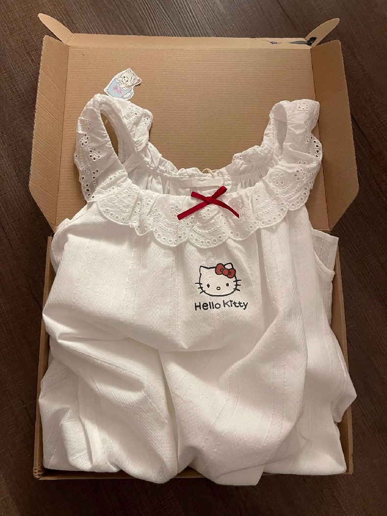 ハローキティ クラウドコットン ガーゼ ナイトドレス レディース 夏 高級感 レース ルームウェア ピュア&セクシー パッド入り 可愛い 外出着可 通気性 涼感 ID1635