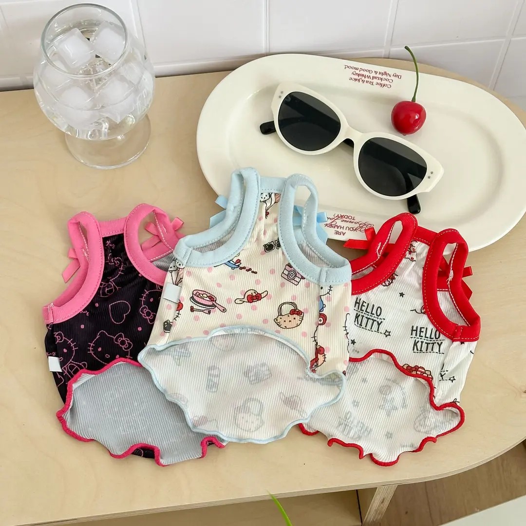 3色展開 KTキャット ペット用 外出着 夏 クール ノースリーブ アイスシルク 涼感 ストレッチ 犬 猫 兼用 通気性 軽量 洗える ID1673