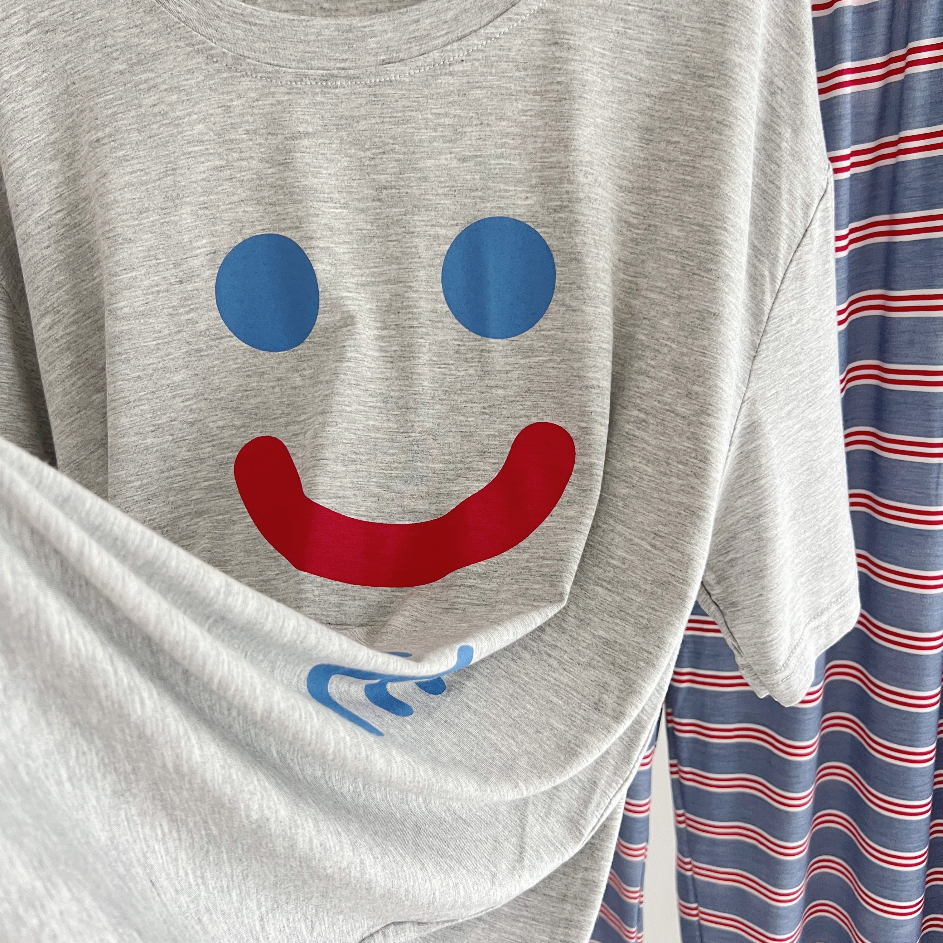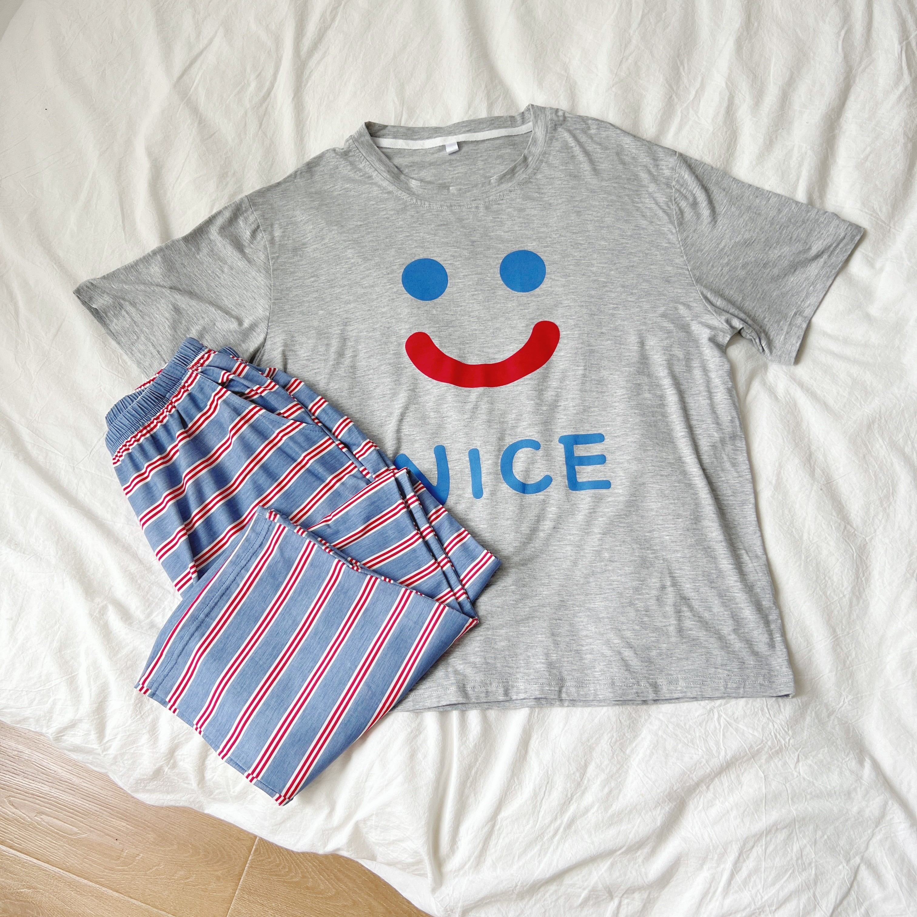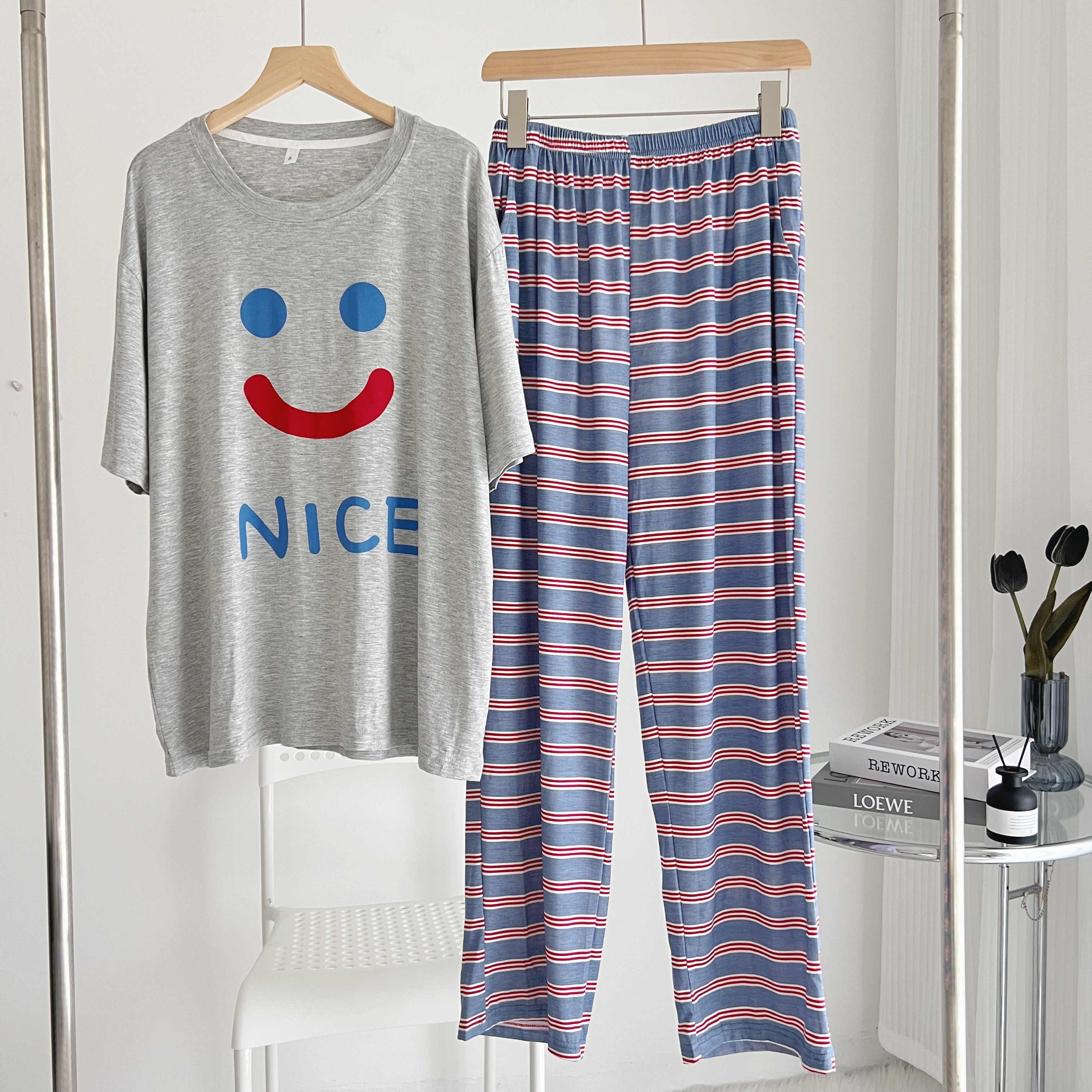 スマイルフェイス モダール パジャマセット 半袖トップス&ショートパンツ 丸首 甘カワ お出かけOK 女子に人気 涼感 通気性バツグン ID1685