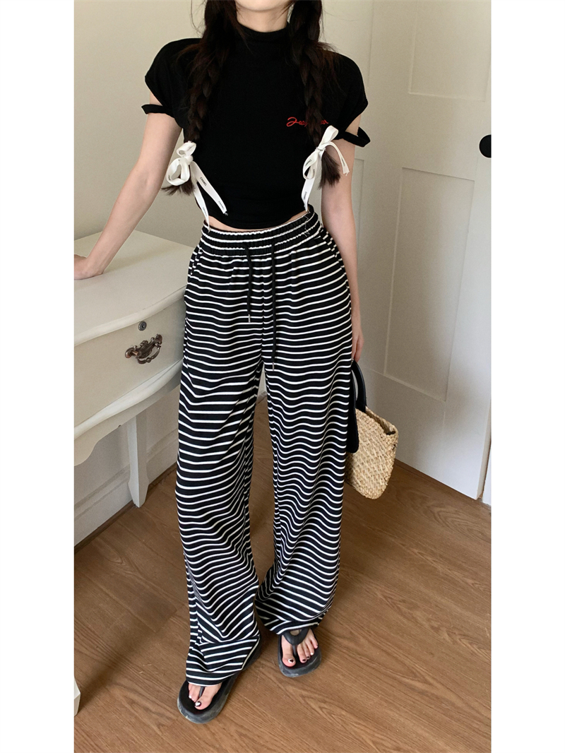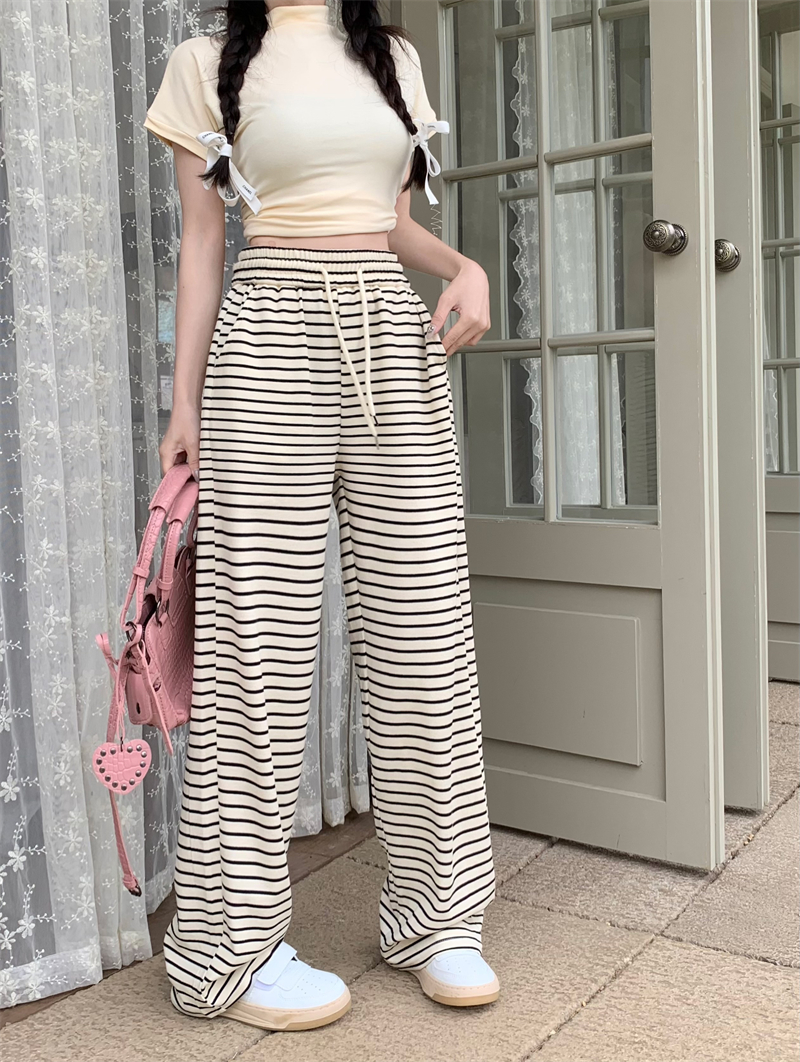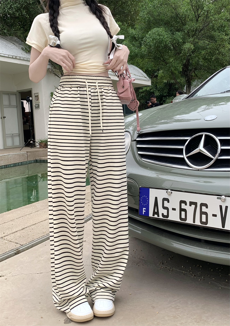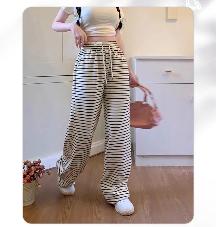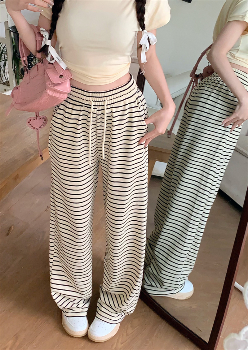 ストライプ ドレープ カジュアルパンツ レディース 夏用 ドラッグ丈 ストレートパンツ ゆったり ハイウエスト ワイドレッグ 散歩用 パンツ ID1724
