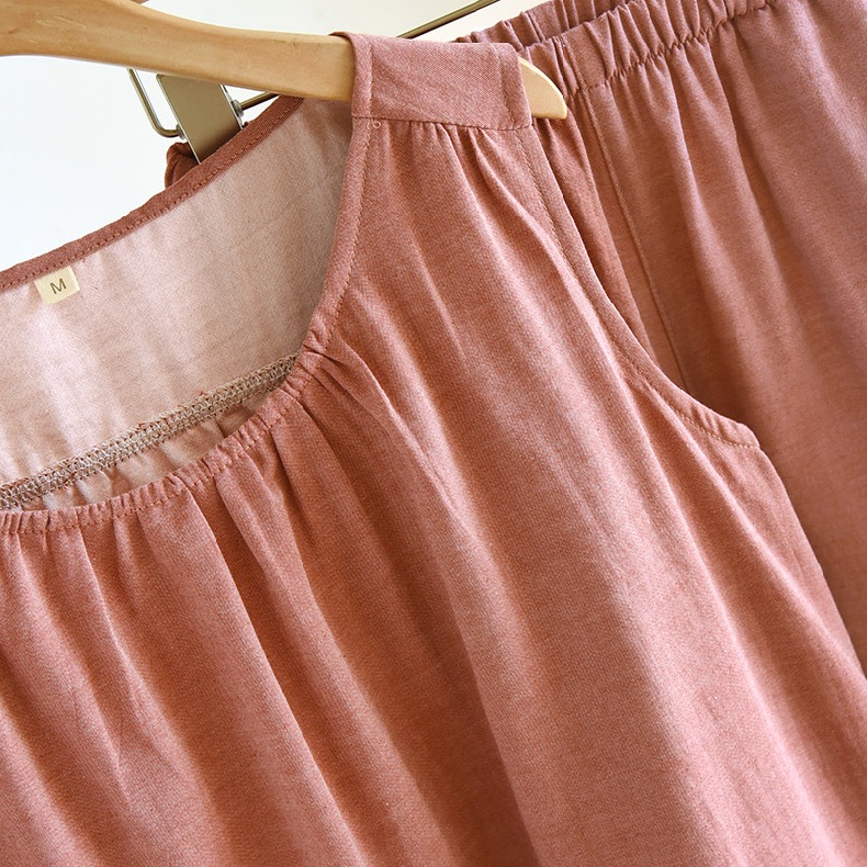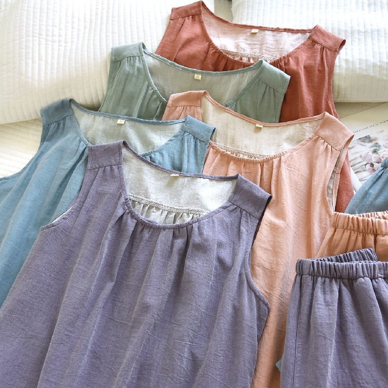 ダブルガーゼ パジャマセット ストラップトップ&ショートパンツ 和風モダン 薄手 通気性 家居着 女性用 5色展開 ID1750