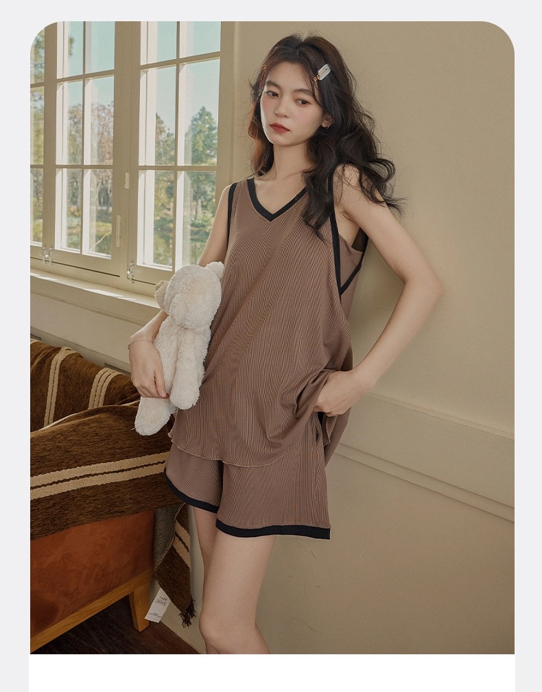 夏用 涼感 パッド付きナイトウェア レディース アイスシルク リブ編み タンクトップ ショートパンツ カジュアル 学生用 ノースリーブ ルームウェア ID1751