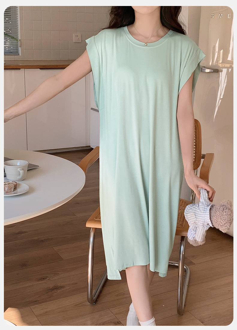 胸当てパッド付き 涼感スリップドレス 夏用 モダール素材 韓国風 かわいい 半袖 パジャマ 透け防止 薄手 ワンピース 寝巻き 女性用 通販 お得セール中!ID1757