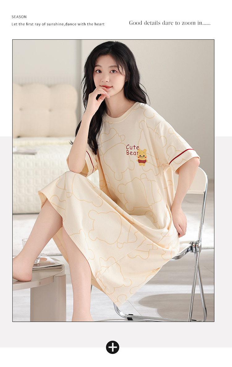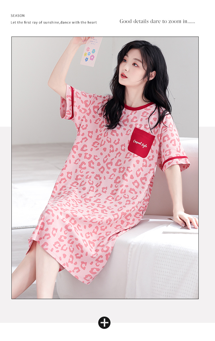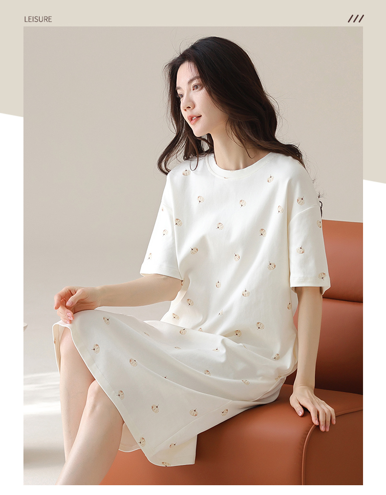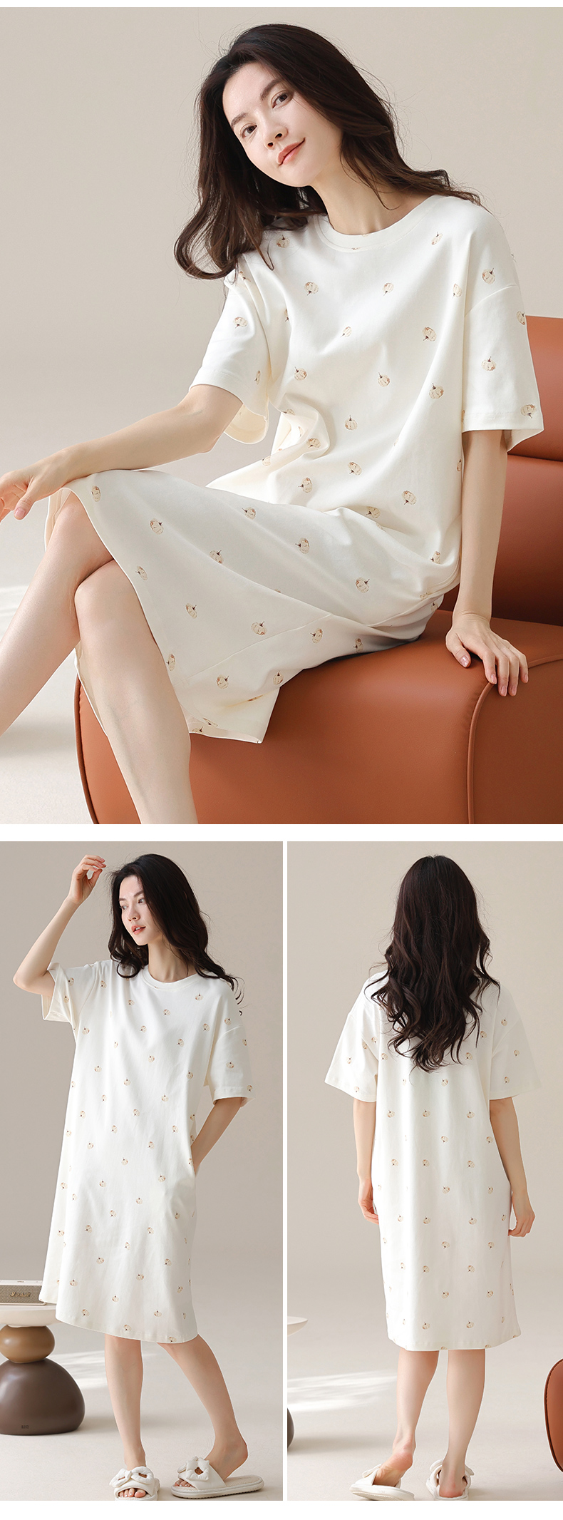 半袖 パジャマ レディース 夏用 オールコットン ワンピース ミディアム丈 学生 韓国風 ストライプ 外出可能 家庭用 ID1765
