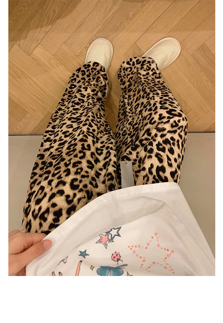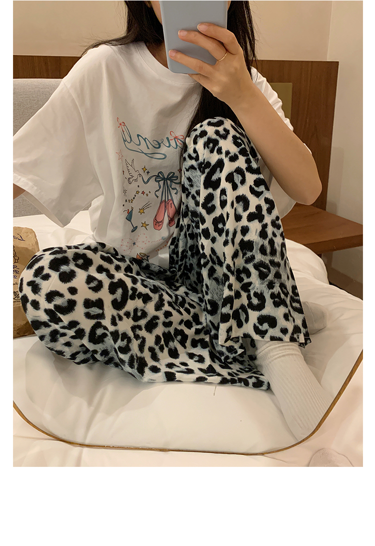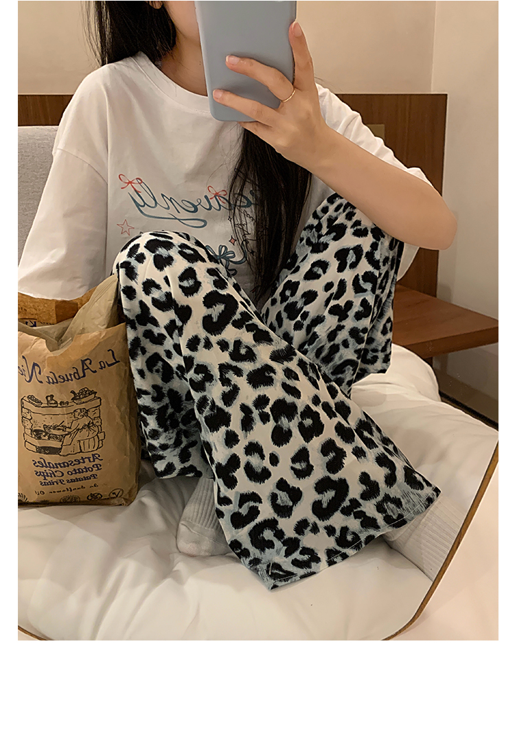 ヒョウ柄 パジャマパンツ レディース 秋用 甘くクールな ストレート フィット ワイド カジュアル 外出可能 ルームウェア ロングパンツ ID1814