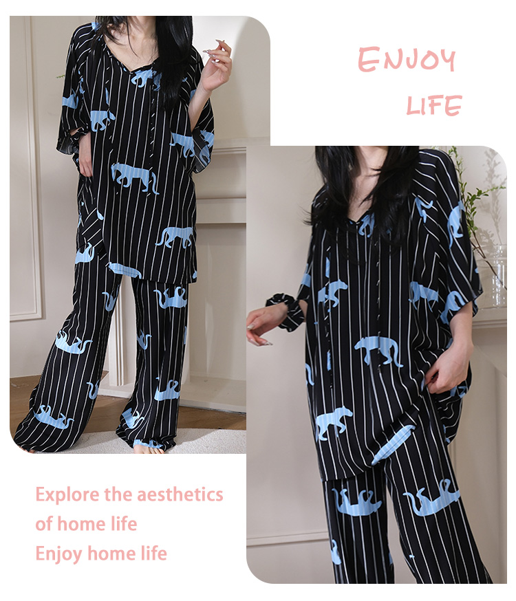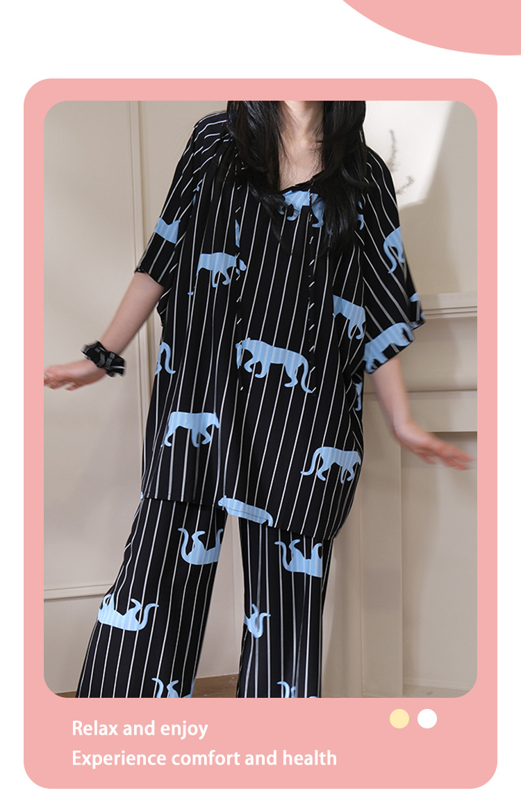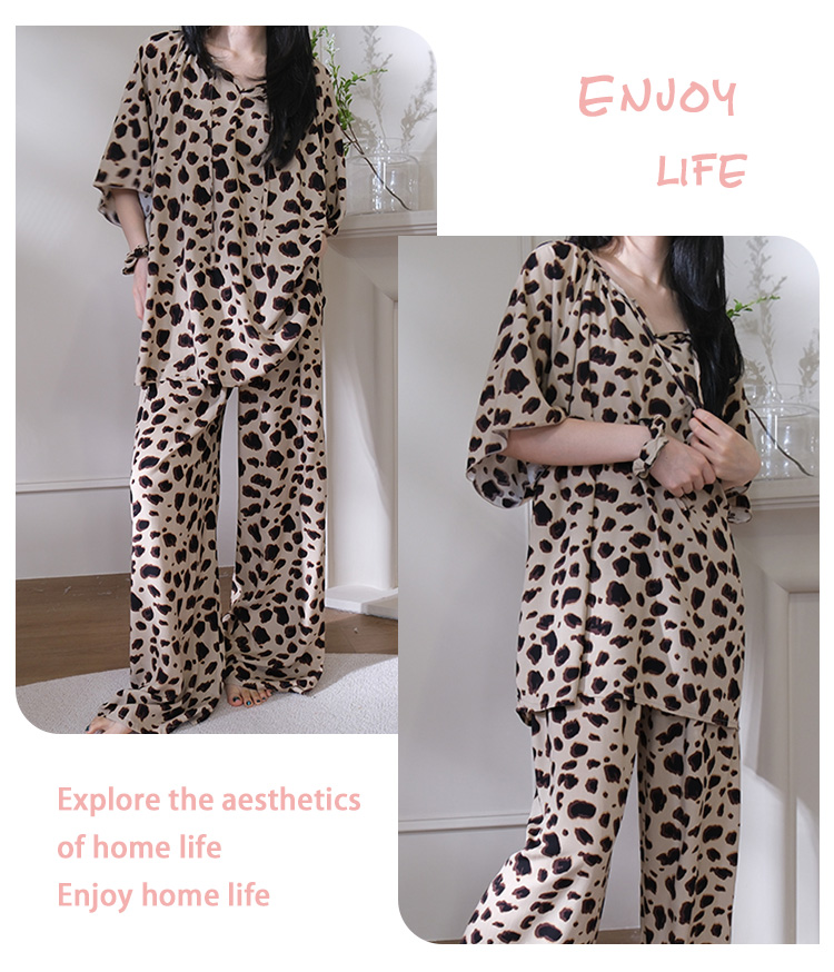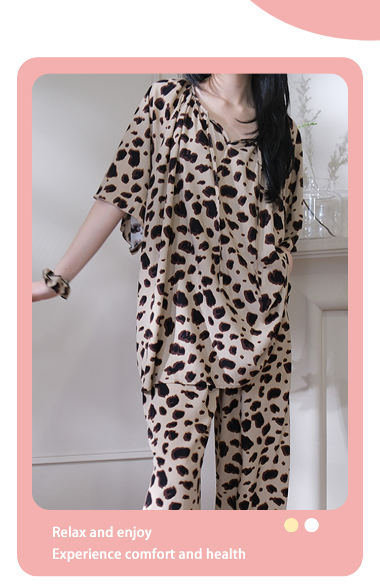 レディース 夏用 インナー付き 高級感 セットアップ 外出可能 ヒョウ柄 ルームウェア 2点セット 薄手 ID1817